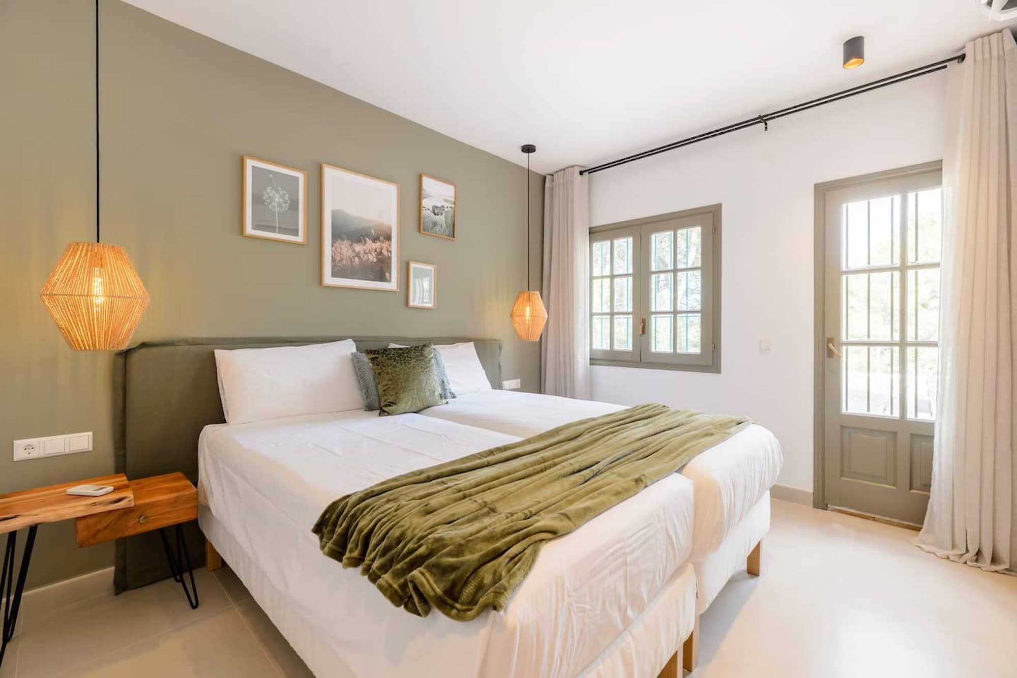 Situated on the top of the hill in Can Tomas, this villa has fantastic views of the Ibizan countryside. There’s an inviting pool and shaded alfresco dining area to enjoy, as well as a balcony terrace. Inside, there’s a large living room and there’s a dining table reclaimed from a monastery, as well as an office with three desks, should you need to work from home while away. Another bonus of this home is it is one of the first houses in Ibiza that is CO2 positive. The location is great too – located between San Rafael and San Antonio, it’s perfect for exploring the whole Island.