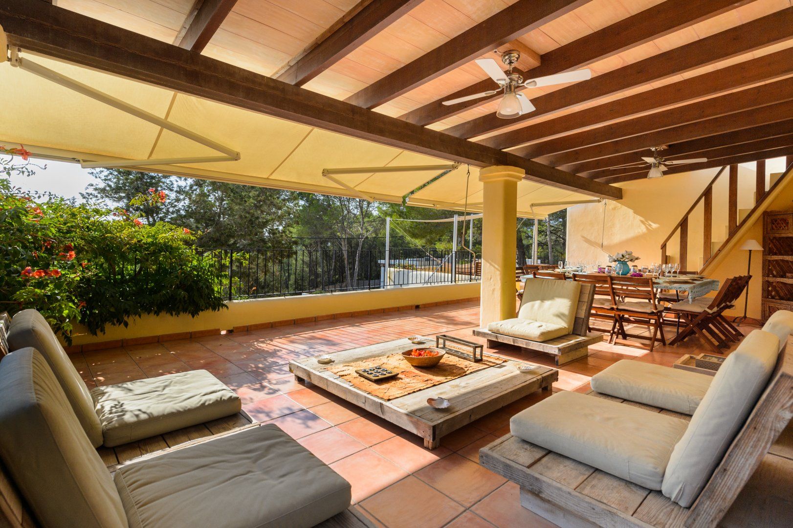 Immersed in a sanctuary of trees, there’s a wonderful sense of privacy and seclusion here, but it’s also just a short drive from San Antonio – making it easy to enjoy the vibrant energy of the island, as well as the beautiful beaches and coves nestled along the coast. Cala Salada and Cala Gracio are both within easy driving distance. And for those days when you’re seeking total relaxation, this home makes it easy to slow down and experience the simple pleasures of island living.