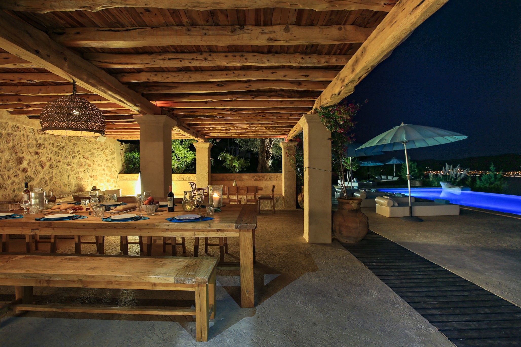 Up in the hills outside the trendy port of San Antonio, this home is the perfect place for a secluded getaway – surrounded by pine forest and private farmland, you'll feel like you've got the whole island to yourself. Pick a spot on a lounger in the garden and soak up the views, or take a dip in the pool. Although the inside kitchen may be small, there's plenty of alfresco dining space, including a full summer kitchen with a barbecue – make sure you've got a playlist ready for the sound system. San Antonio beckons with its lively nightlife, but you can have just as much fun at home with the outdoor cinema setup.