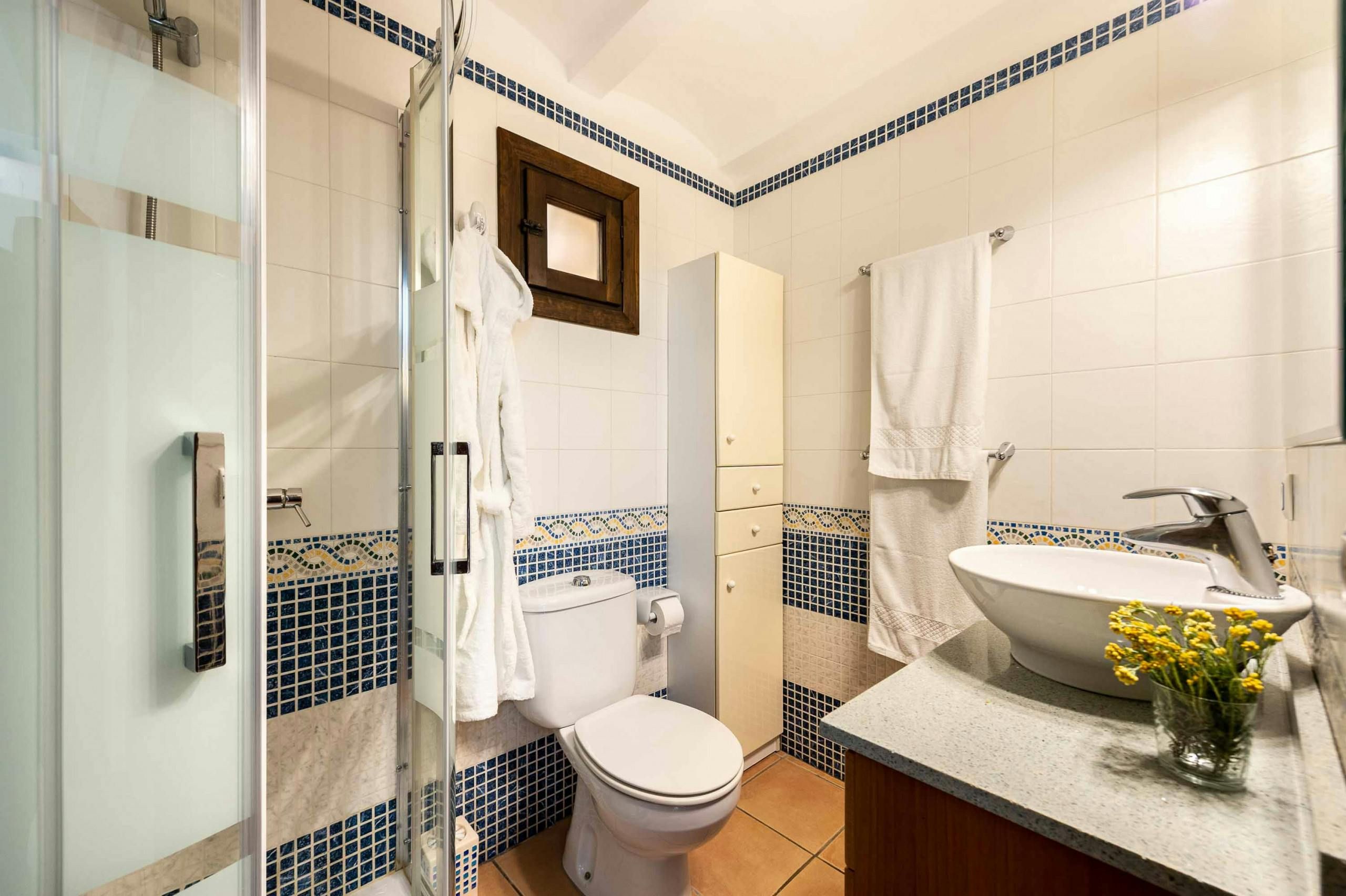 The property is nestled in a stunning natural setting with expansive views of the countryside that will connect you with the beauty of the island. Additionally, you will find several outdoor seating areas where you can relax and enjoy the Mediterranean breeze. The ample parking space within the gated compound accommodates up to 4 cars, providing you with convenience and security.