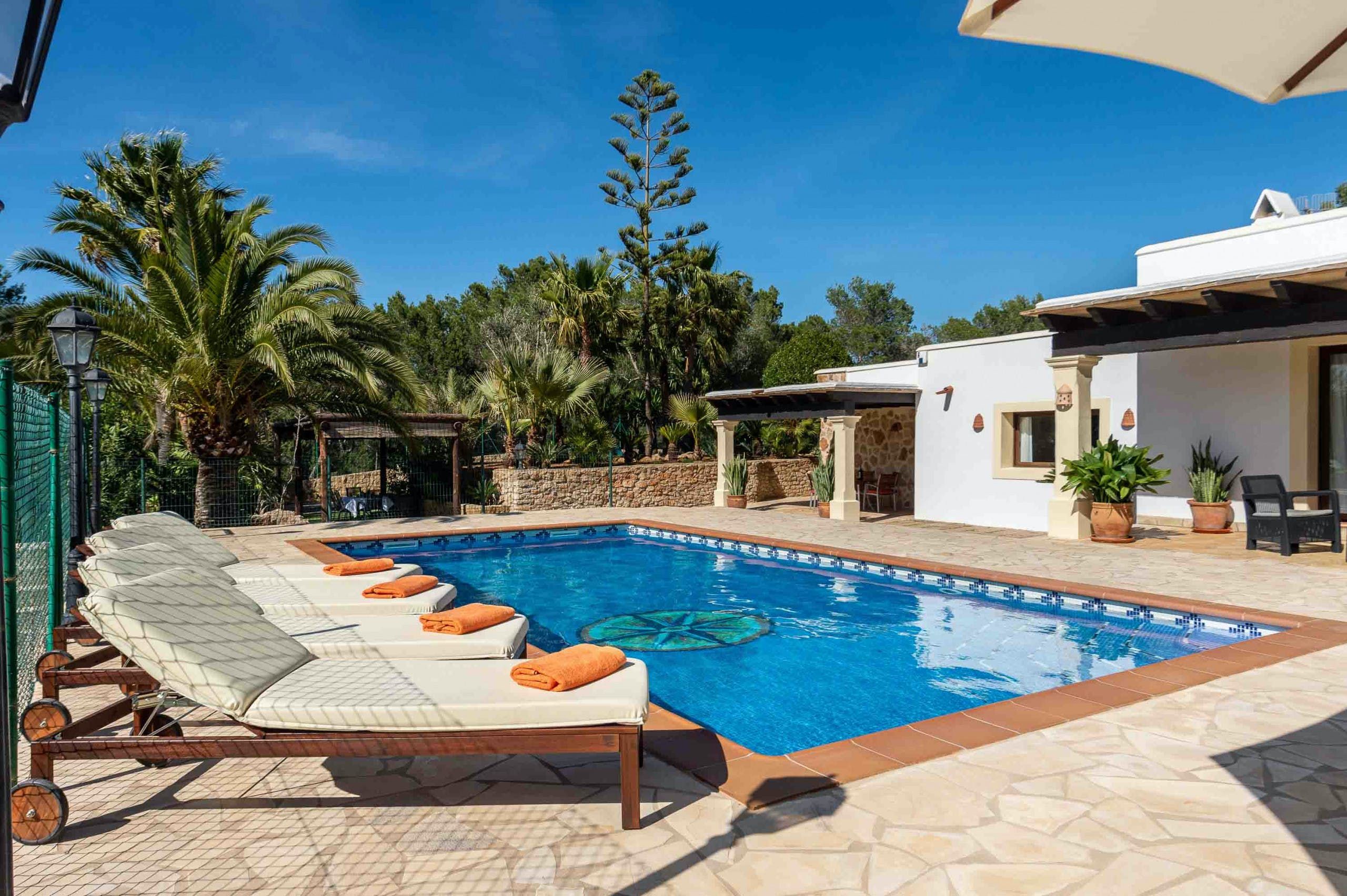 Enjoy the best of Ibiza at this stunning home, featuring 4 bedrooms, 4 bathrooms, an exquisite pool, and a private gym. The property is located in a unique setting at the end of a quiet cul-de-sac, offering the utmost seclusion and tranquility. It is just 10 minutes from the iconic Benirrás beach and 25 minutes from the bustling center of Ibiza.