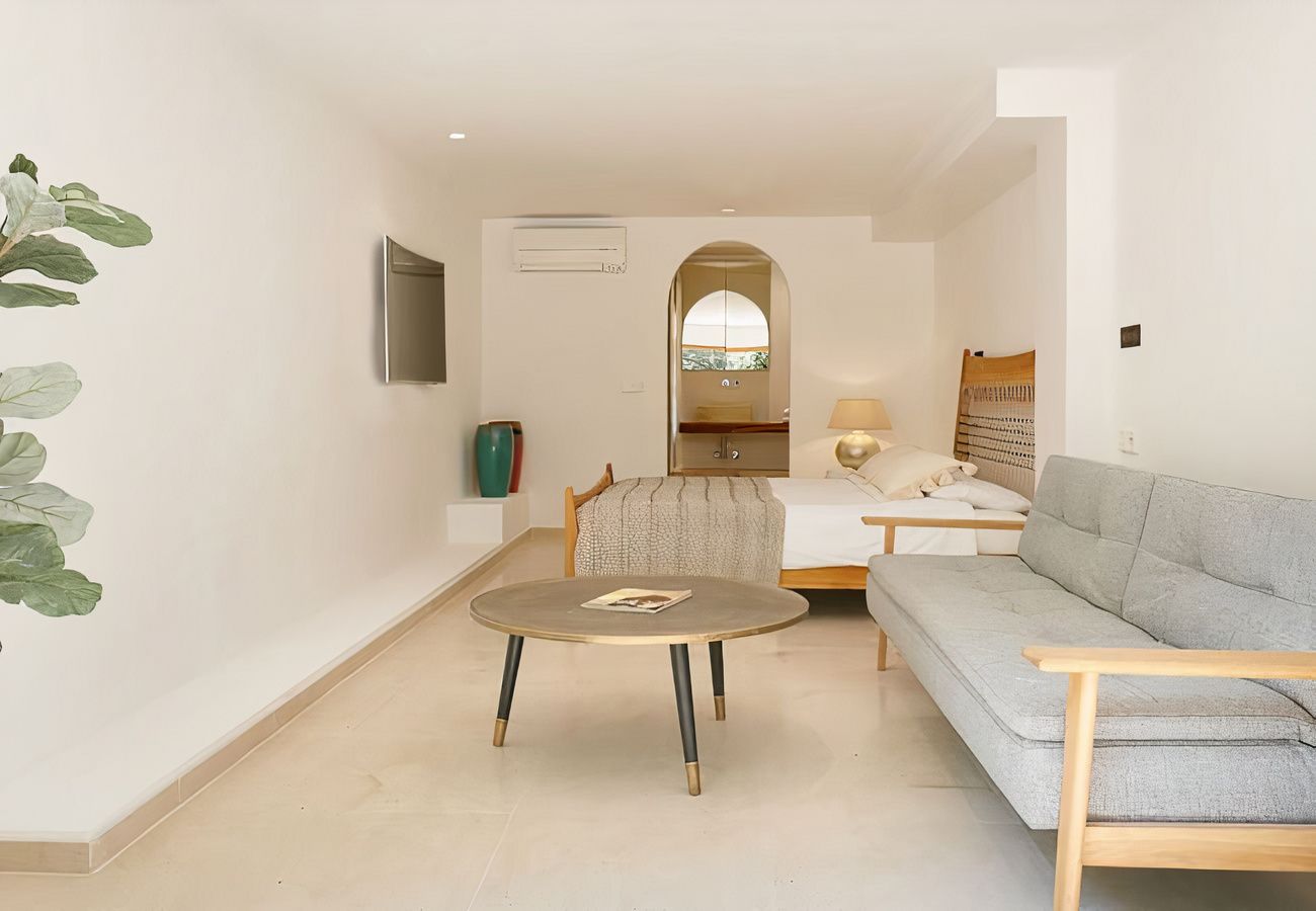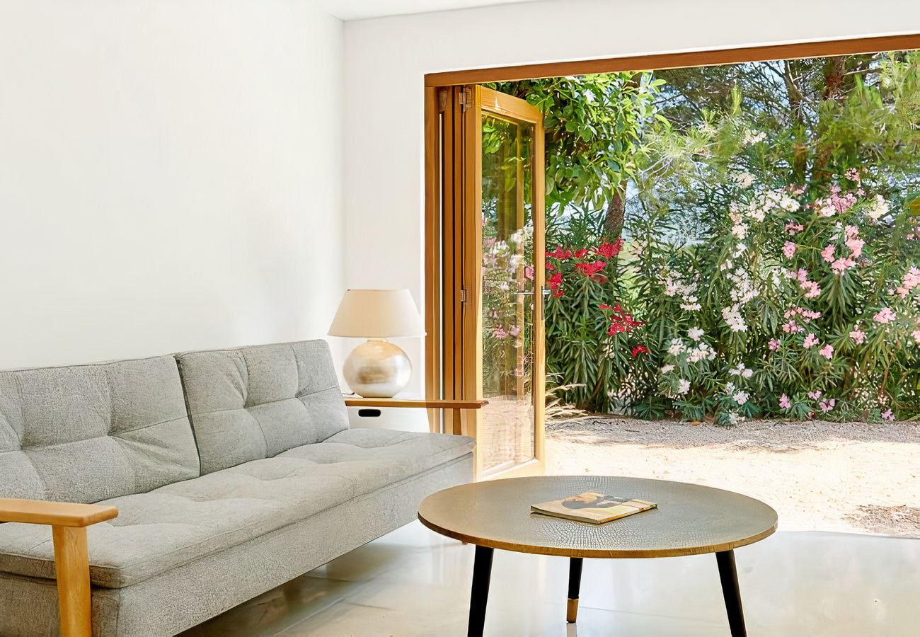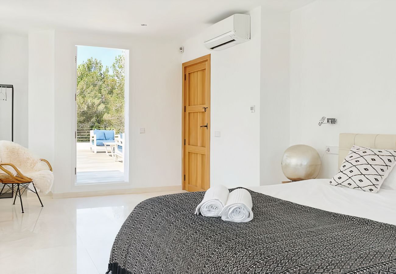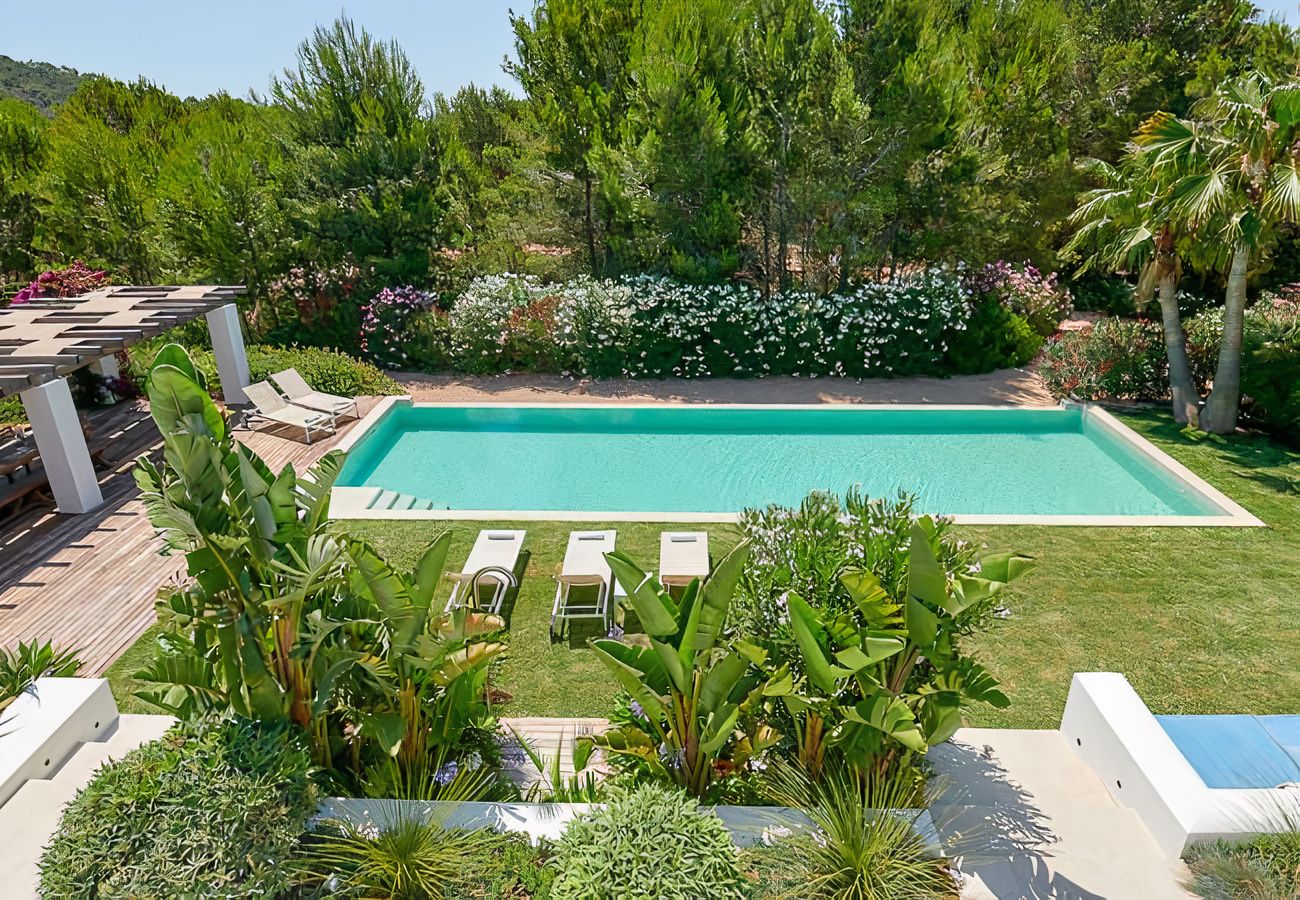Hidden within the tree-lined hills of Southwest Ibiza, this whitewashed home opens its doors to pure relaxation. You’ll find a wonderful sense of privacy here, but it’s also just a short drive to Cala Jondal beach (4 kilometres away) with San Josep and Ibiza Town also within easy driving distance. The main bedroom occupies the first floor and features a private terrace – perfect for sunset drinks – while the two guest bedrooms in the garden ensure there’s plenty of space for groups to stretch out. There are also child-friendly amenities, and your host can help organise a range of lovely extras – including massage treatments and private chefs.