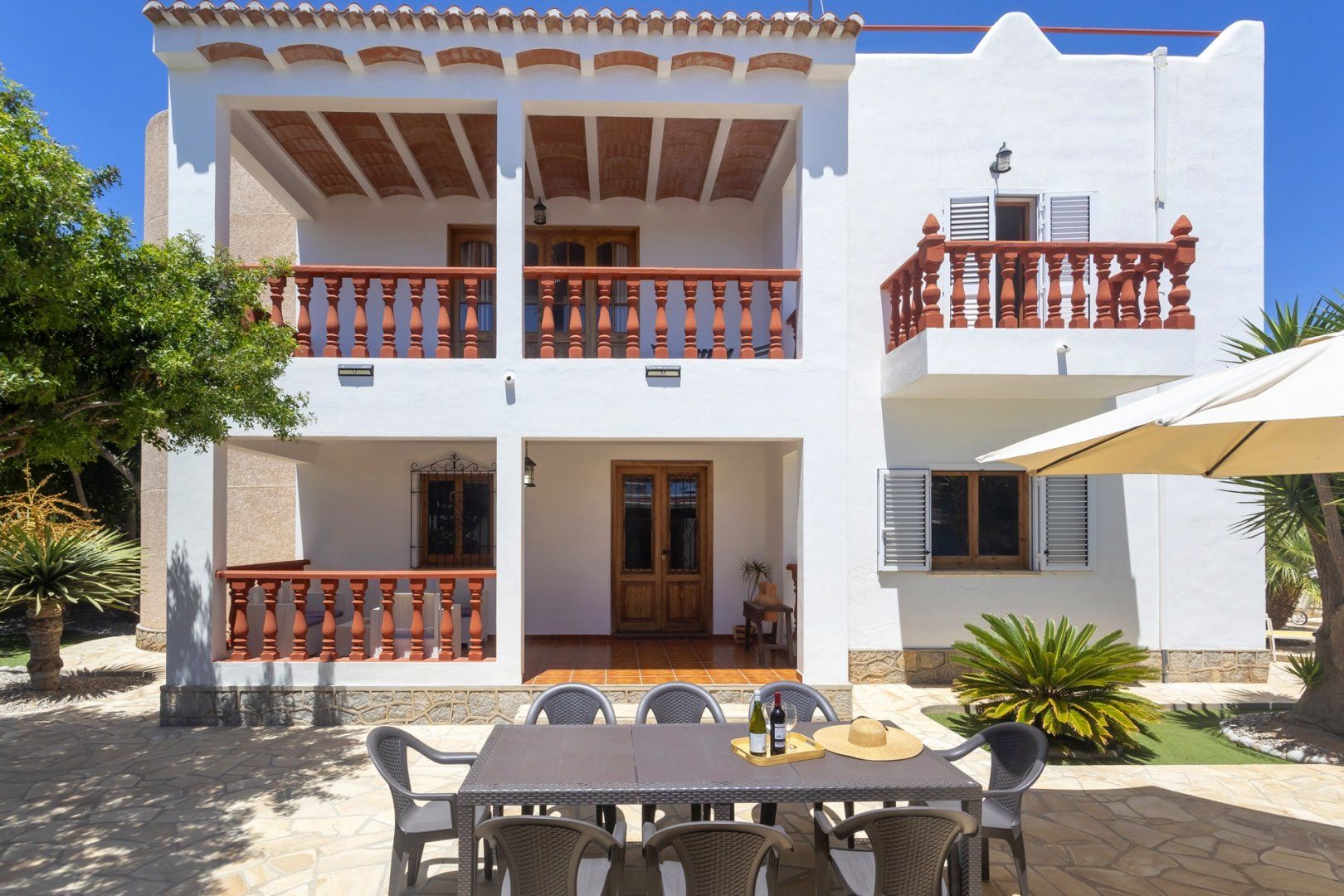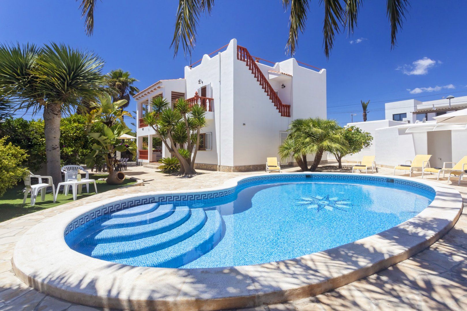 A traditional Spanish-style villa with contemporary touches and modern home comforts, this Ibiza villa is just a four-minute drive from the shops, restaurants and lively party scene of Ibiza Town.