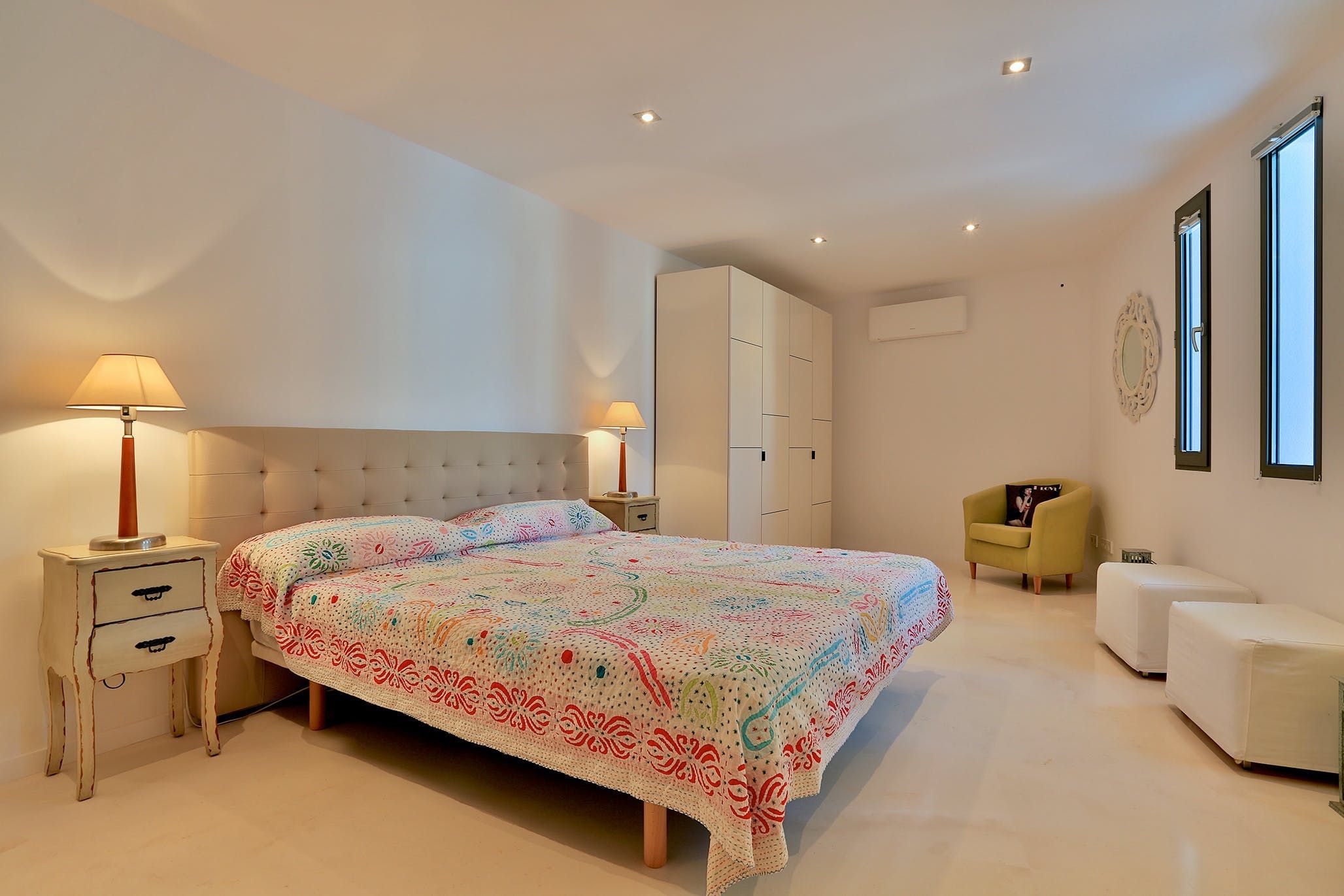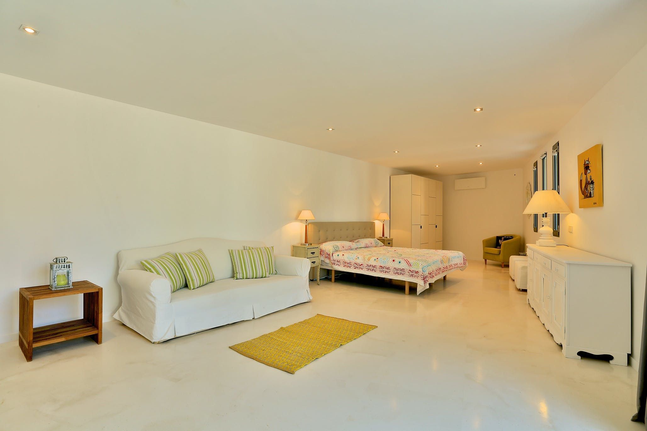 On Ibiza’s idyllic quiet side, this luxurious villa overlooks the sparkling sea at Es Torrent Bay. A three-minute drive (or leisurely twenty-five-minute walk) sees you at the soft sand and restaurant at Es Torrent beach. This section of Ibizan coast is dotted with sheltered coves and secret bays to explore. If getting to know Ibiza’s famous nightlife is on your bucket list, the world-famous beach clubs of Platja d'en Bossa are just a fifteen-minute drive away and you can return to blissful peace and quiet after a day (or night) of hedonism.