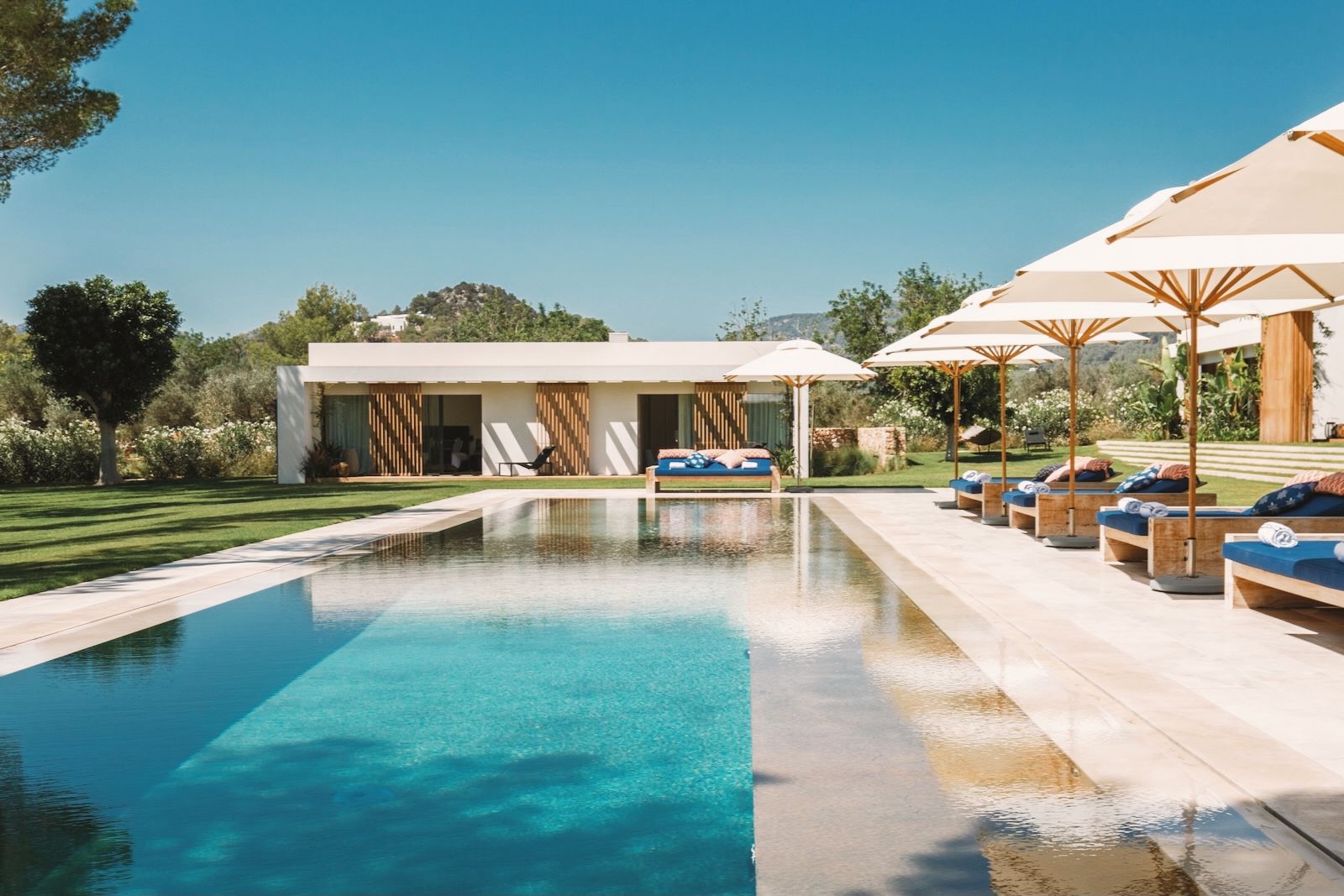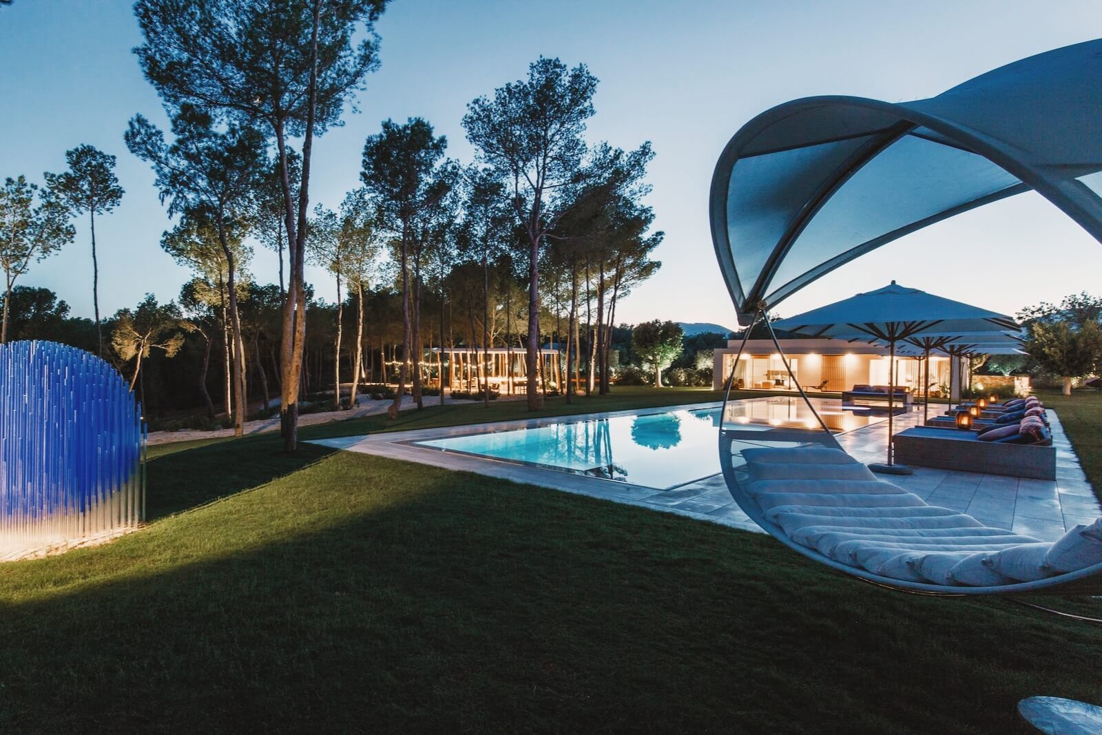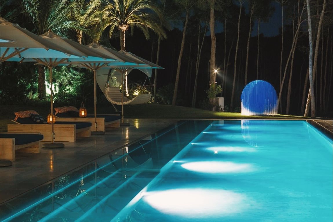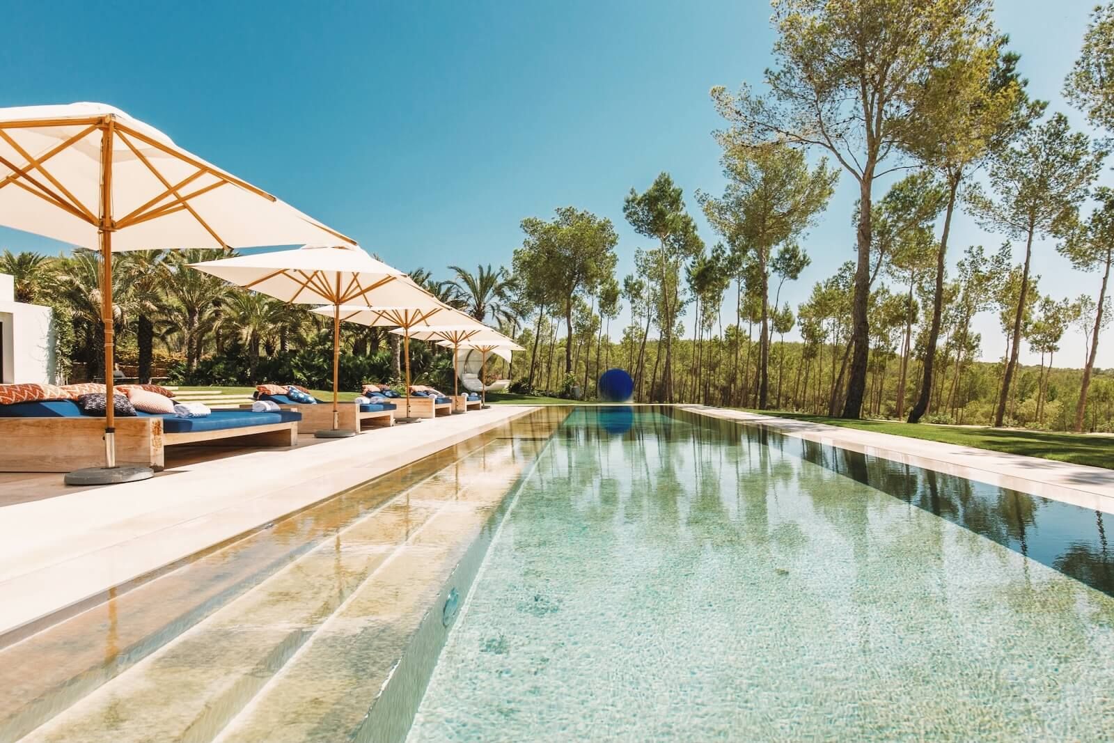 This beautiful home has everything you might need for a tranquil Ibizan escape, from a private sandy beach to live-in staff. Set on 10 hectares of land, this villa has a garden filled with lush plants, a heated pool, and a Jacuzzi. Catch glimpses of the sea from between the pines as you play volleyball or petanque, or settle down in the open-air cinema. The open-plan living and dining space has been decorated with stunning artwork, and every bedroom is elegant and attractive.