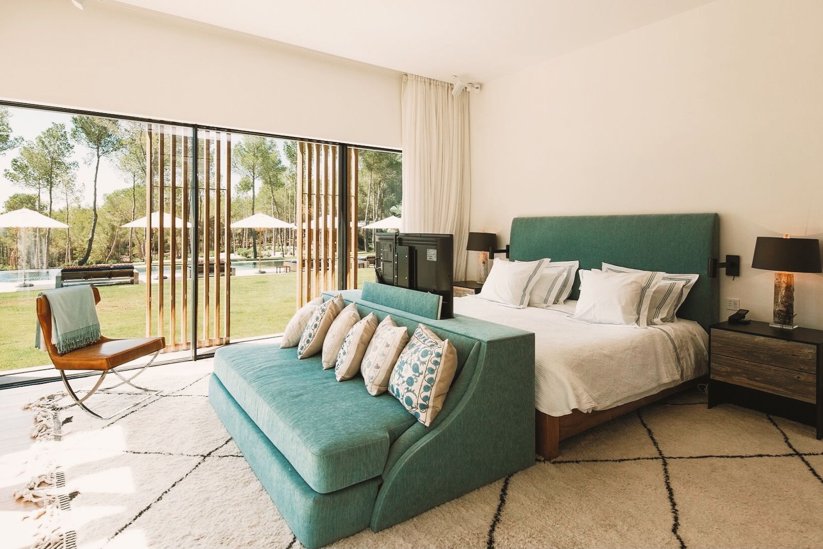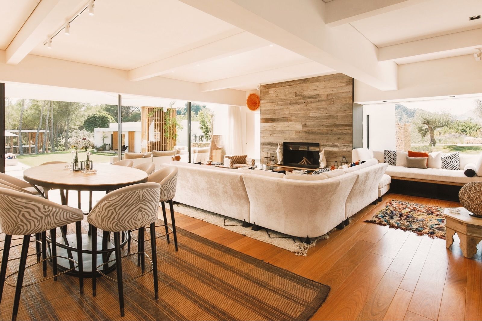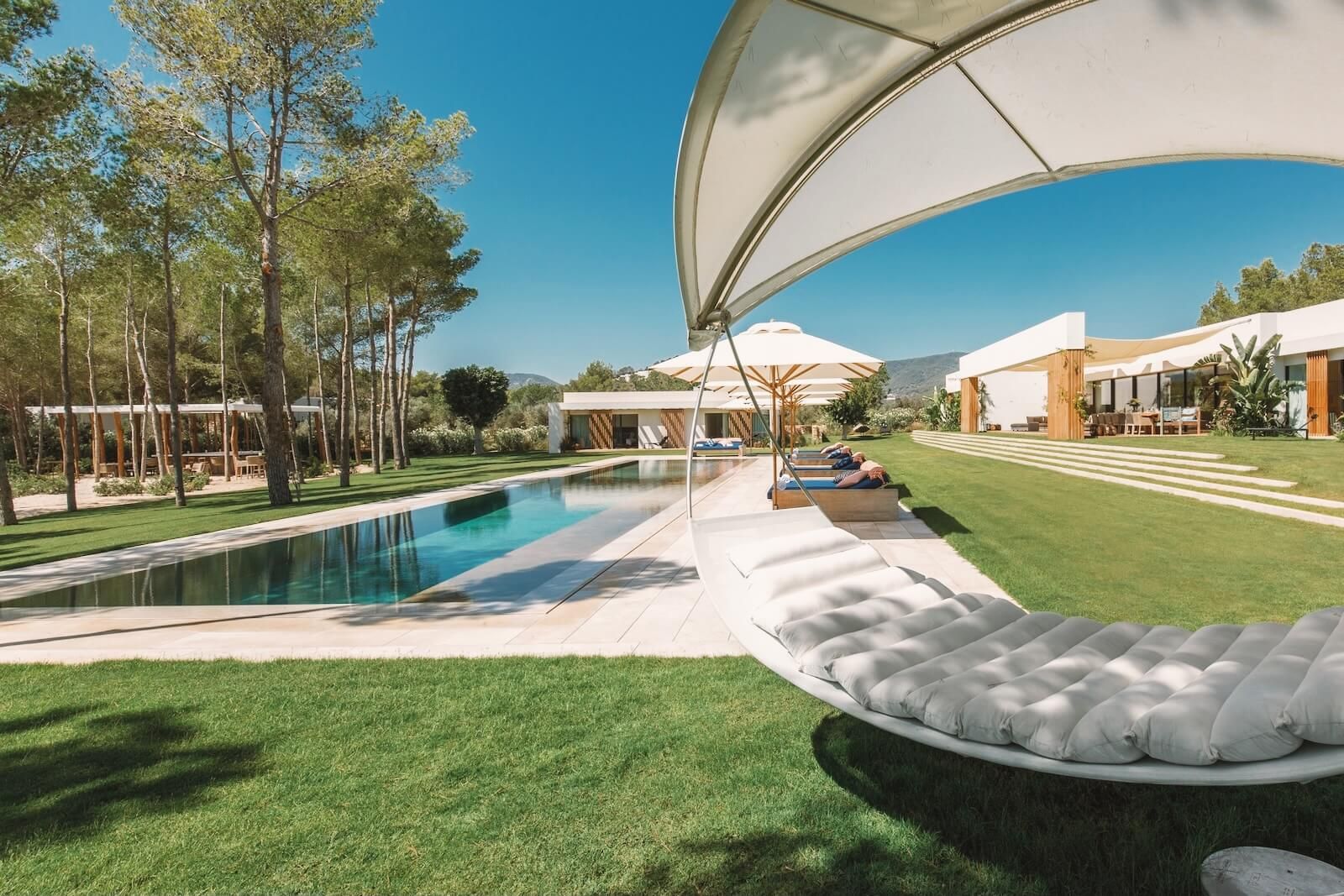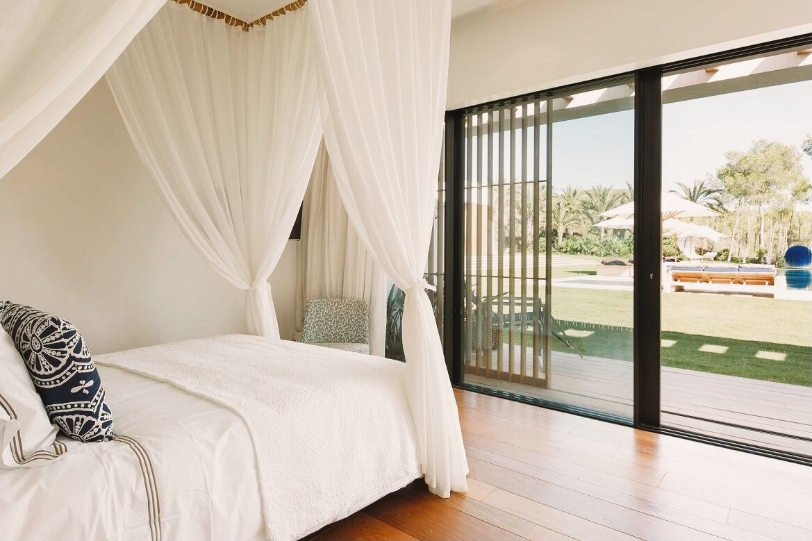 This beautiful home has everything you might need for a tranquil Ibizan escape, from a private sandy beach to live-in staff. Set on 10 hectares of land, this villa has a garden filled with lush plants, a heated pool, and a Jacuzzi. Catch glimpses of the sea from between the pines as you play volleyball or petanque, or settle down in the open-air cinema. The open-plan living and dining space has been decorated with stunning artwork, and every bedroom is elegant and attractive.