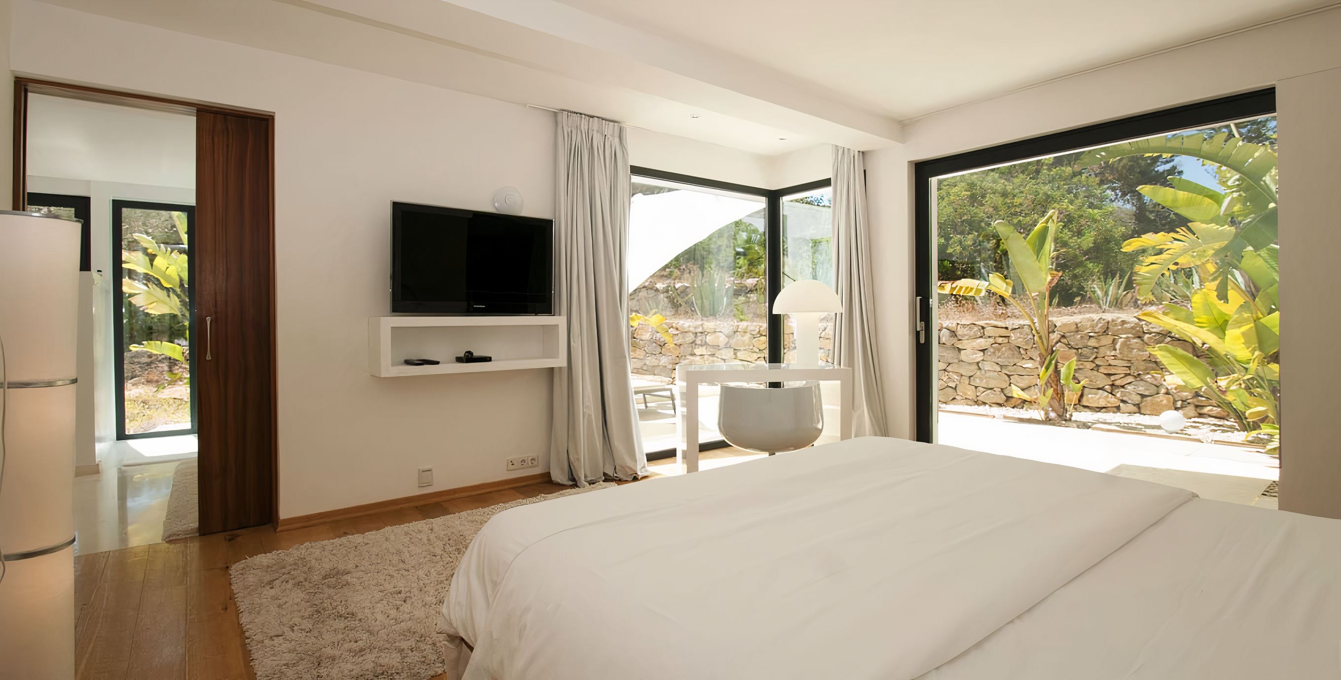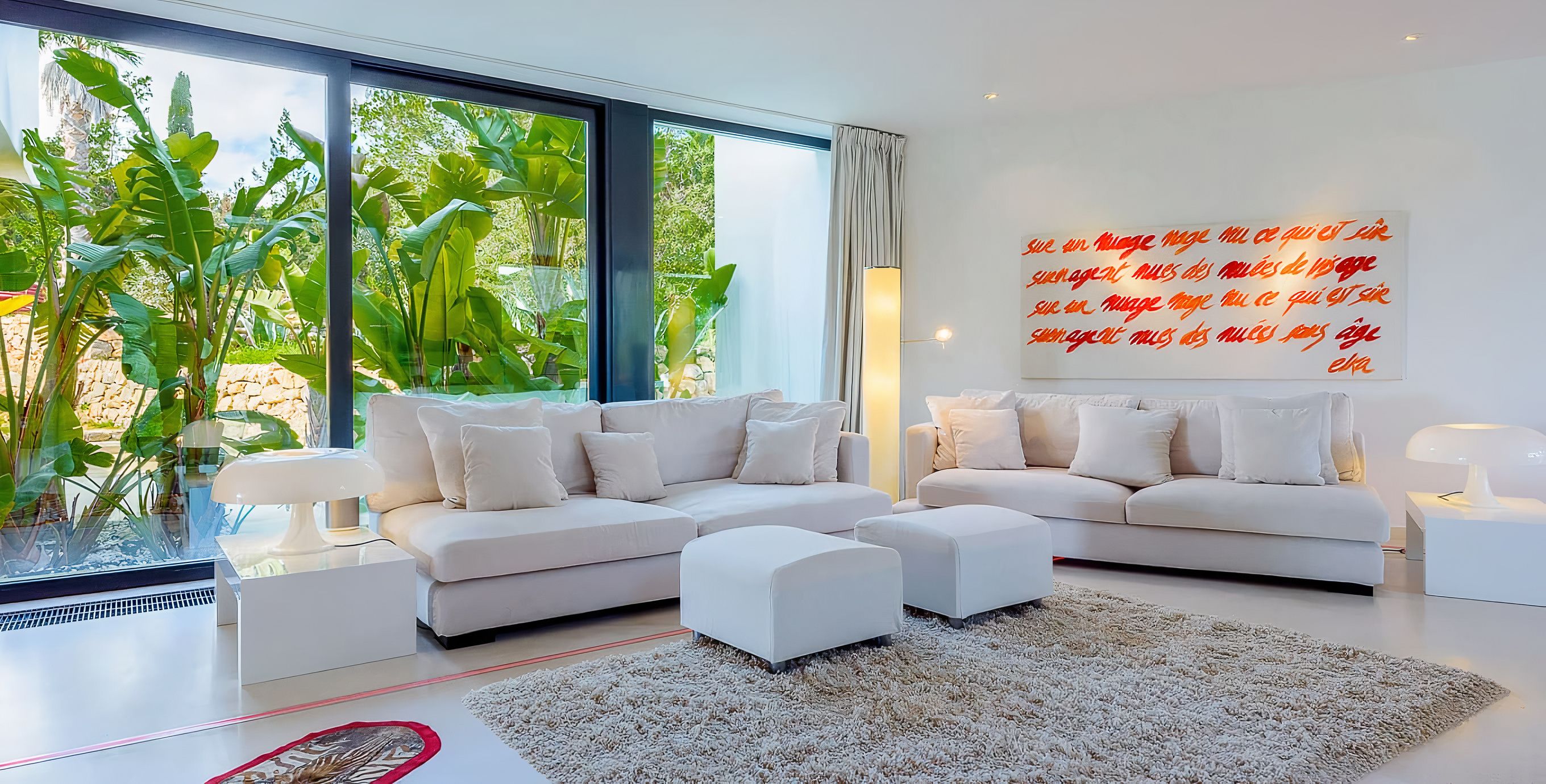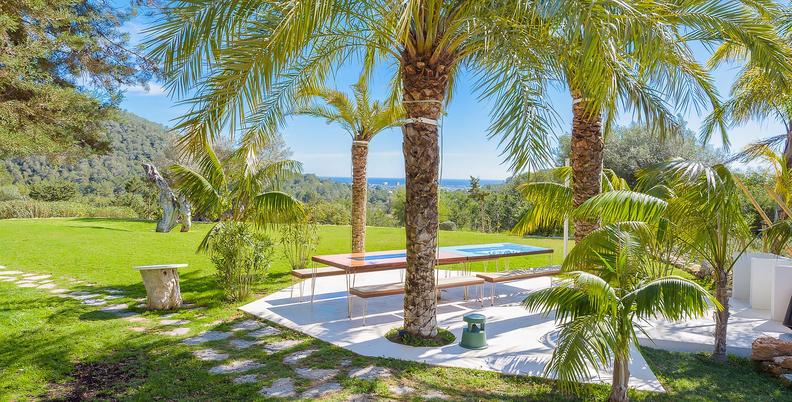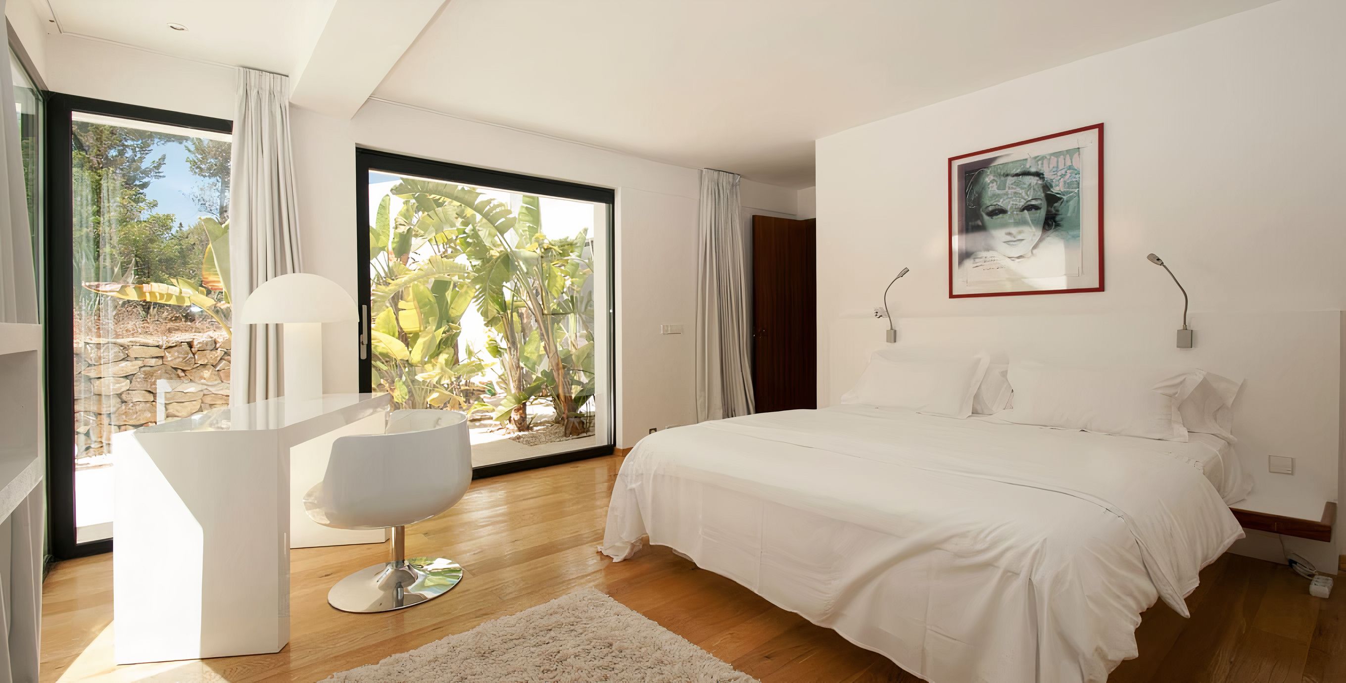 Swaying palm trees, crystal-clear waters and stunning sea views – this home is a sunseekers dream. Cool and contemporary, it features modern furniture and decor, together with funky artwork that gives it some character. The outside space is particularly glorious, with a raised terrace where you can enjoy the vistas, and of course, the wonderful private pool where you can cool off on hot and sunny days. Better yet, this villa is based just outside of Ibiza Town, just a short drive from the glorious Playa d'en Bossa, the most popular beach on the island, where you'll find vibrant bars and beach clubs where you can sip on a sangria in the sunshine.