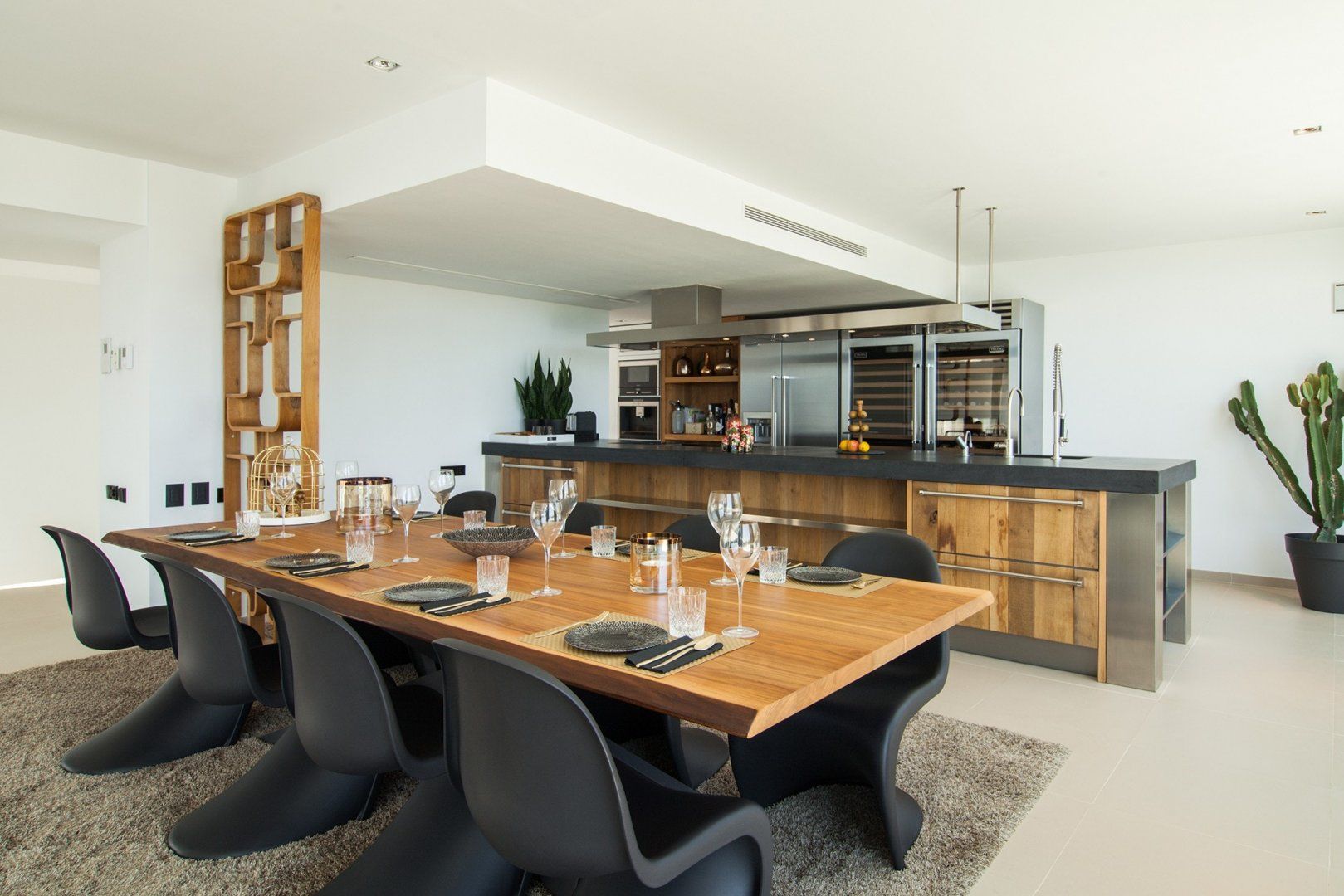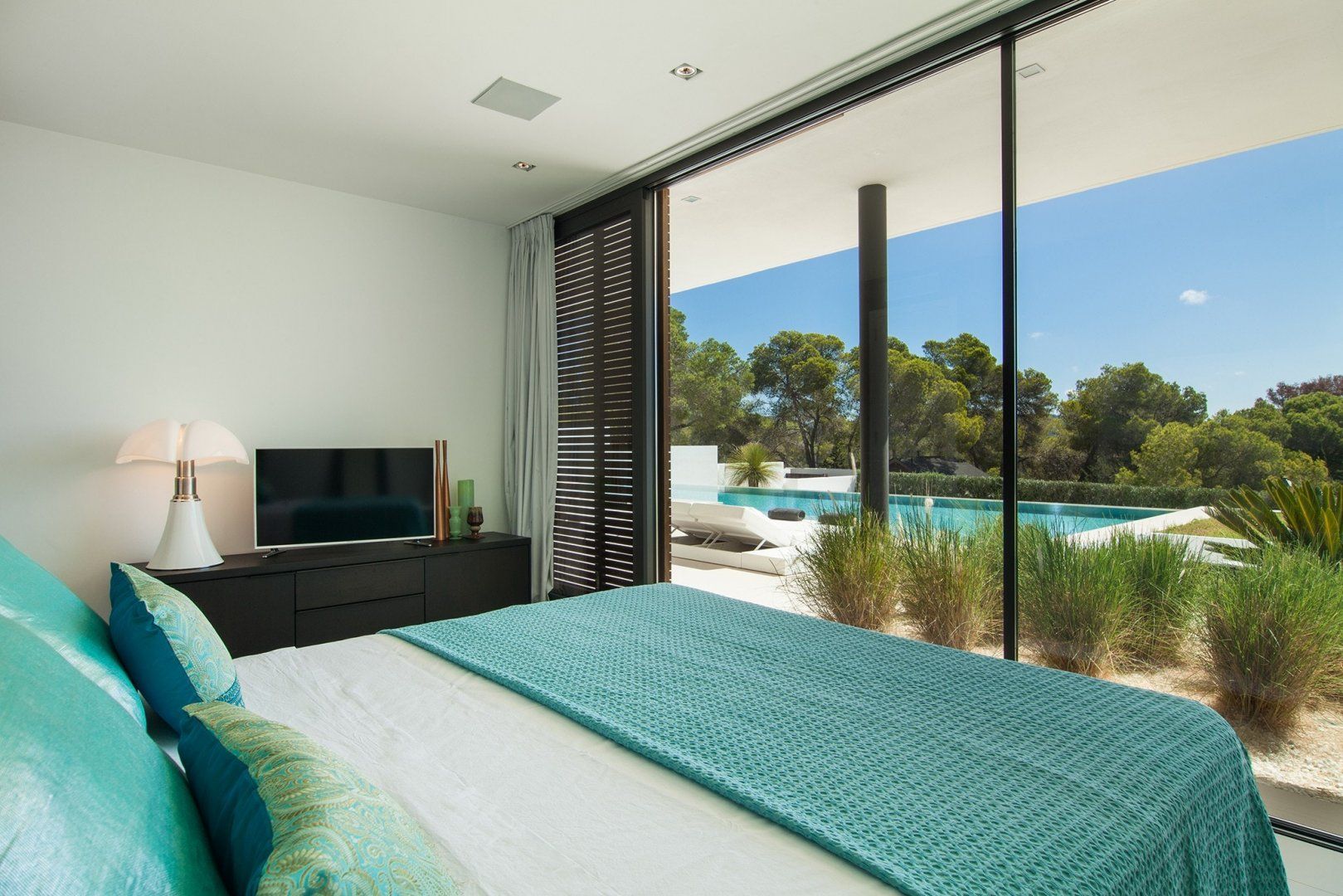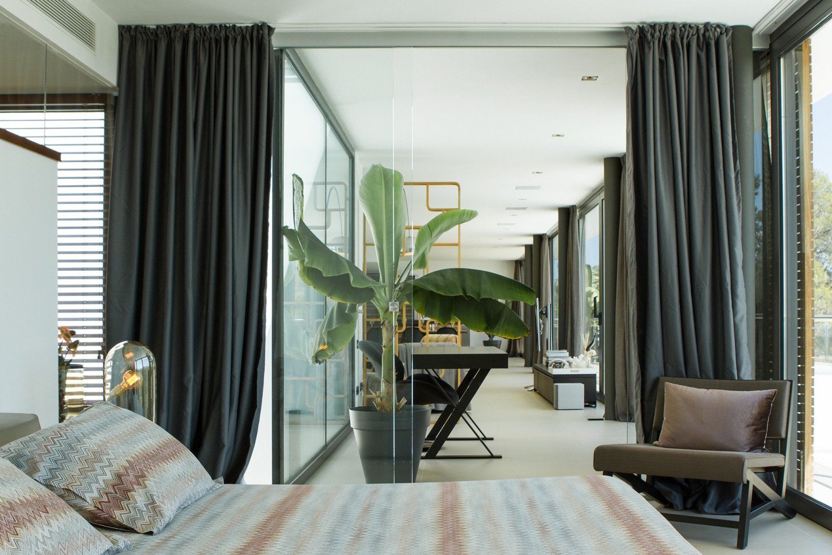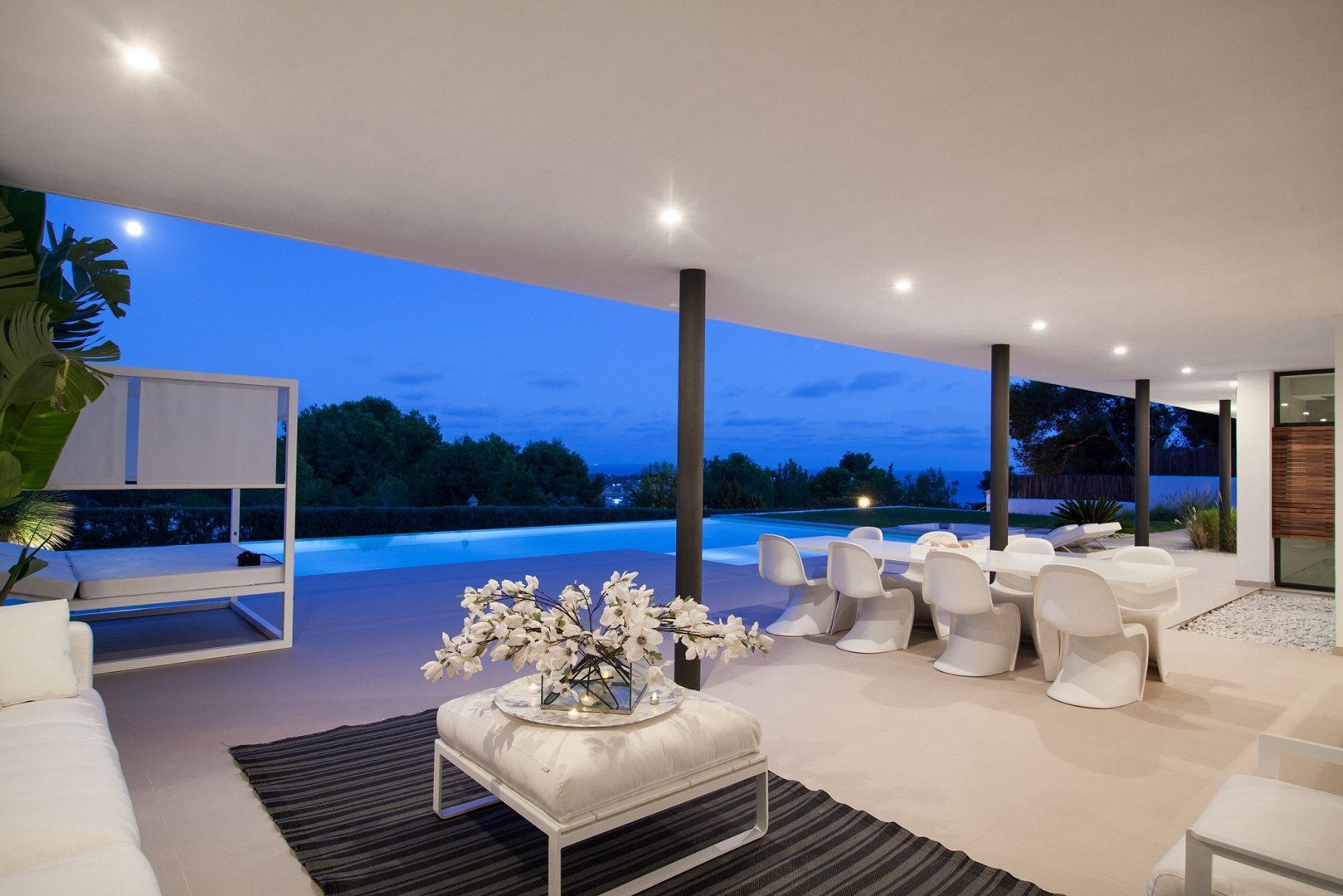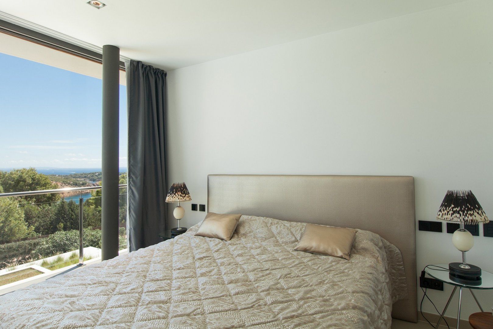 Looking for an Ibiza villa that’s truly breathtaking? We’ve found just the thing. This super-sleek holiday home sits on one of Ibiza’s most prestigious areas on the south coast, Vista Alegre, and features jaw-dropping views of the Balearic sea from the inside out. The glorious outdoor pool provides the perfect place to cool off from the hot sun, while the sunken hot tub lets you relax and rejuvenate while taking in the magnificent views that surround you. We also love the summer kitchen, where you can mix up some cocktails to sip on while relaxing on your balcony. There’s also an alfresco dining set that’s ideal for dinners at sunset.