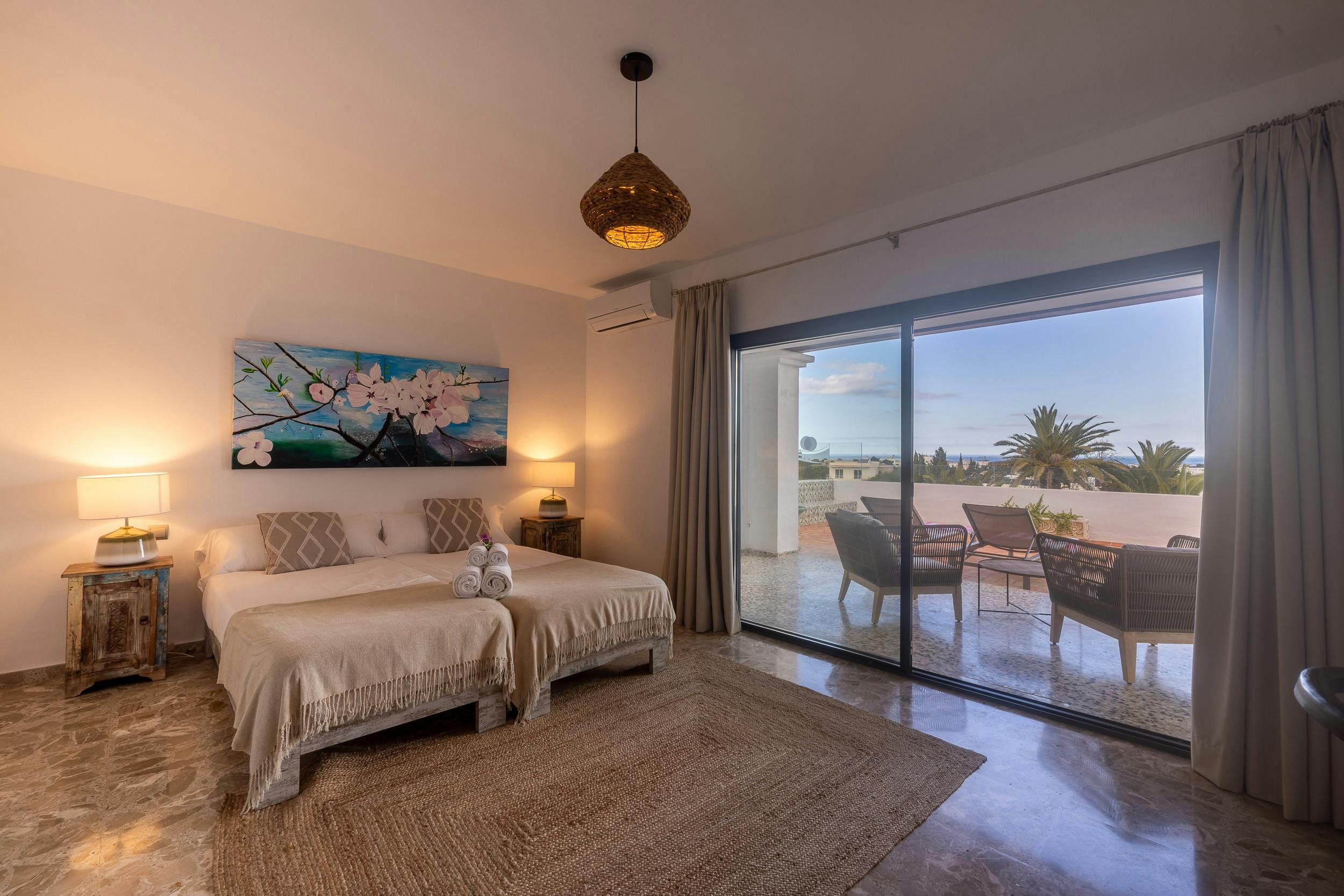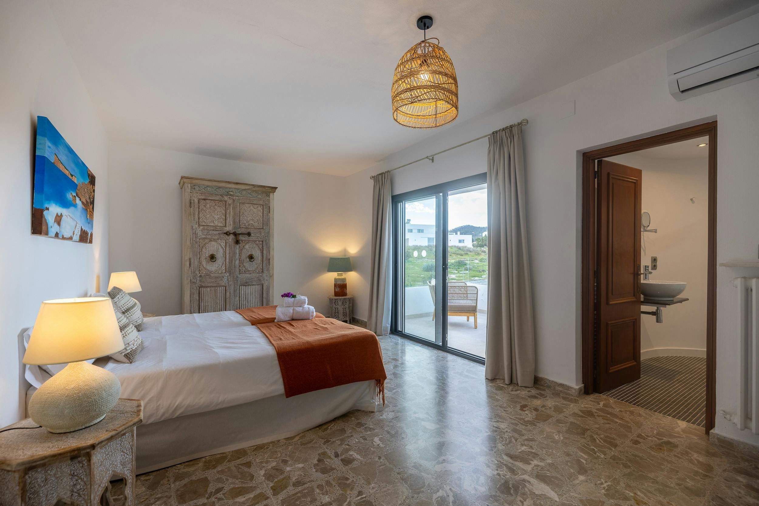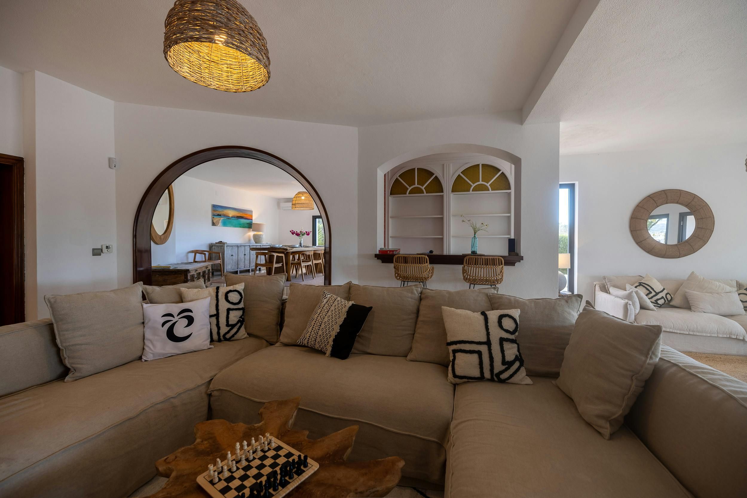 Just a short walk from the beaches of Cala Carida and Cala Conta, this villa is the perfect spot for your Ibiza adventure. With enough space for ten people, there you and your loved ones can spread out by the pool, play a game of ping pong, or steal away a quiet moment on one of the terraces. The air-conditioned interiors are ideal for escaping the heat, with a comfy and spacious lounge. Big group dinners are a breeze, with a fully equipped kitchen alongside a dining room, alfresco eating area and a barbecue by the pool.