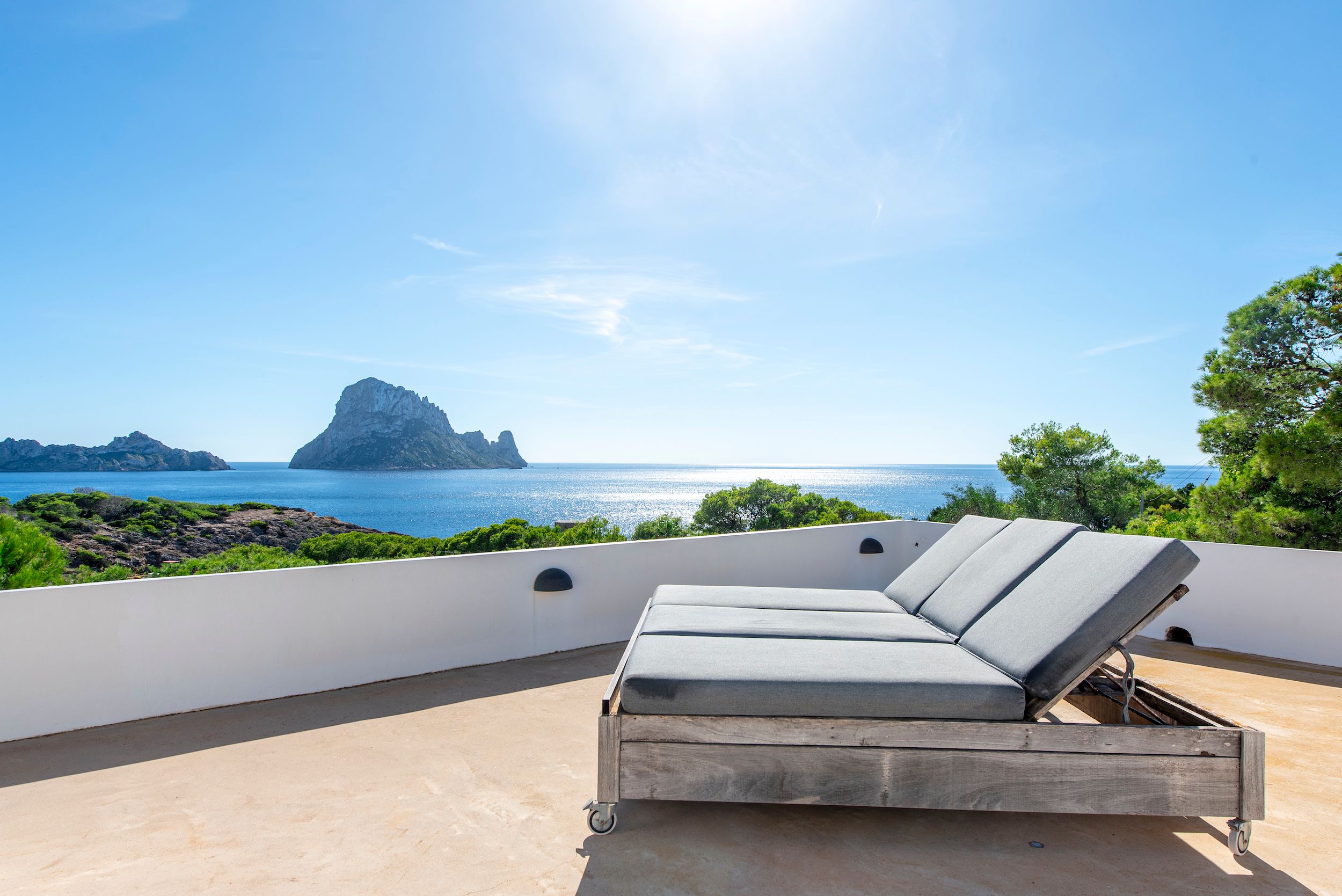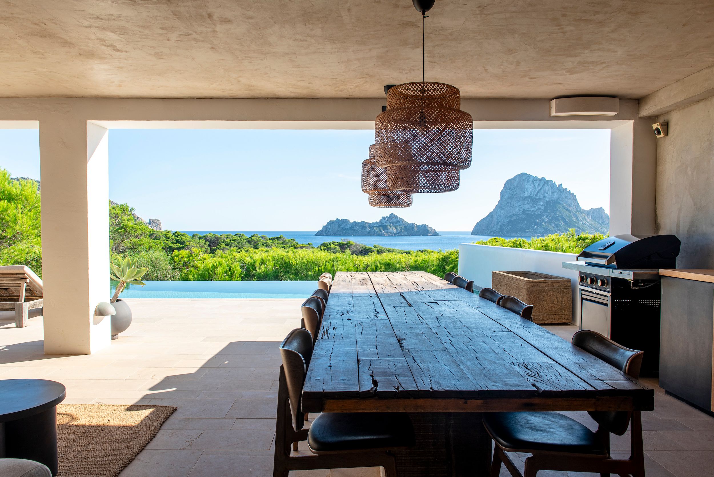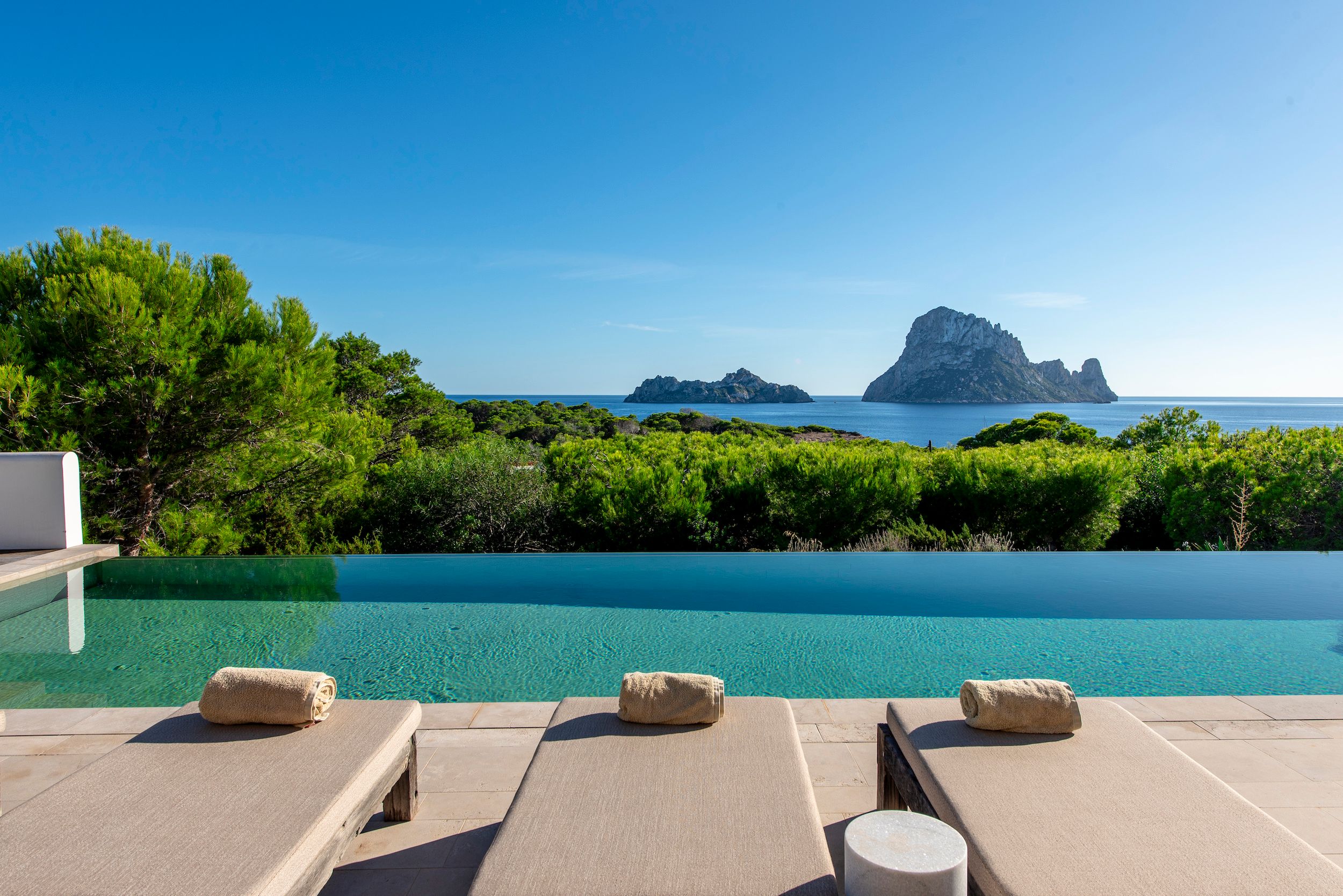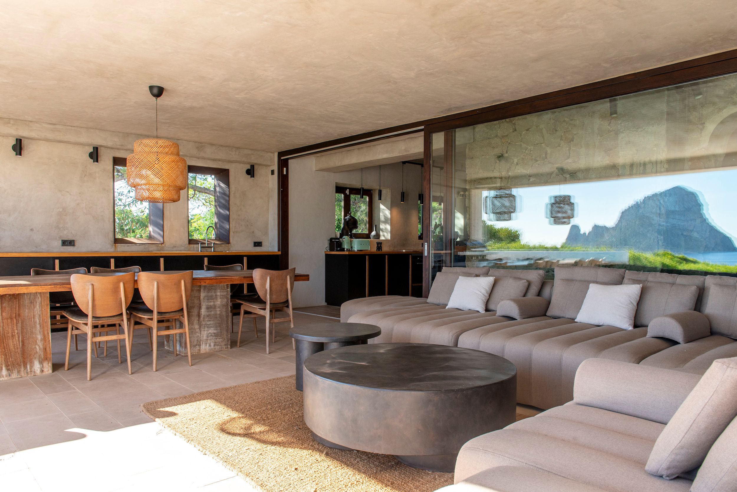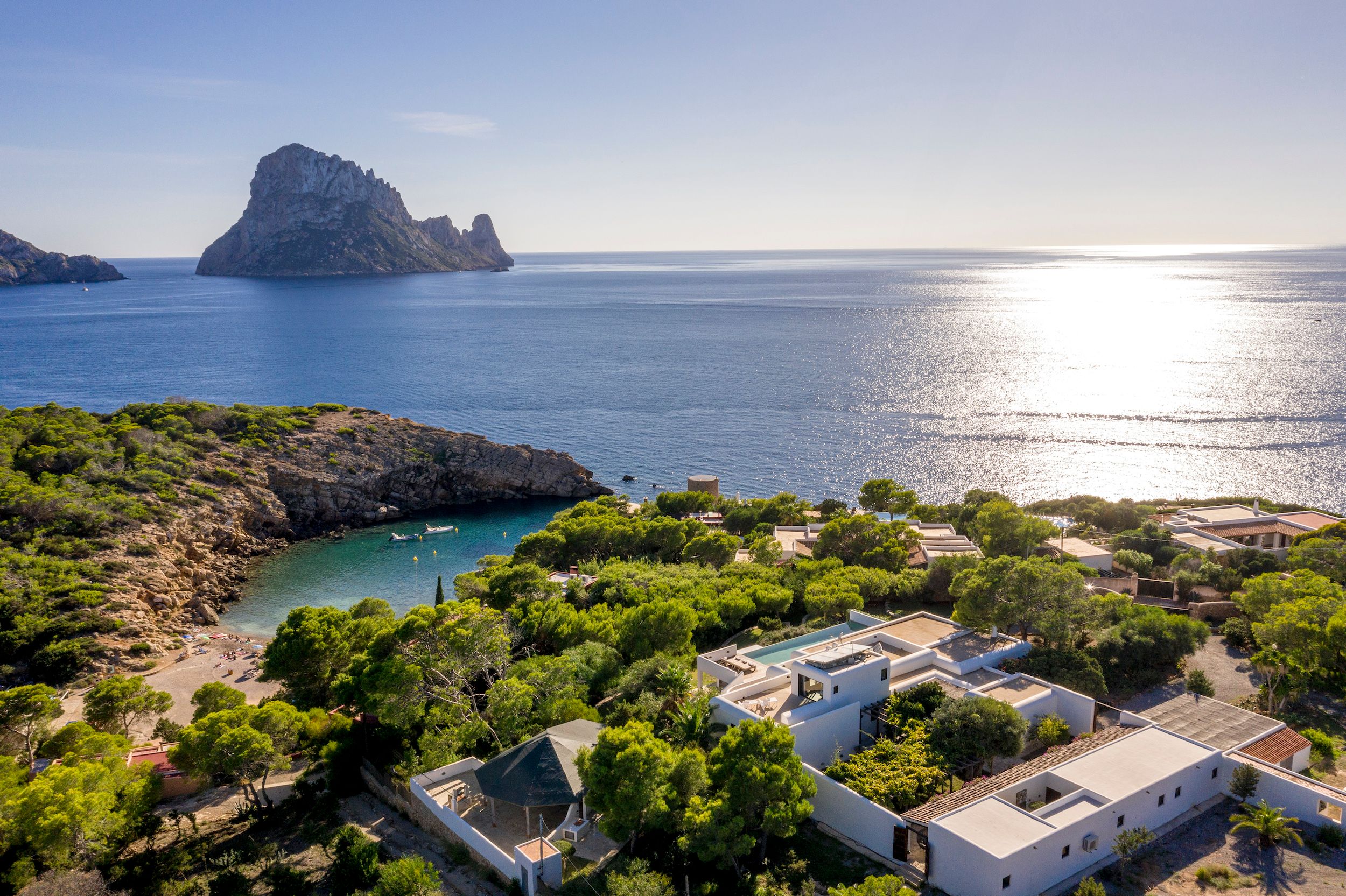 Overlooking Es Vedra, this luxurious villa is the perfect place to relax. We love the sea views from the infinity pool, while the interior courtyard is the ideal place to take shelter from the sun. The main house has two bedrooms, while the principal suite is on the top floor with a large terrace and more incredible vistas. The modern kitchen has plenty of room for food prep with its 4-metre-long island. And for six days a week, you won’t have to worry about preparing breakfast as a private chef will take care of that. Another highlight of this home is its cinema room and when you want a day at the beach, Cala Carbo is just a short stroll away.