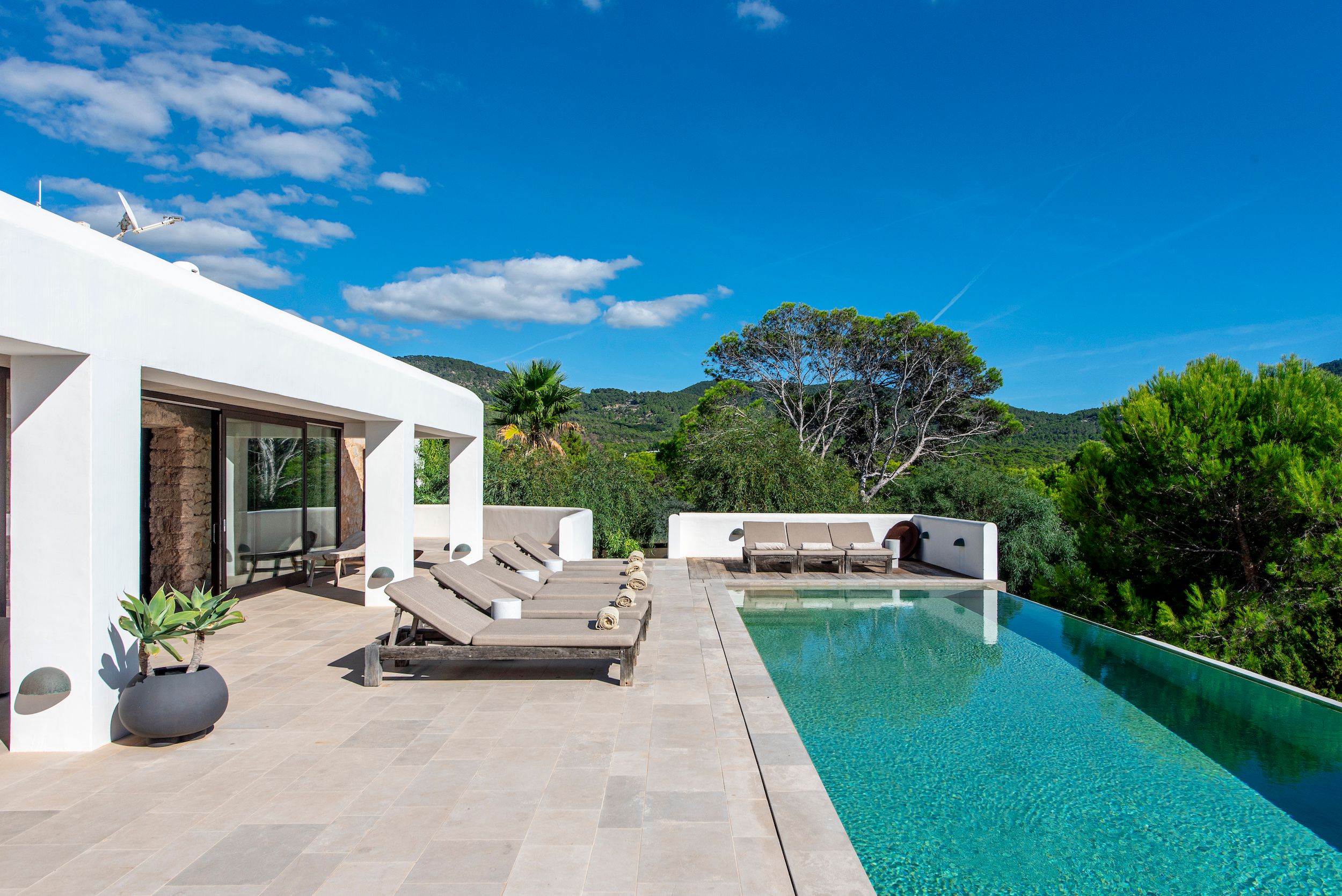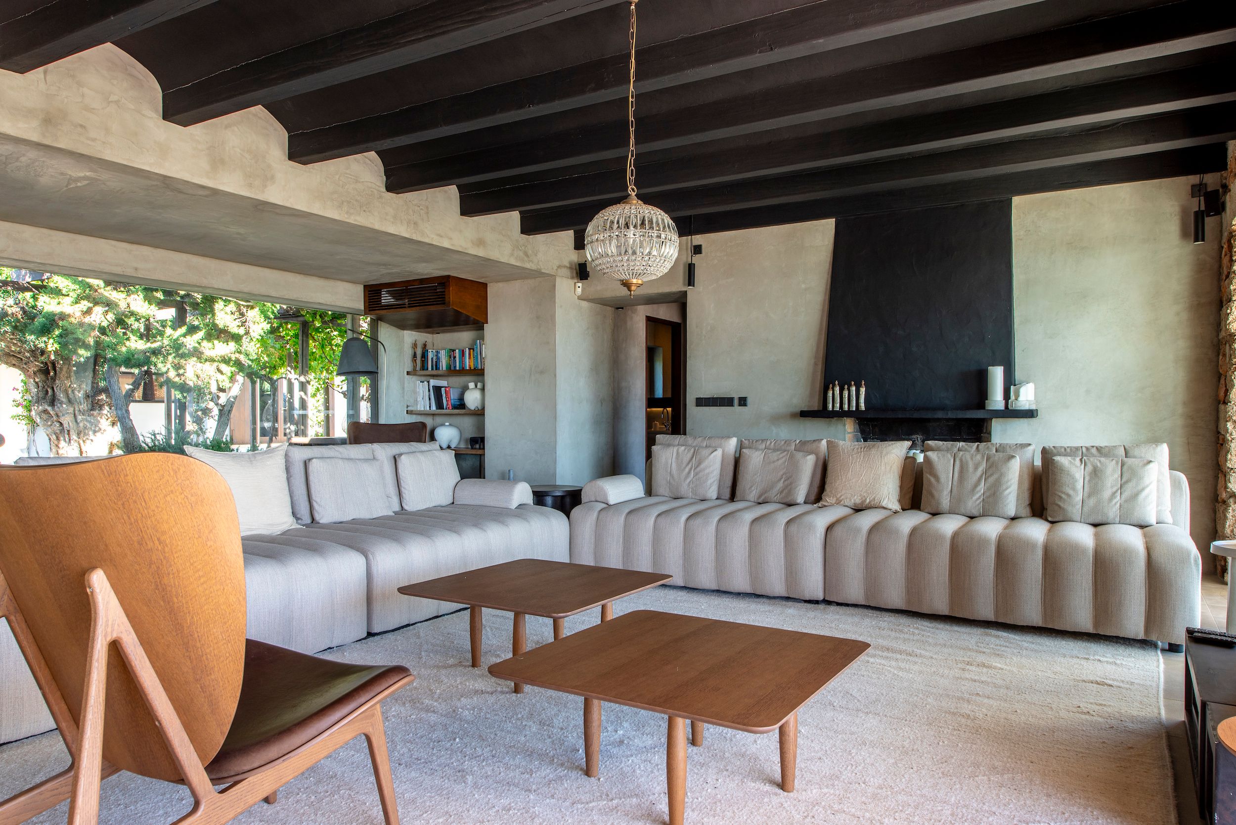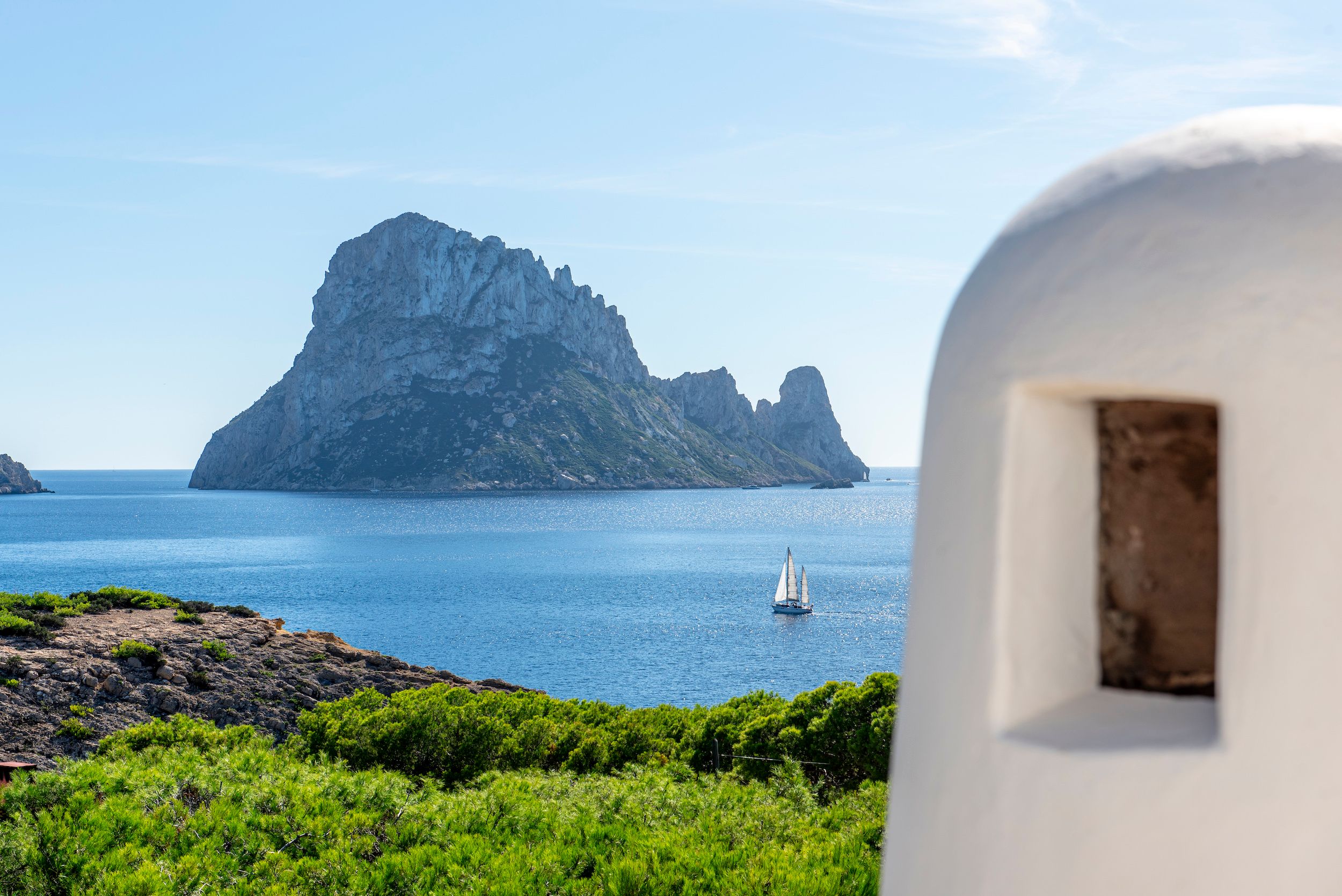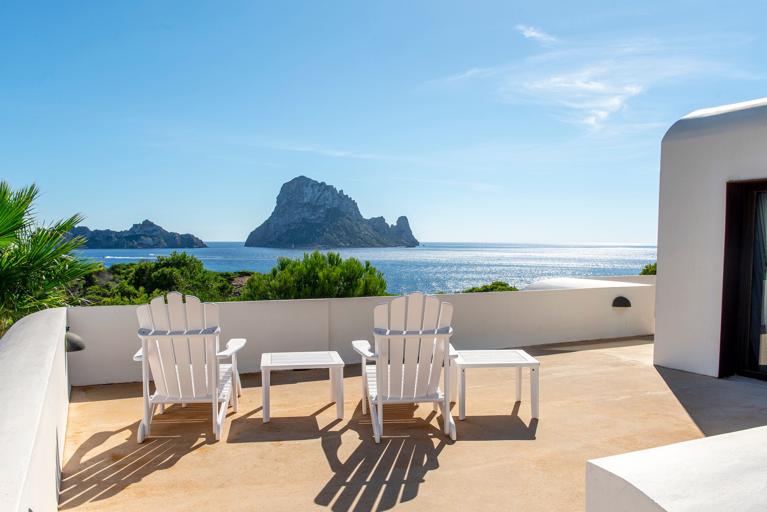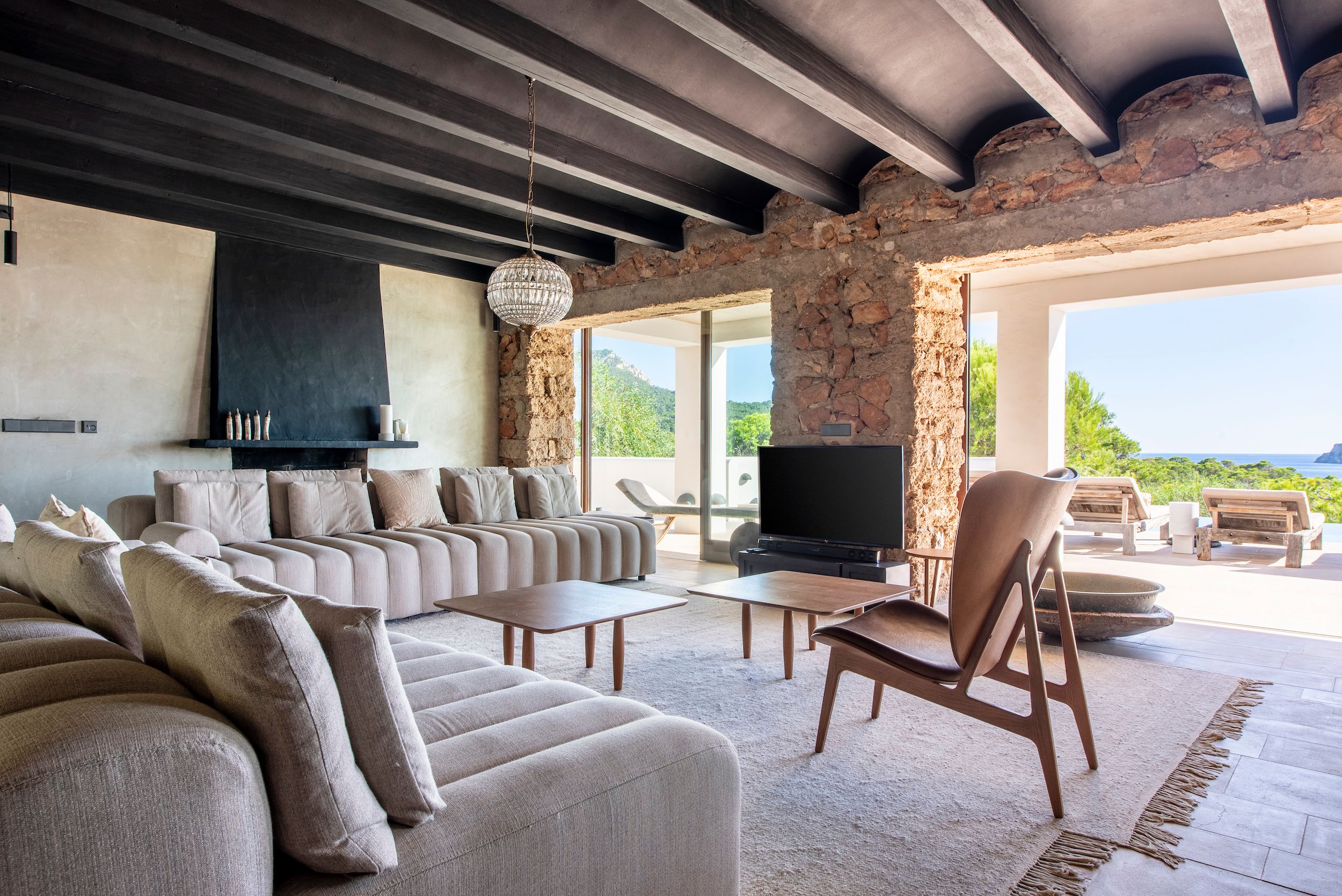 Overlooking Es Vedra, this luxurious villa is the perfect place to relax. We love the sea views from the infinity pool, while the interior courtyard is the ideal place to take shelter from the sun. The main house has two bedrooms, while the principal suite is on the top floor with a large terrace and more incredible vistas. The modern kitchen has plenty of room for food prep with its 4-metre-long island. And for six days a week, you won’t have to worry about preparing breakfast as a private chef will take care of that. Another highlight of this home is its cinema room and when you want a day at the beach, Cala Carbo is just a short stroll away.