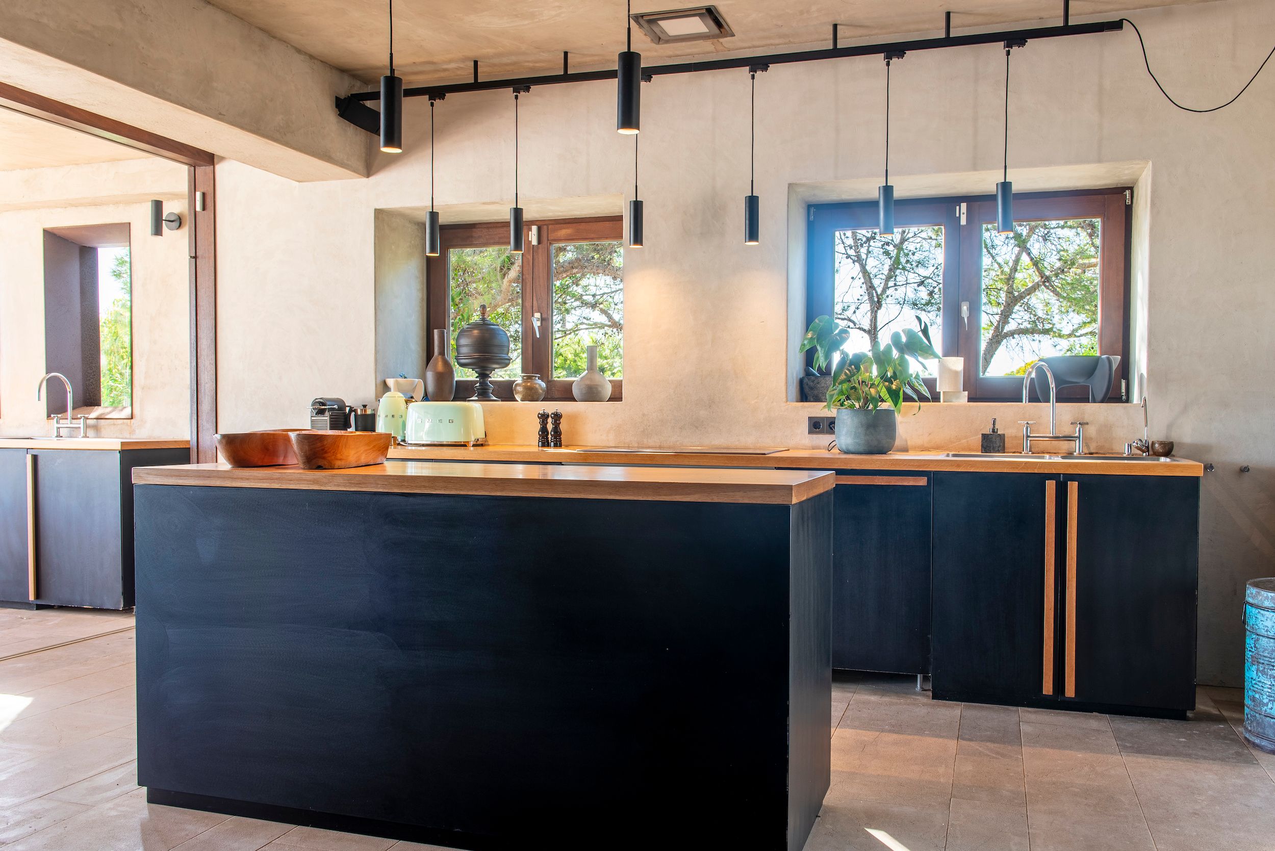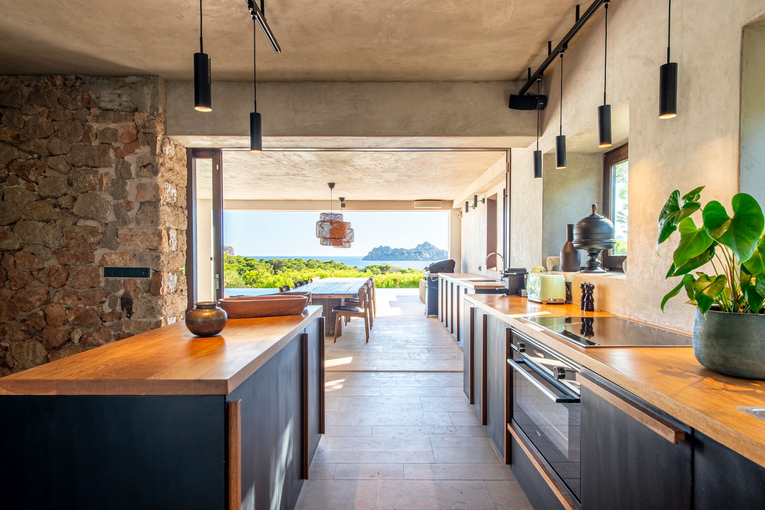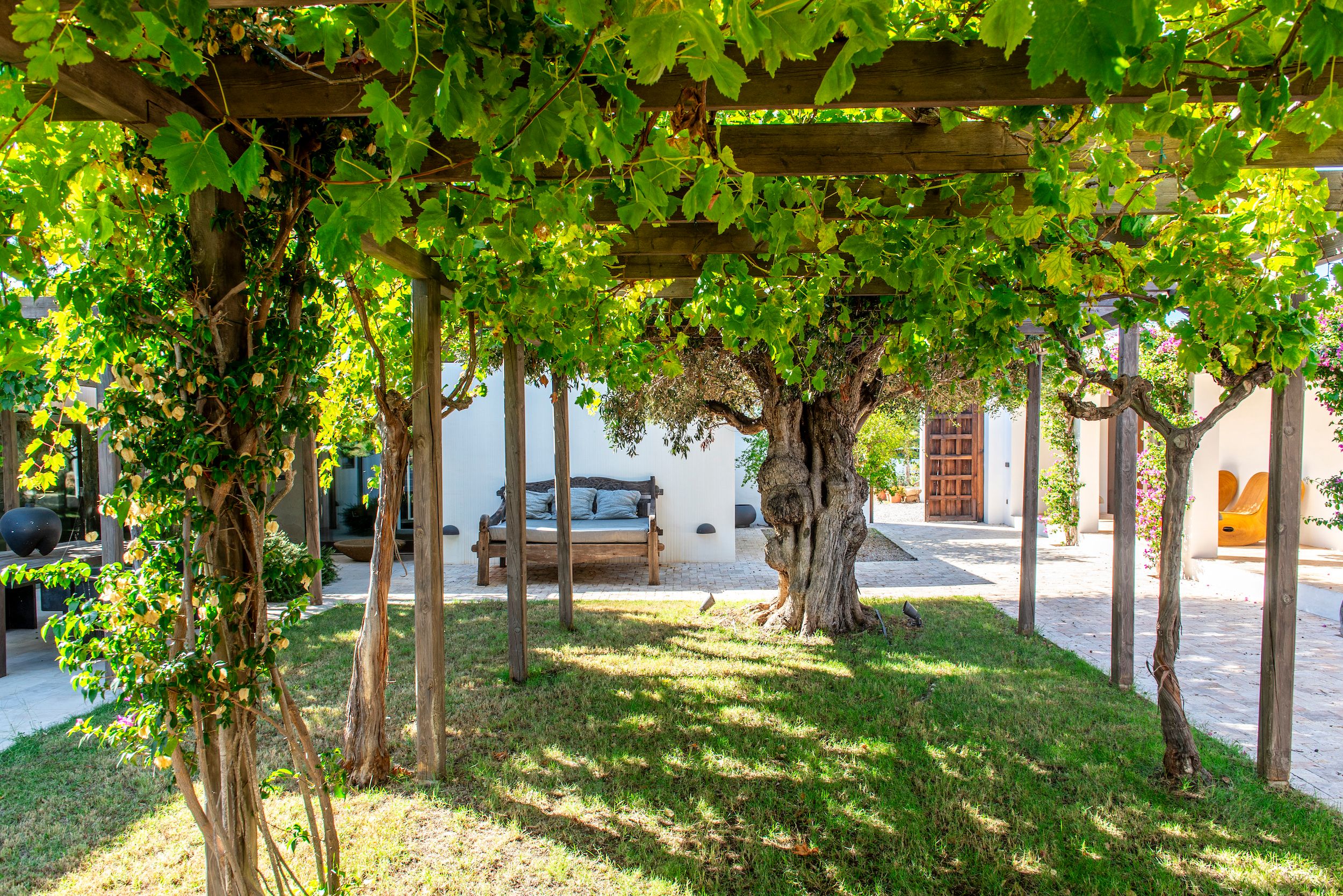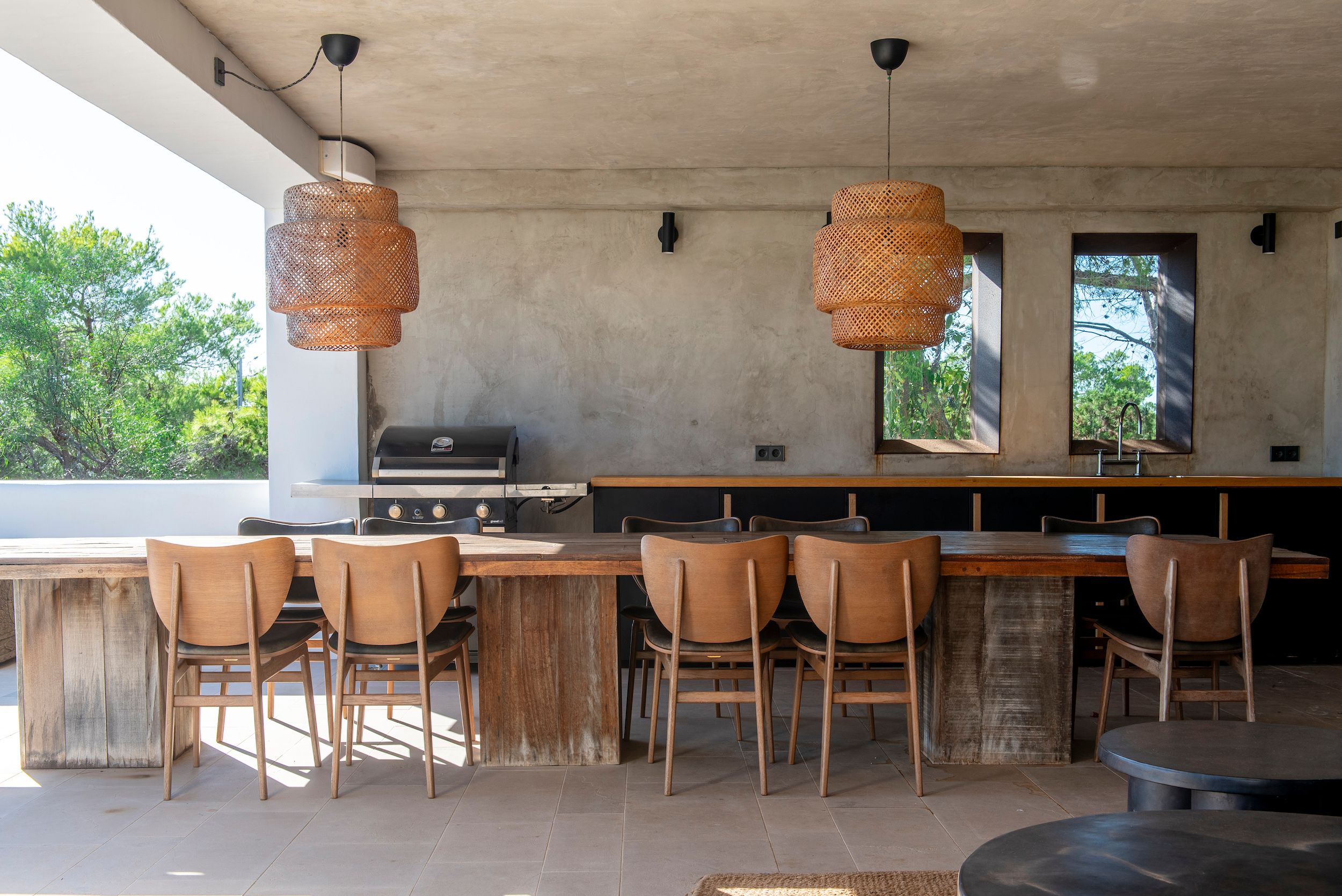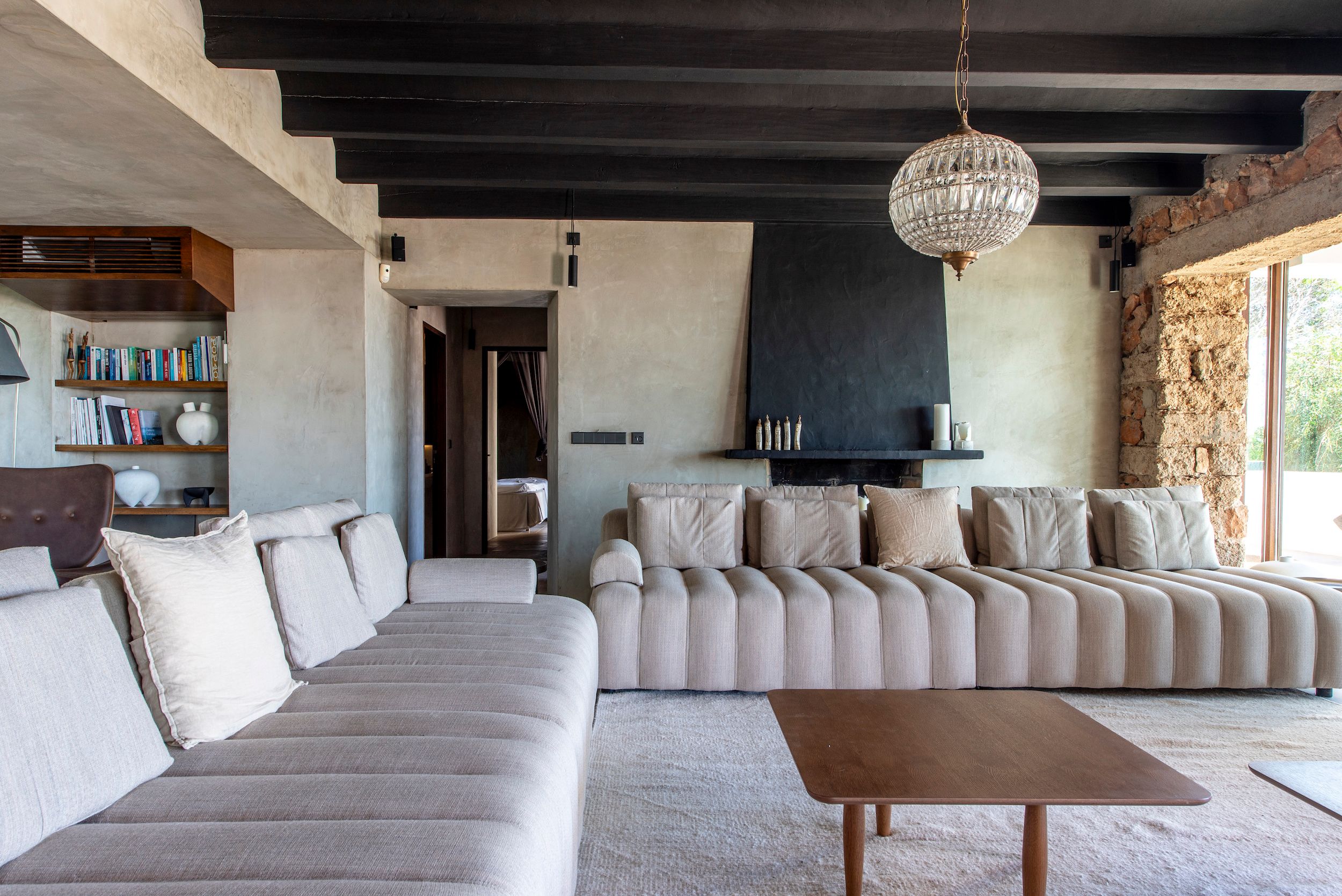Overlooking Es Vedra, this luxurious villa is the perfect place to relax. We love the sea views from the infinity pool, while the interior courtyard is the ideal place to take shelter from the sun. The main house has two bedrooms, while the principal suite is on the top floor with a large terrace and more incredible vistas. The modern kitchen has plenty of room for food prep with its 4-metre-long island. And for six days a week, you won’t have to worry about preparing breakfast as a private chef will take care of that. Another highlight of this home is its cinema room and when you want a day at the beach, Cala Carbo is just a short stroll away.