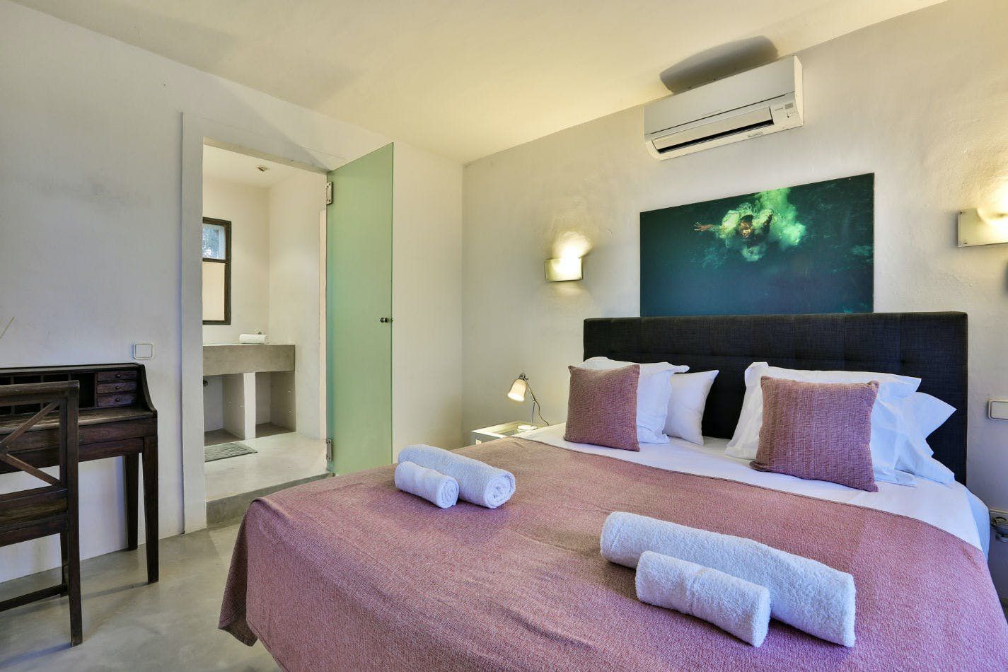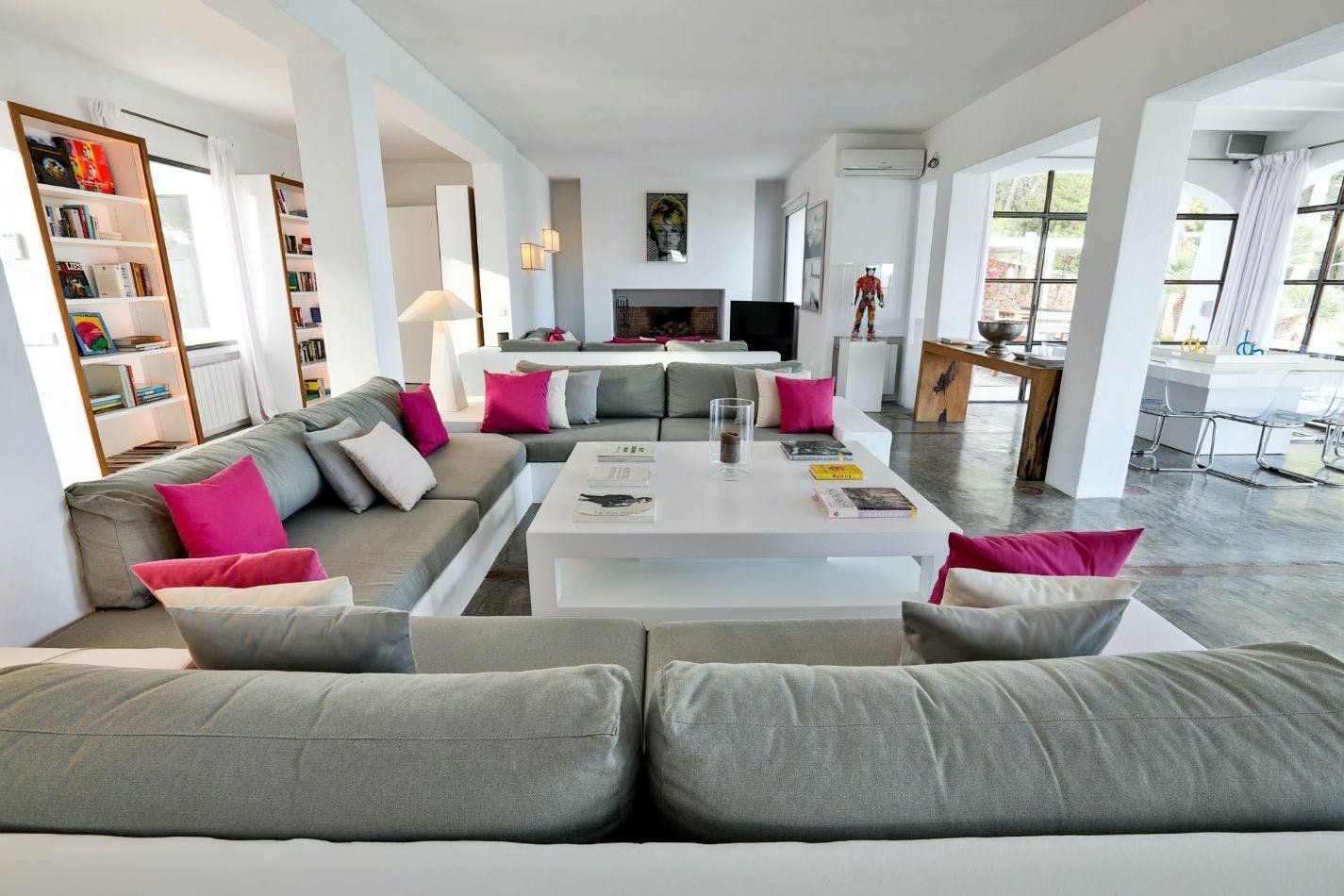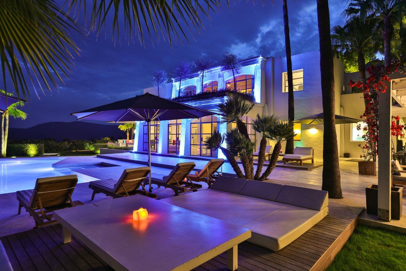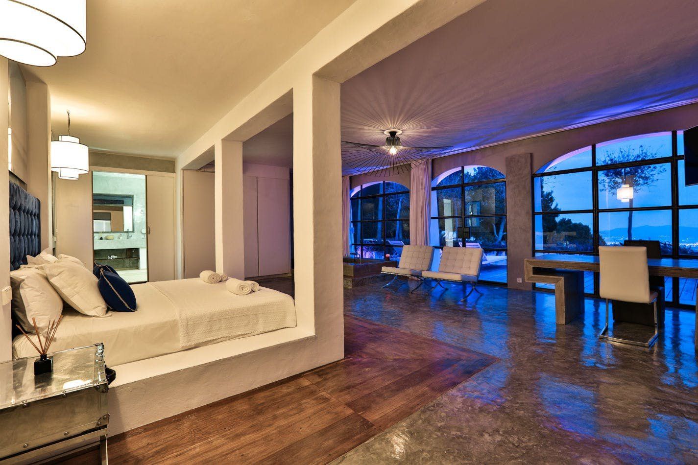 With a grand pool, high arched windows and luxurious sunken baths, this is a home fit for royalty – we defy anyone not to feel like king or queen of the castle as they look over that spectacular sea view. Facing the iconic Salt Flats and just a ten-minute drive from the cobbled streets of the Old Town or the sands of the island’s many beaches, this home is the perfect base to explore Ibiza for the first time or the thousandth. Of course, Ibiza comes alive as the sun goes down, and this villa is no different: the neon lights cast over the enormous pool and gardens will make you feel like you’re in your very own, oh-so-exclusive club. And as a bonus, you get to play DJ. Whether you put on a tune guaranteed to get everyone up from the outdoor bar for a boogie or something more sedate for a night drinking wine and chatting on the terrace, the world is your dancefloor tonight.