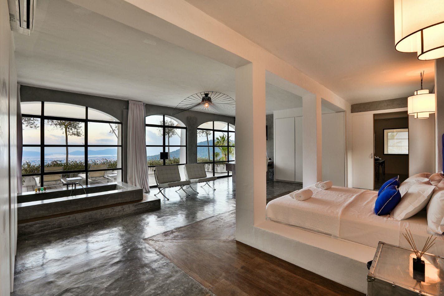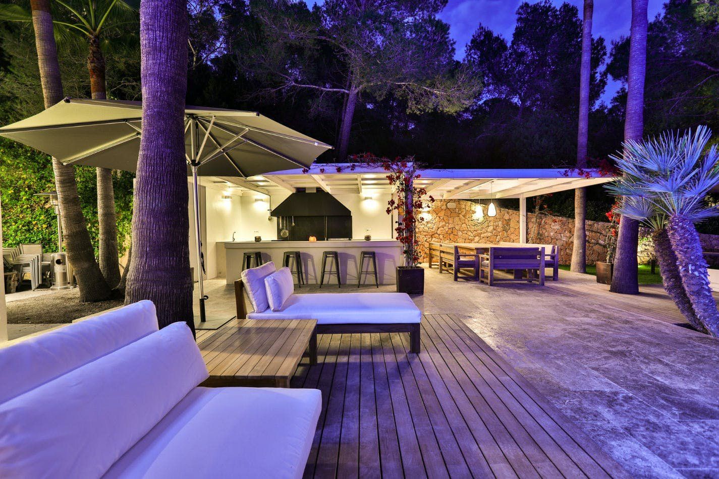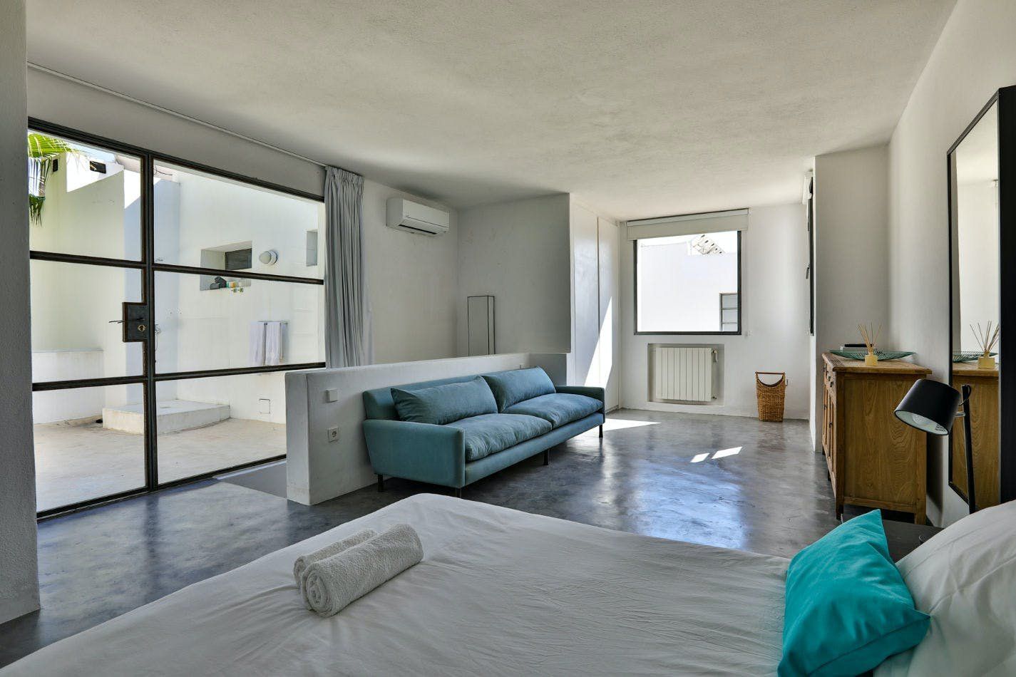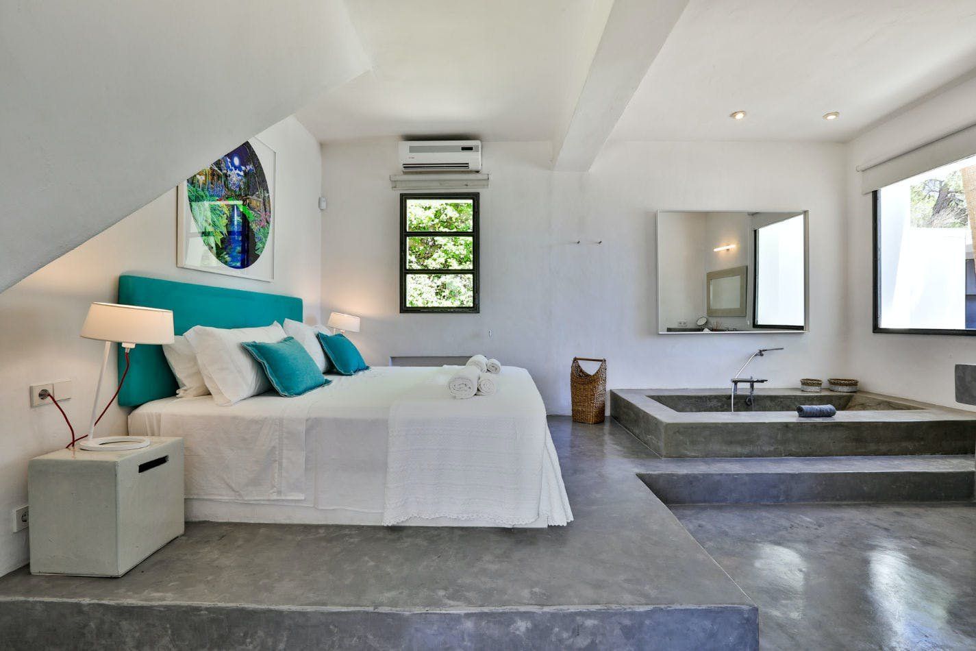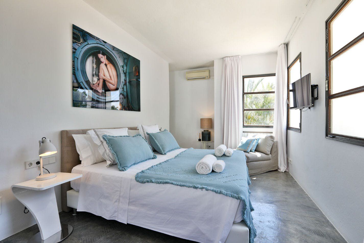 With a grand pool, high arched windows and luxurious sunken baths, this is a home fit for royalty – we defy anyone not to feel like king or queen of the castle as they look over that spectacular sea view. Facing the iconic Salt Flats and just a ten-minute drive from the cobbled streets of the Old Town or the sands of the island’s many beaches, this home is the perfect base to explore Ibiza for the first time or the thousandth. Of course, Ibiza comes alive as the sun goes down, and this villa is no different: the neon lights cast over the enormous pool and gardens will make you feel like you’re in your very own, oh-so-exclusive club. And as a bonus, you get to play DJ. Whether you put on a tune guaranteed to get everyone up from the outdoor bar for a boogie or something more sedate for a night drinking wine and chatting on the terrace, the world is your dancefloor tonight.