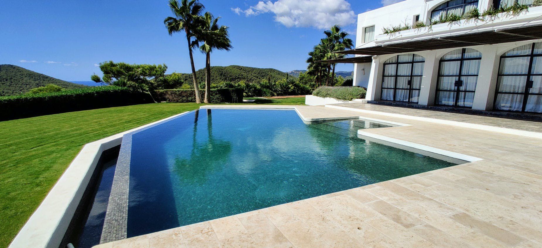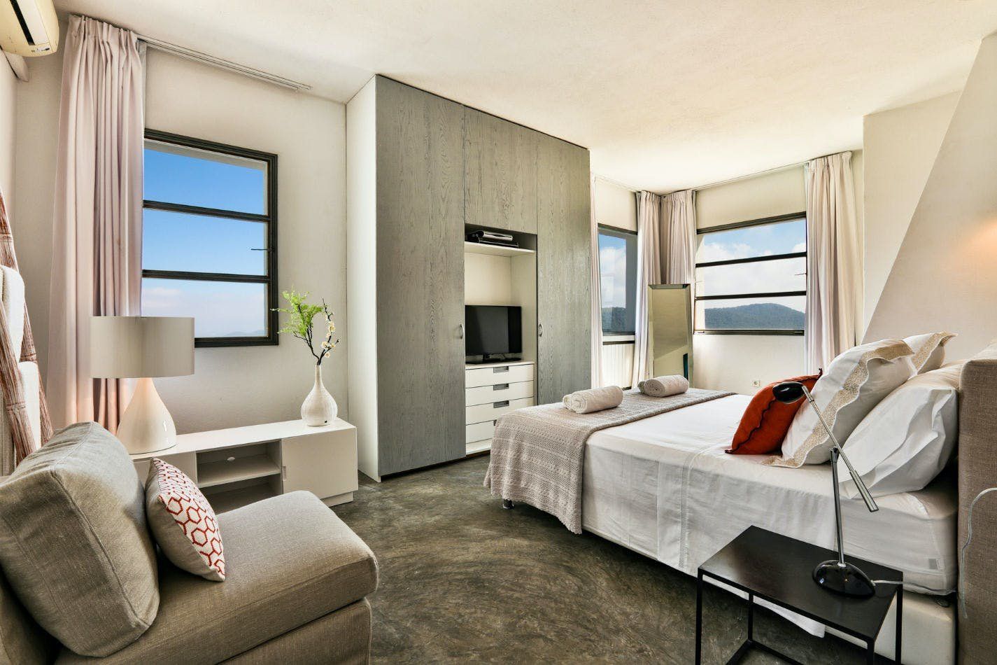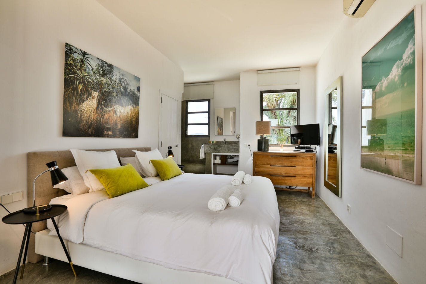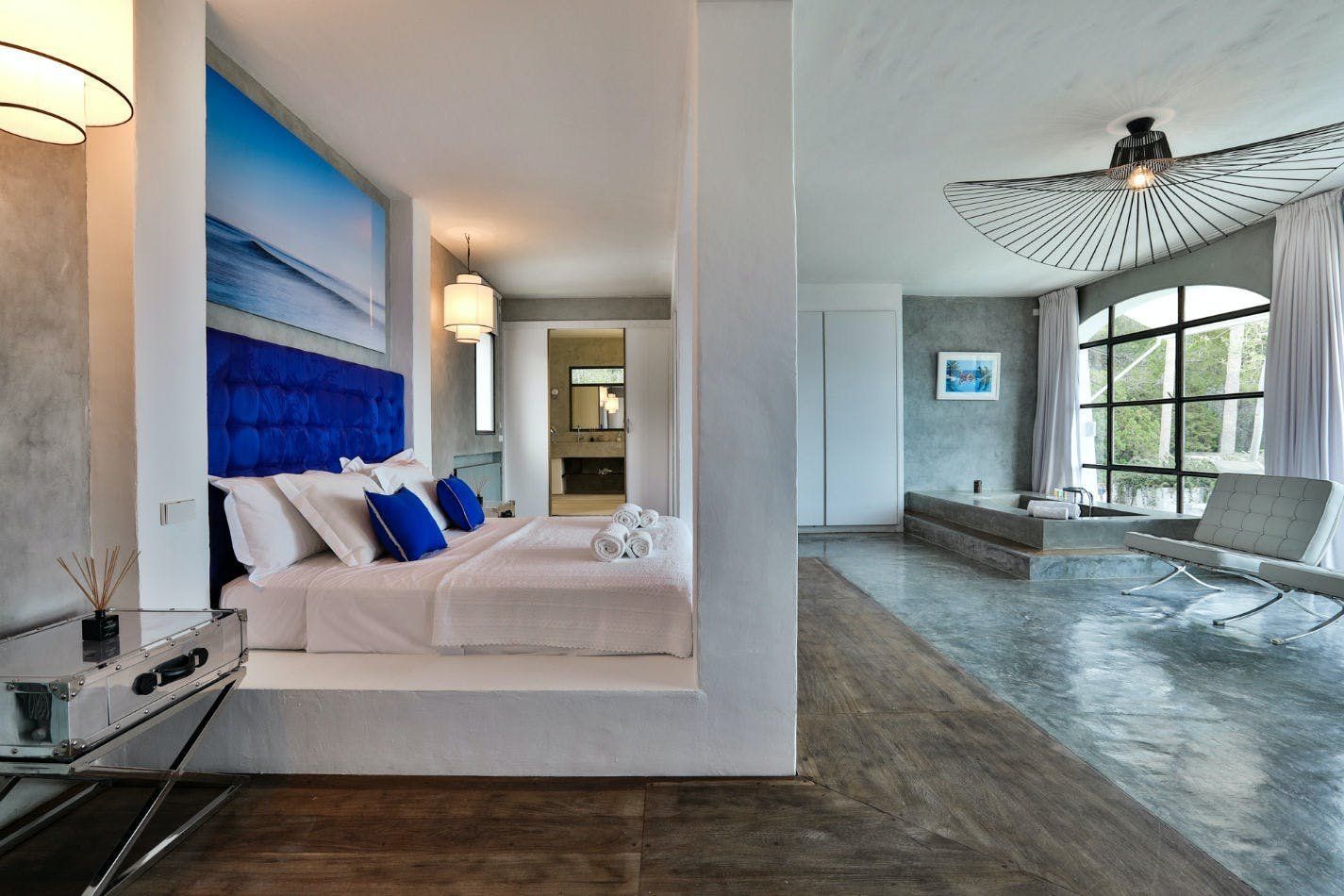 With a grand pool, high arched windows and luxurious sunken baths, this is a home fit for royalty – we defy anyone not to feel like king or queen of the castle as they look over that spectacular sea view. Facing the iconic Salt Flats and just a ten-minute drive from the cobbled streets of the Old Town or the sands of the island’s many beaches, this home is the perfect base to explore Ibiza for the first time or the thousandth. Of course, Ibiza comes alive as the sun goes down, and this villa is no different: the neon lights cast over the enormous pool and gardens will make you feel like you’re in your very own, oh-so-exclusive club. And as a bonus, you get to play DJ. Whether you put on a tune guaranteed to get everyone up from the outdoor bar for a boogie or something more sedate for a night drinking wine and chatting on the terrace, the world is your dancefloor tonight.