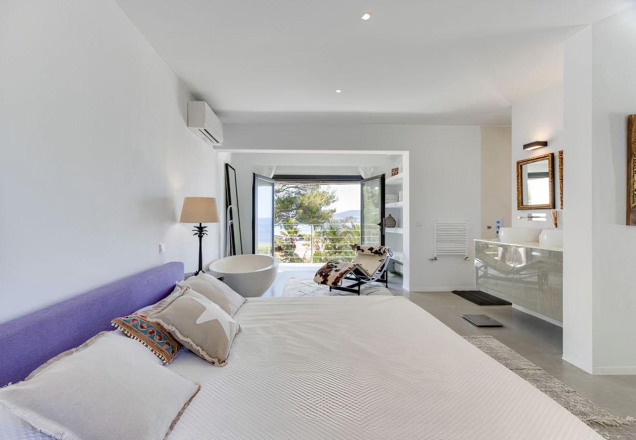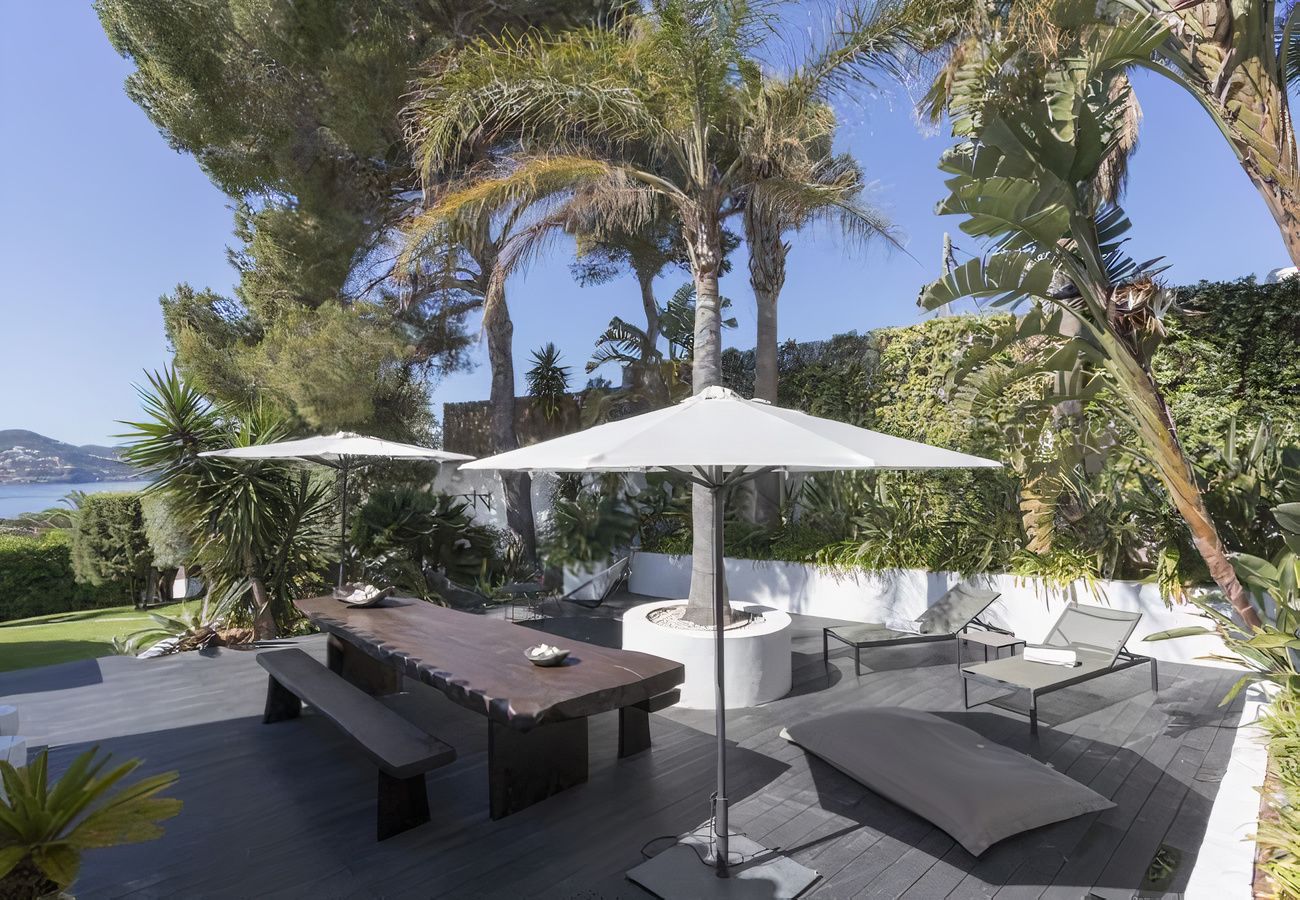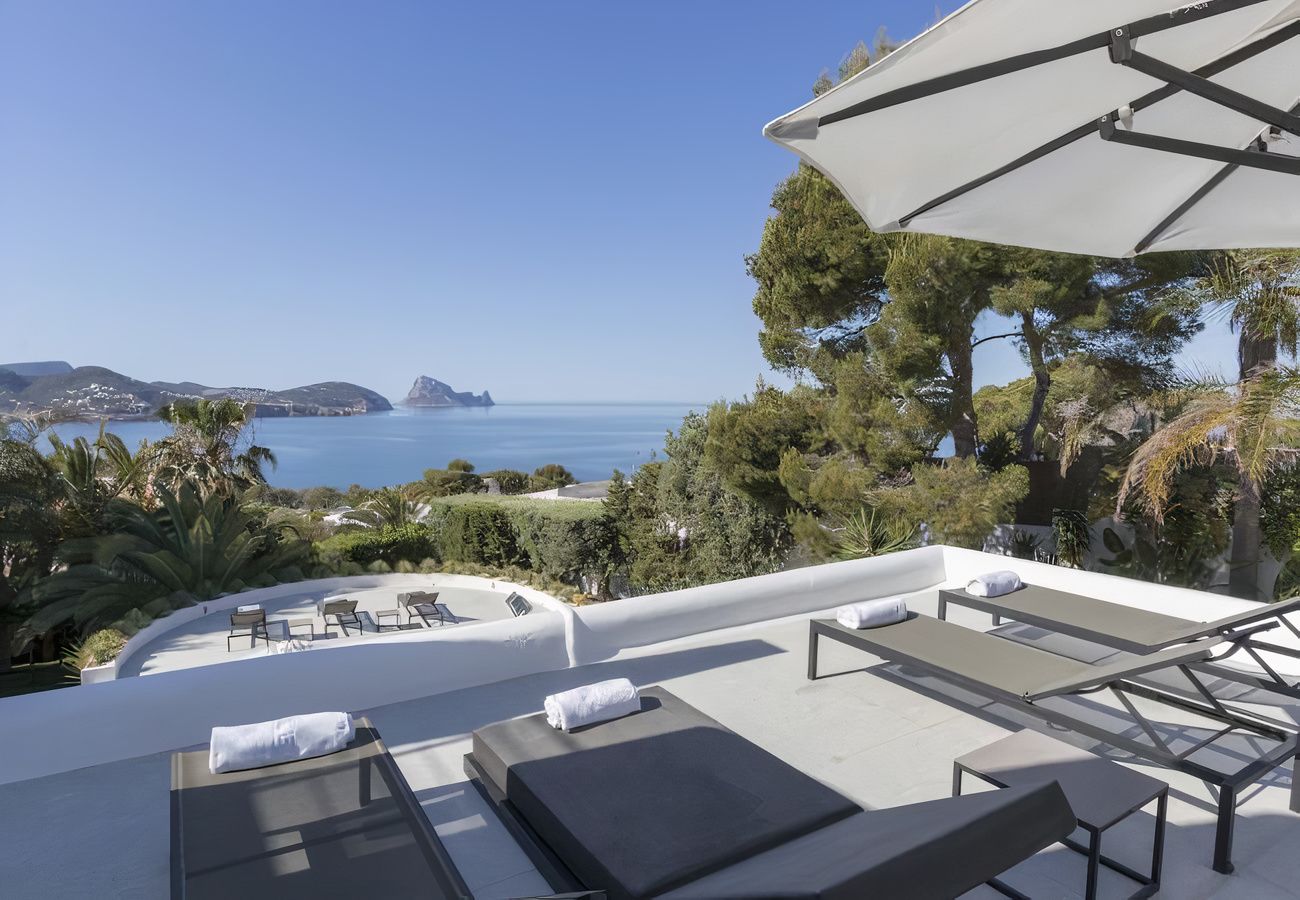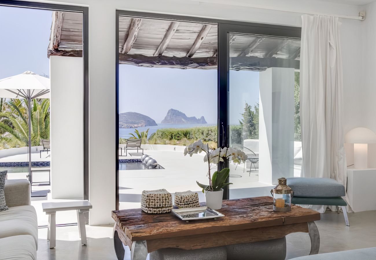 Nestled in a tropical oasis, it’s hard to pick a winner between the indoor and outdoor spaces of this home. With serene, contemporary interiors, there’s plenty of room for up to twelve guests to spread out, and the added bonus of the annexe means that everyone can enjoy a little privacy when they want to. But, step outdoors, and the views of Es Vedrá are quite breathtaking – and they can be enjoyed from a plethora of sun-drenched terraces. When it’s time to cool off, sink into the infinity pool before considering a beach trip. With Cala Conta a mere five-minute drive away, it has to be on the to-do list.