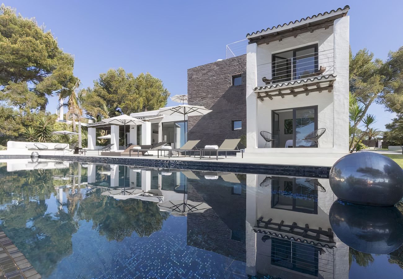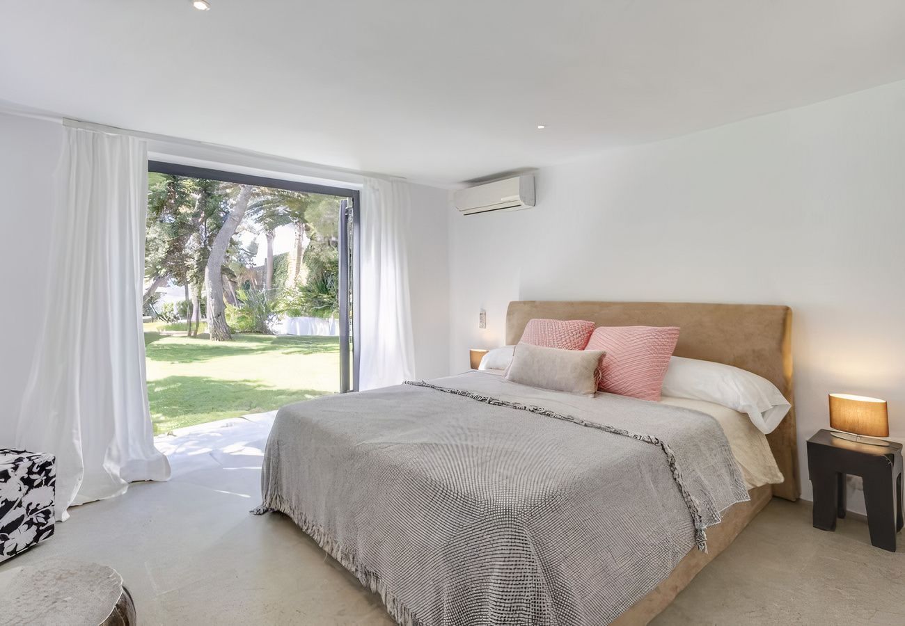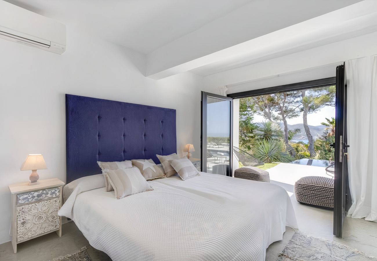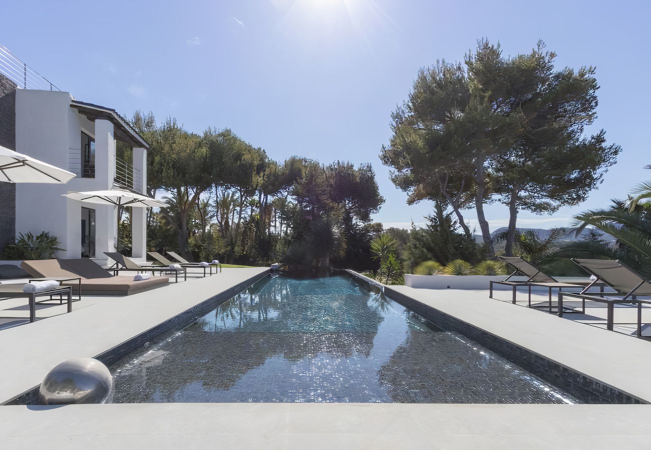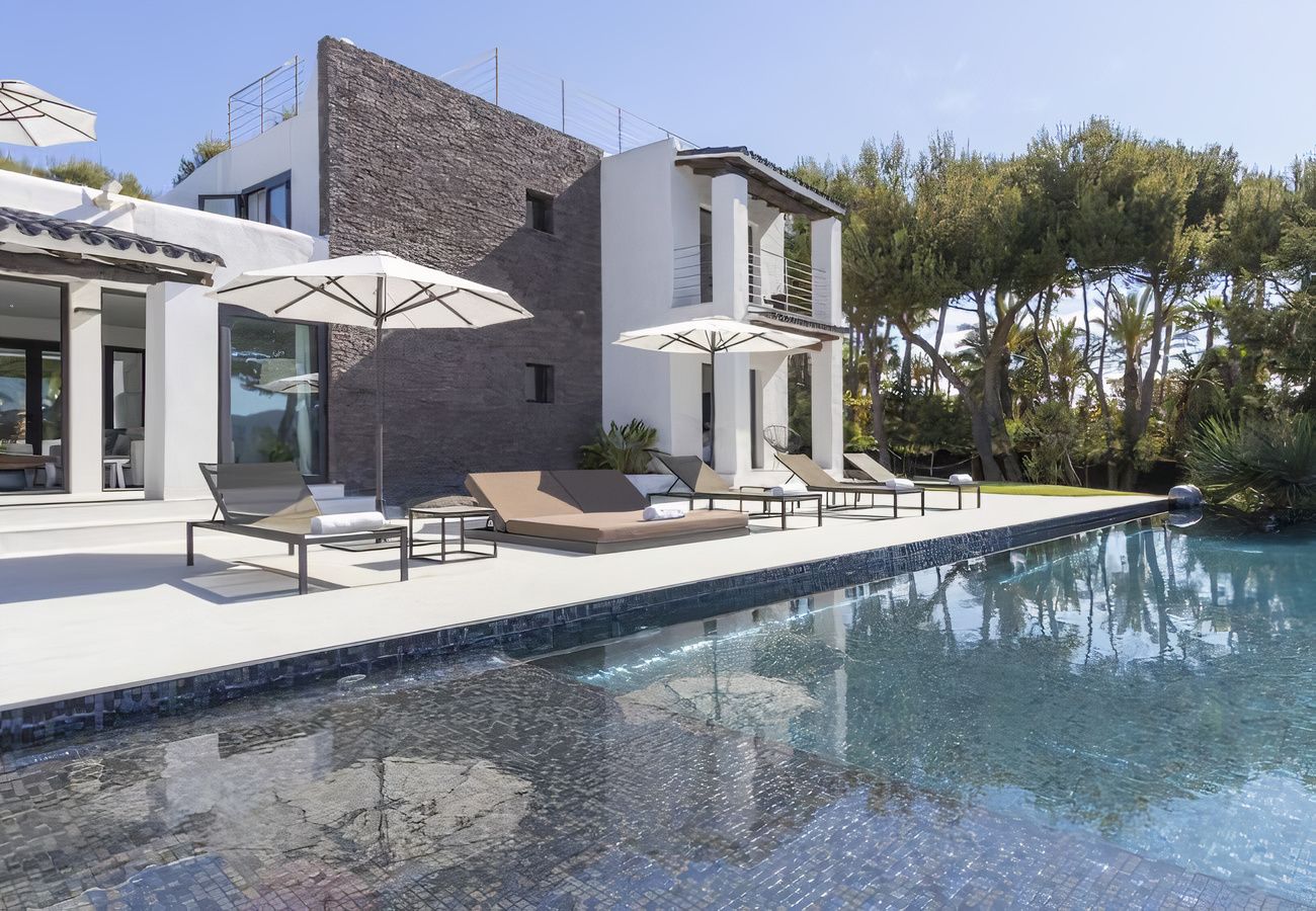 Nestled in a tropical oasis, it’s hard to pick a winner between the indoor and outdoor spaces of this home. With serene, contemporary interiors, there’s plenty of room for up to twelve guests to spread out, and the added bonus of the annexe means that everyone can enjoy a little privacy when they want to. But, step outdoors, and the views of Es Vedrá are quite breathtaking – and they can be enjoyed from a plethora of sun-drenched terraces. When it’s time to cool off, sink into the infinity pool before considering a beach trip. With Cala Conta a mere five-minute drive away, it has to be on the to-do list.