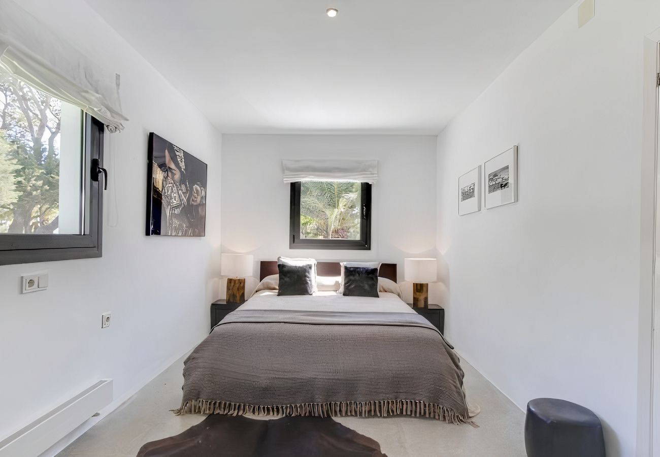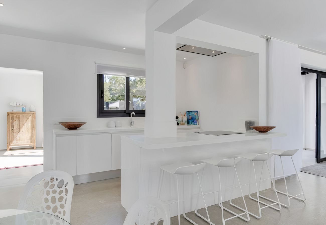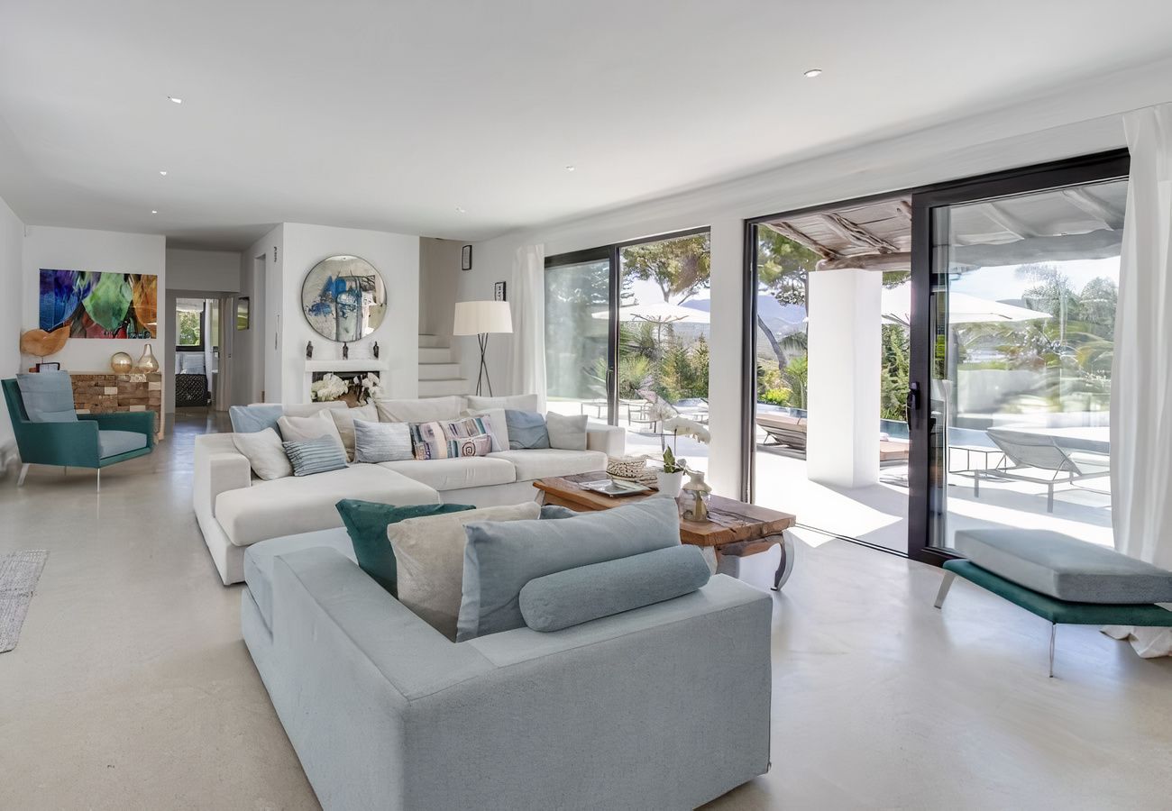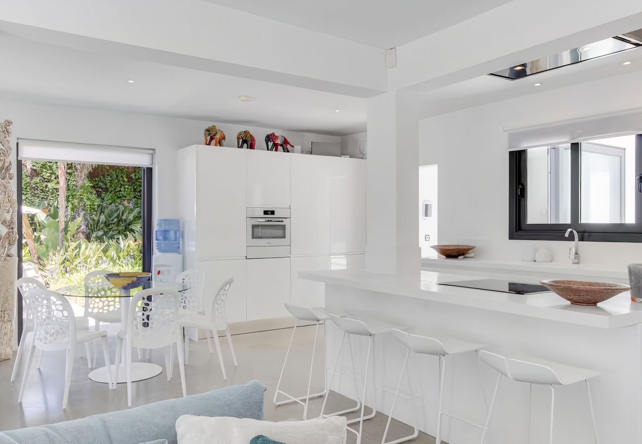 Nestled in a tropical oasis, it’s hard to pick a winner between the indoor and outdoor spaces of this home. With serene, contemporary interiors, there’s plenty of room for up to twelve guests to spread out, and the added bonus of the annexe means that everyone can enjoy a little privacy when they want to. But, step outdoors, and the views of Es Vedrá are quite breathtaking – and they can be enjoyed from a plethora of sun-drenched terraces. When it’s time to cool off, sink into the infinity pool before considering a beach trip. With Cala Conta a mere five-minute drive away, it has to be on the to-do list.