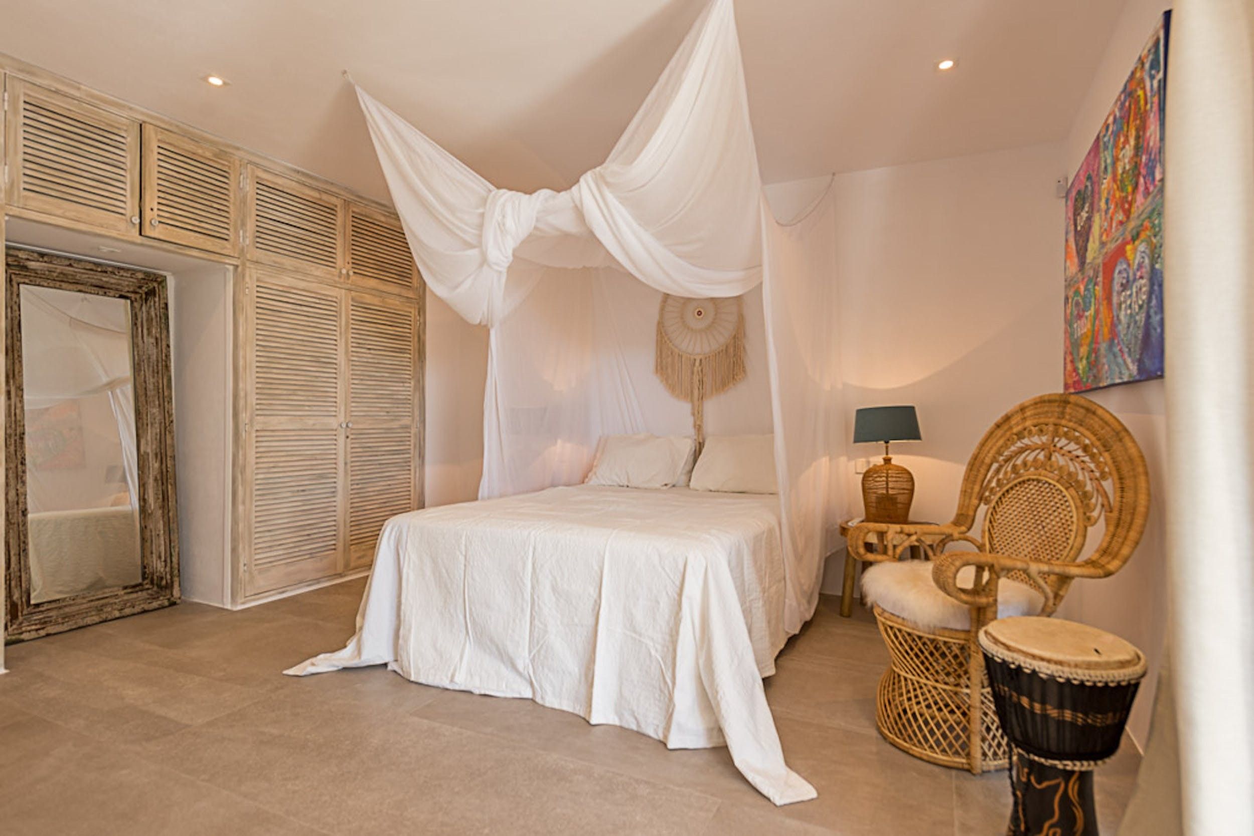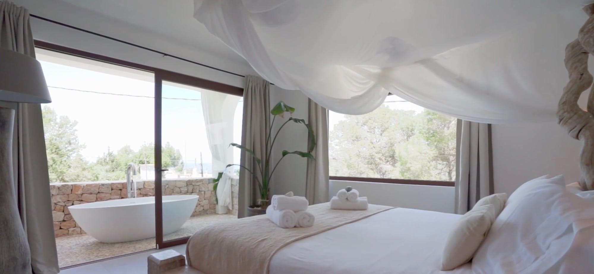 If a private pool, sea views, and a hot tub are on your holiday wish list, then this Ibizan home ticks all the boxes. Lazy days can be spent lounging by the pool, admiring the mountain backdrop from the roof terrace, and firing up the barbecue to dine alfresco. Or you could enjoy a luxurious soak in the outdoor bath tub, accessed from the main bedroom. Location-wise, you’re in the charming village of Sant Josep de sa Talaia, where you’ll find a choice of bars and restaurants, and the beach is just 1.1 miles away.