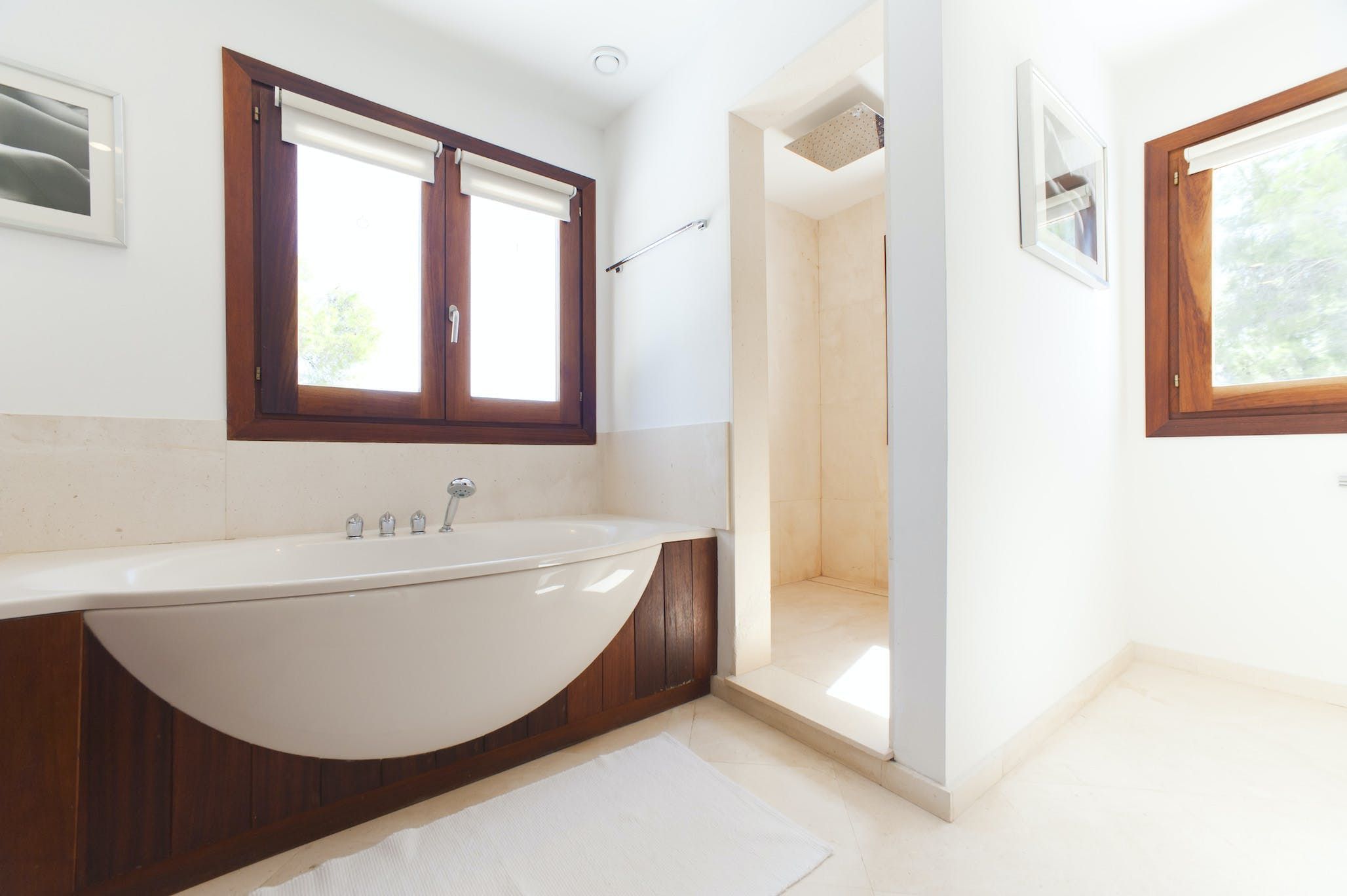 Inside is minimally decorated, with a tangible sense of style that shines through the striking wall art and walnut wood accents. Each of the six bedrooms feels fresh and inviting, equipped with super soft bedding and large windows boasting garden views. Try your hand at making paella in the well-outfitted kitchen, then serve it up on one of the outdoor dining tables – choose between a walled courtyard setting or a sun-soaked spot that looks out over the island. Travelling with kids? They'll no doubt be kept entertained with the trampoline, swing set and ping pong table.