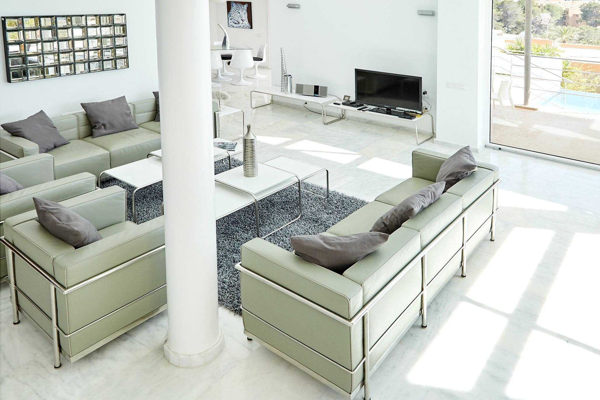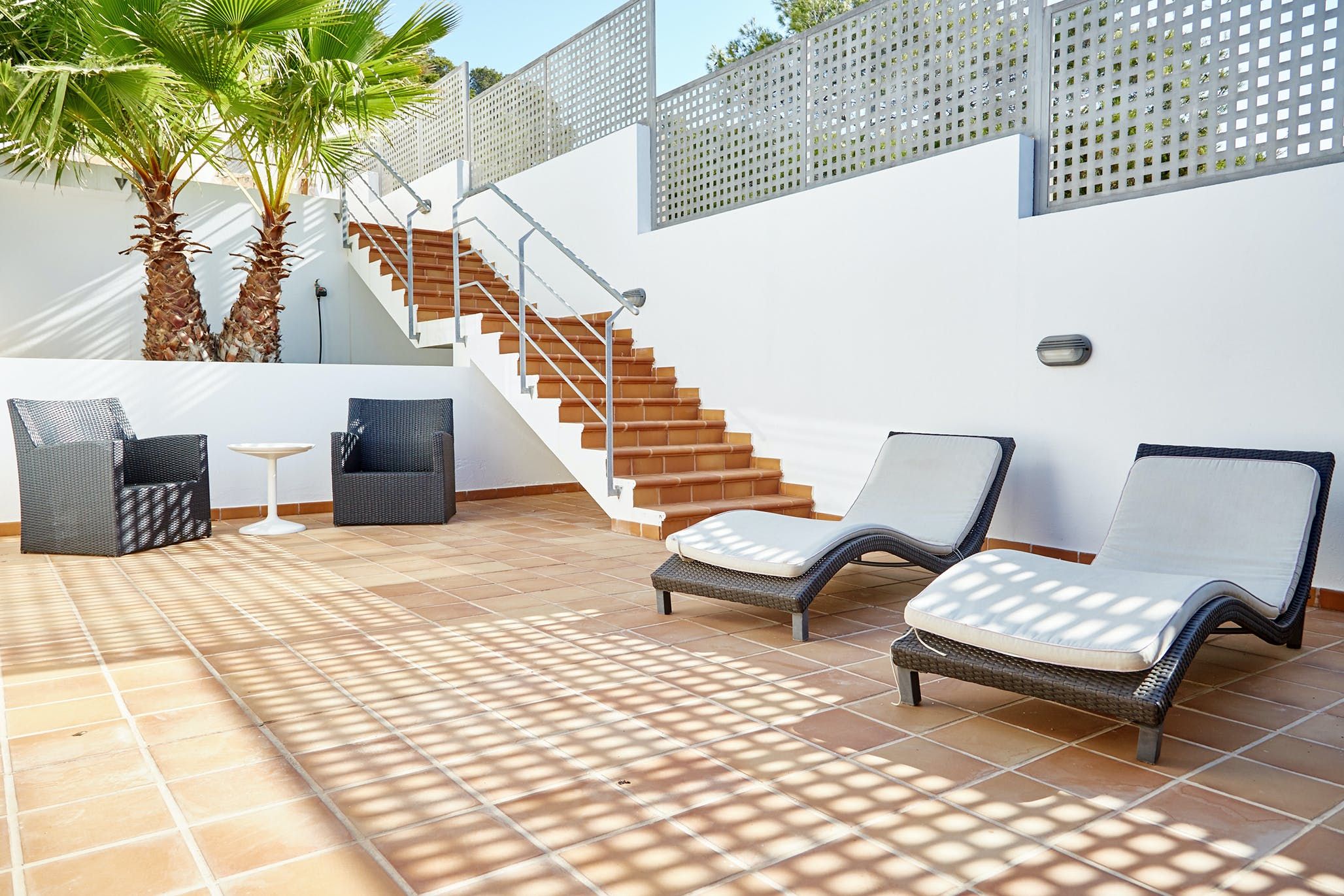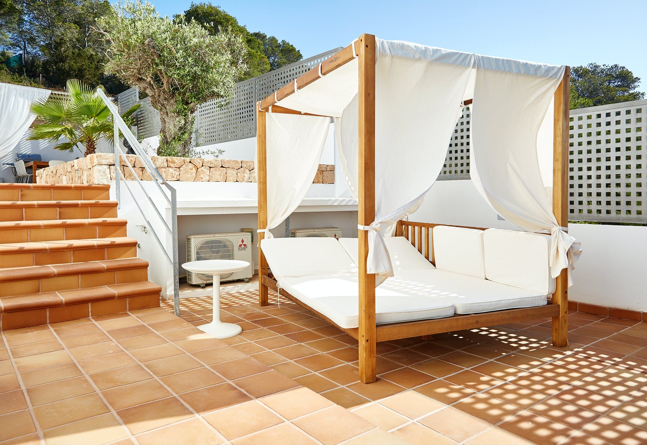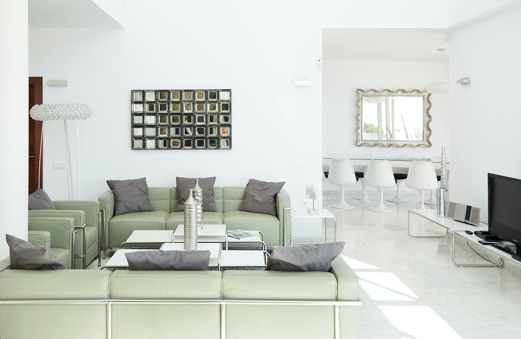 Sleek, modern and brilliant white both inside and out, this home is the quintessential Ibizan villa – just steps away from one of the island's best and most family-friendly beaches. A contemporary take on Art Deco, it's all clean lines, big windows and plentiful outdoor terraces. Luxury is the name of the game here, with a touch of Hollywood glamour in practically every room and plenty of bold design features. We love the open staircase, galleried landing and reinforced glass flooring area – the perfect spot to sit and look out at the sparkling sea.