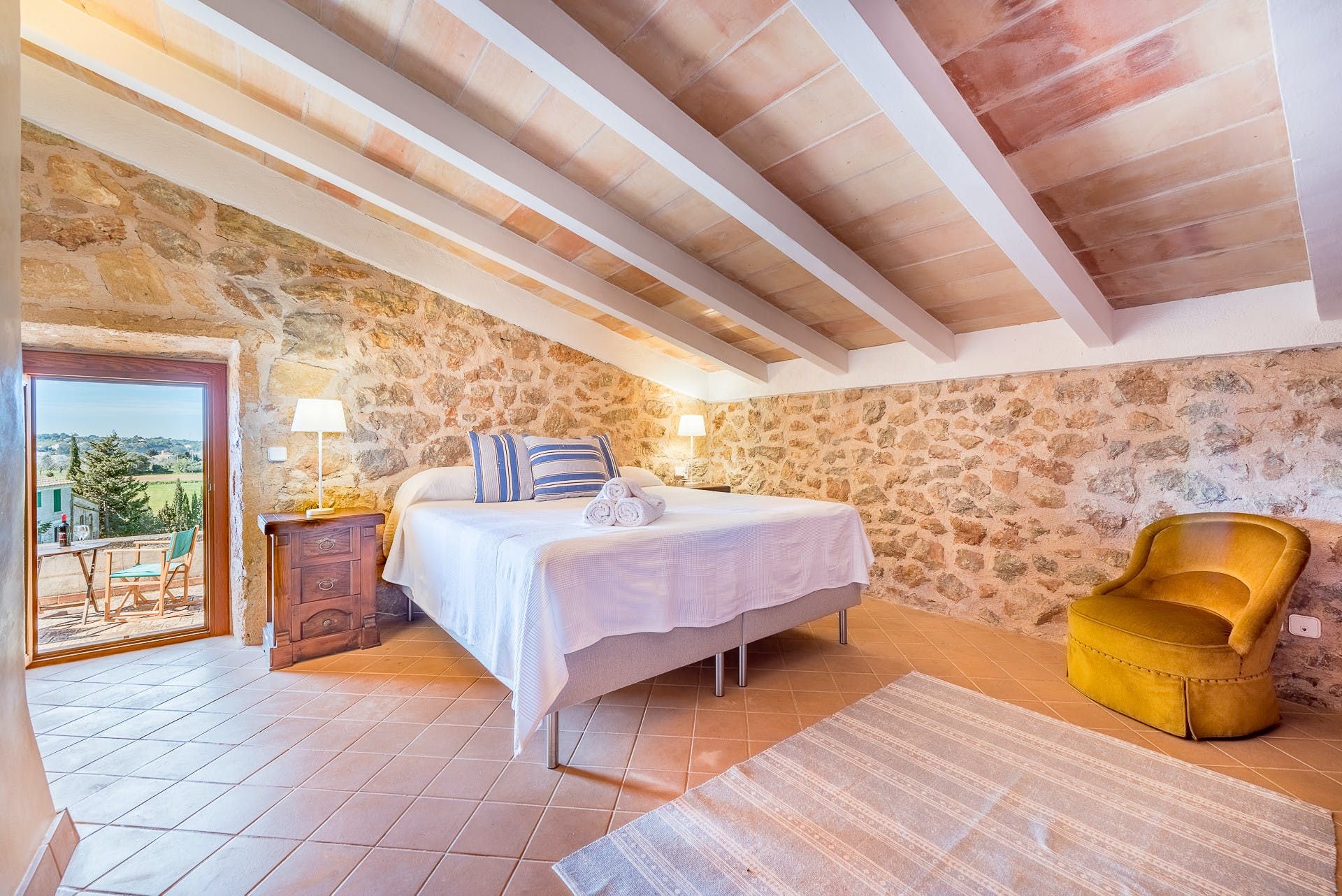 You’ll find this rustic villa on the outskirts of Sant Llorenç in northeast Mallorca. While some areas of the home may feel a little dated to some, the place is equipped with all the mod cons you'll need for a relaxing and comfortable stay. Outside, the swimming pool is a delight in the summer, and the covered terrace is the perfect spot for lazy lunches. Should you fancy a change of surroundings, Millor Beach is a short car ride away.