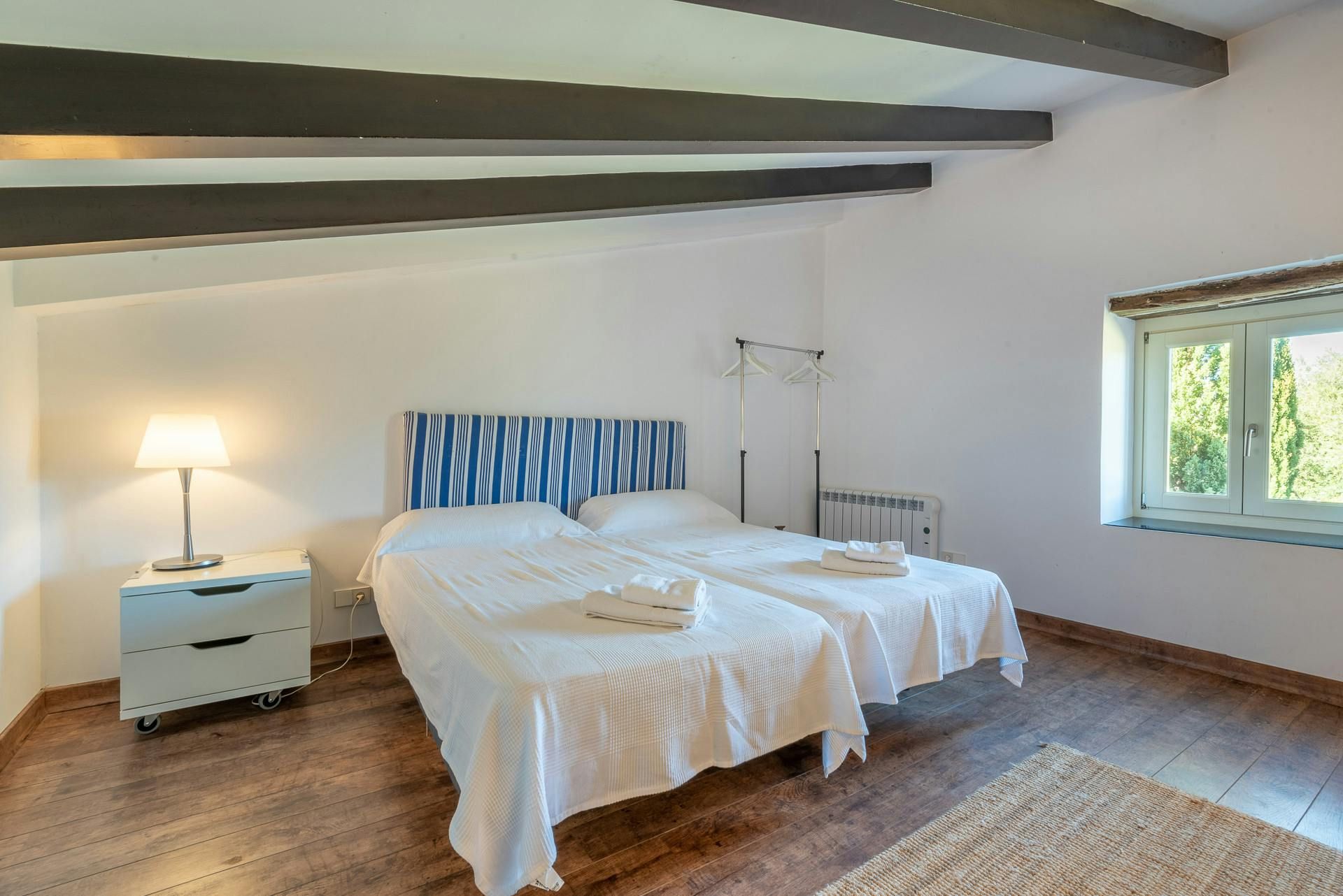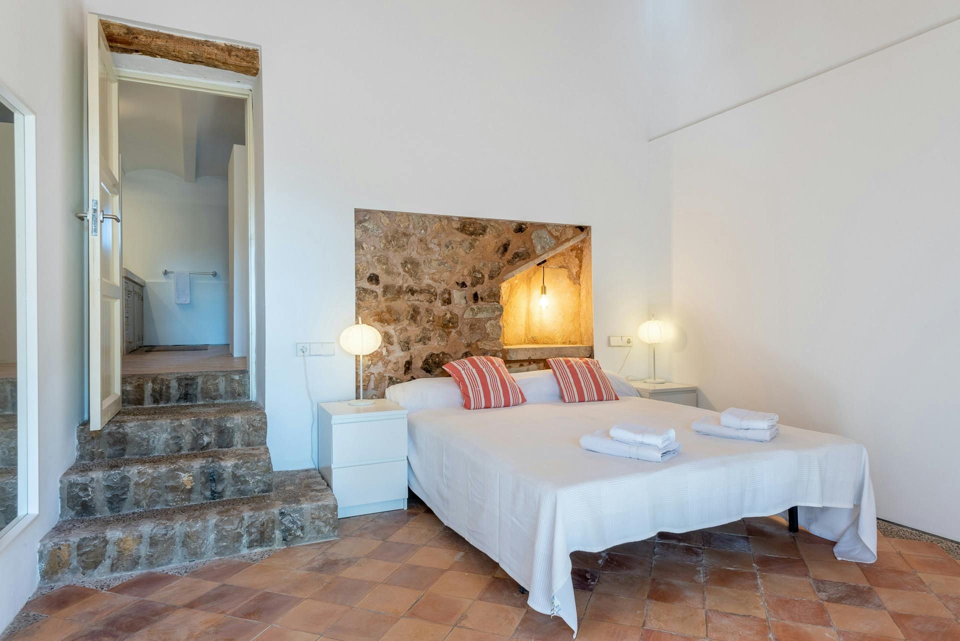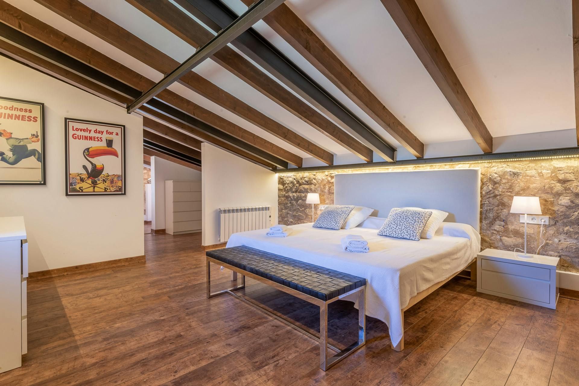 Surrounded by a Mediterranean garden replete with pine trees and other local plants, this home is a traditional Majorcan house with plenty of modern dashes. Inside, the furnishings are a bit mixed – we like the main bedroom, but the living room might be an acquired taste. However, there are plenty of excuses to stay in the sun – the pool's ideal to cool off in, the alfresco dining area is waiting for rustic feasts, and there are several spots to enjoy cocktails with a few companions. The outside spaces are topped off with a great view of the nearby village – just under a mile away, Sant Llorenç is a great spot for grabbing an authentic bite to eat.