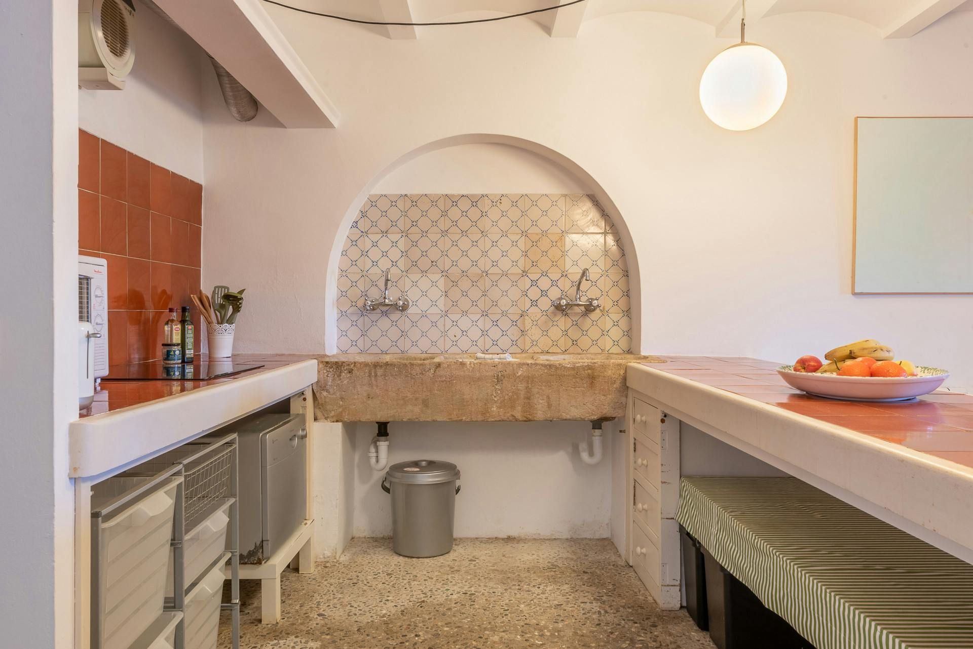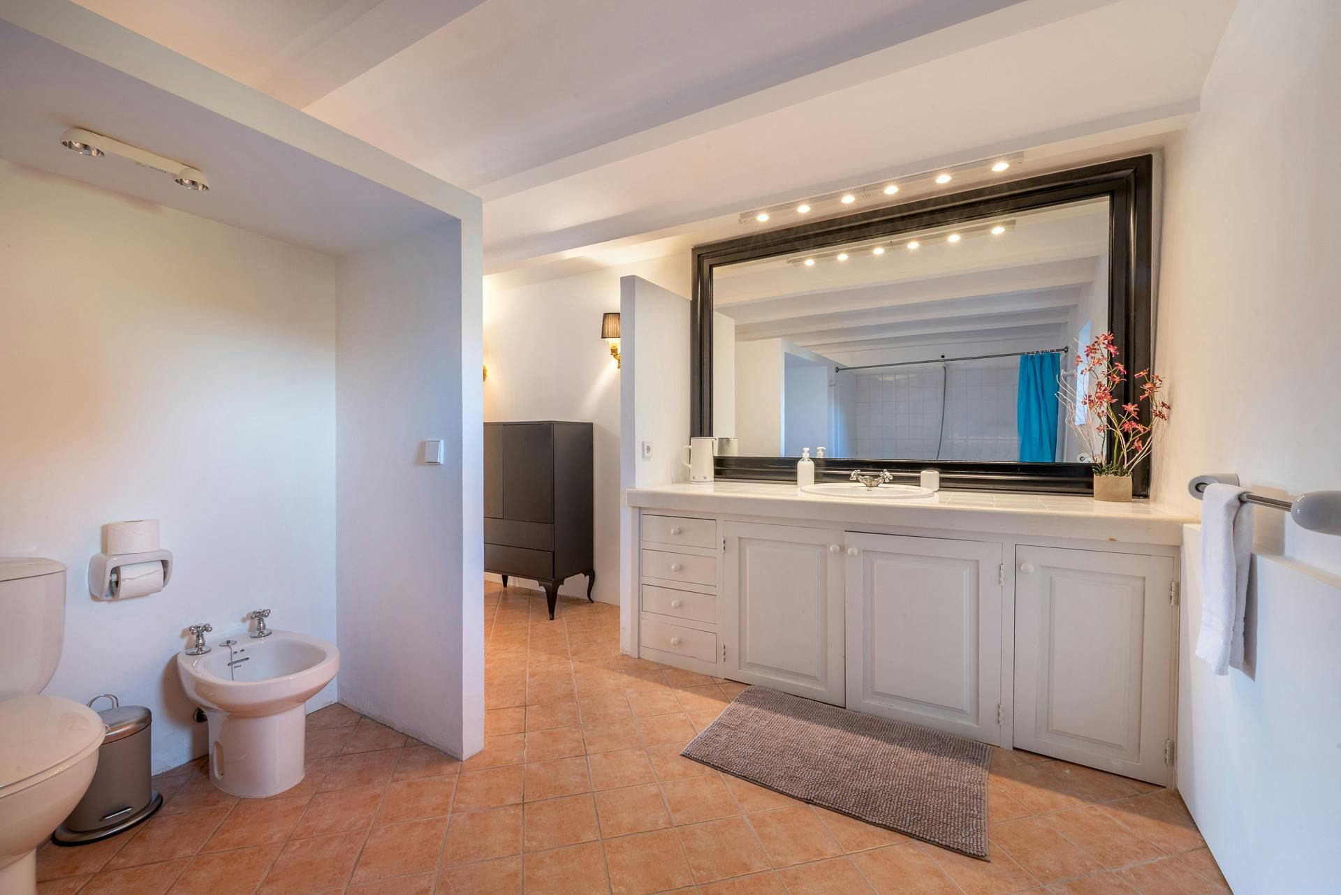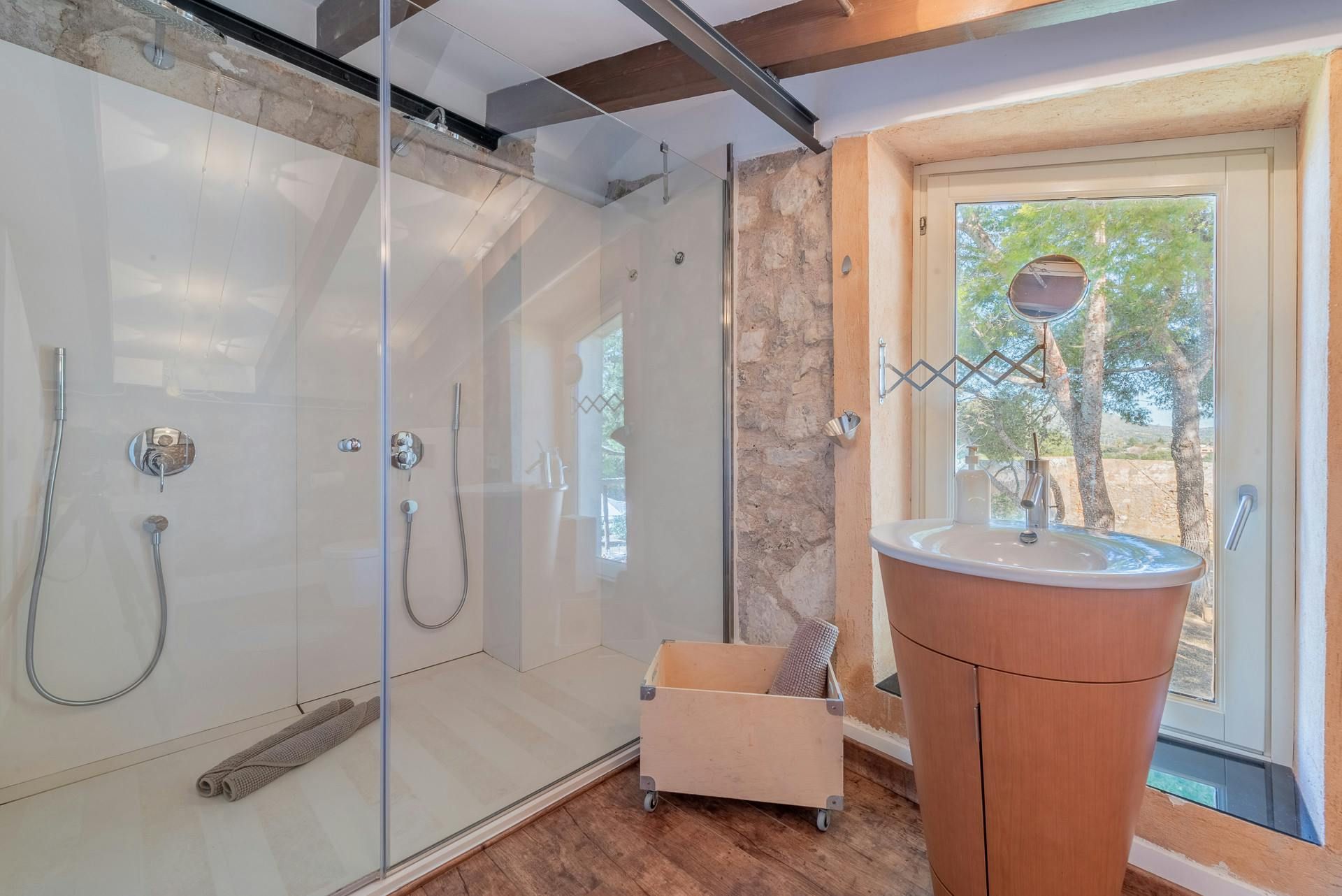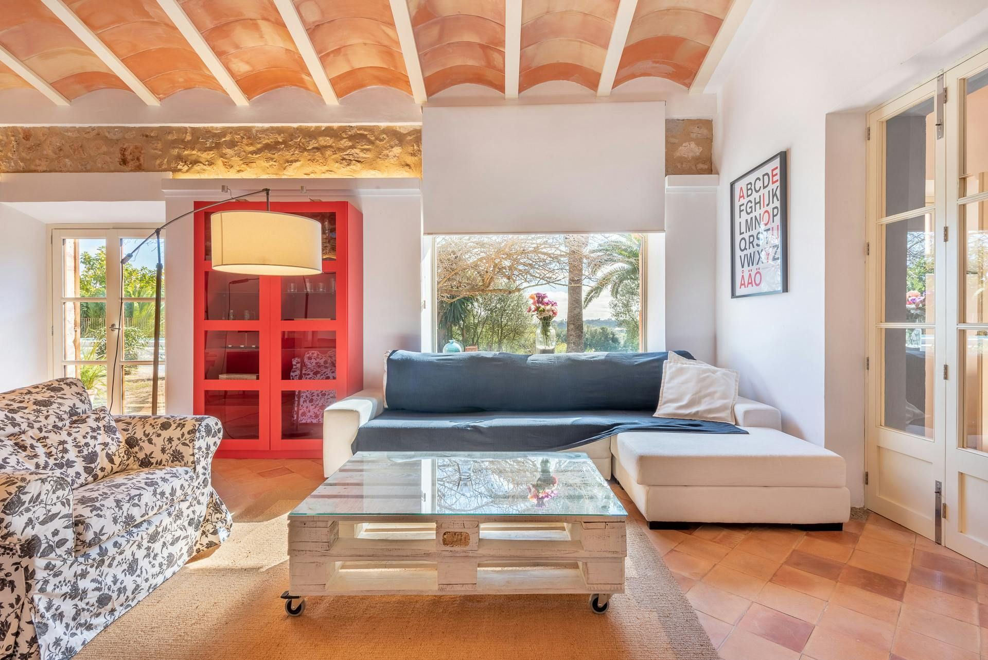 Surrounded by a Mediterranean garden replete with pine trees and other local plants, this home is a traditional Majorcan house with plenty of modern dashes. Inside, the furnishings are a bit mixed – we like the main bedroom, but the living room might be an acquired taste. However, there are plenty of excuses to stay in the sun – the pool's ideal to cool off in, the alfresco dining area is waiting for rustic feasts, and there are several spots to enjoy cocktails with a few companions. The outside spaces are topped off with a great view of the nearby village – just under a mile away, Sant Llorenç is a great spot for grabbing an authentic bite to eat.