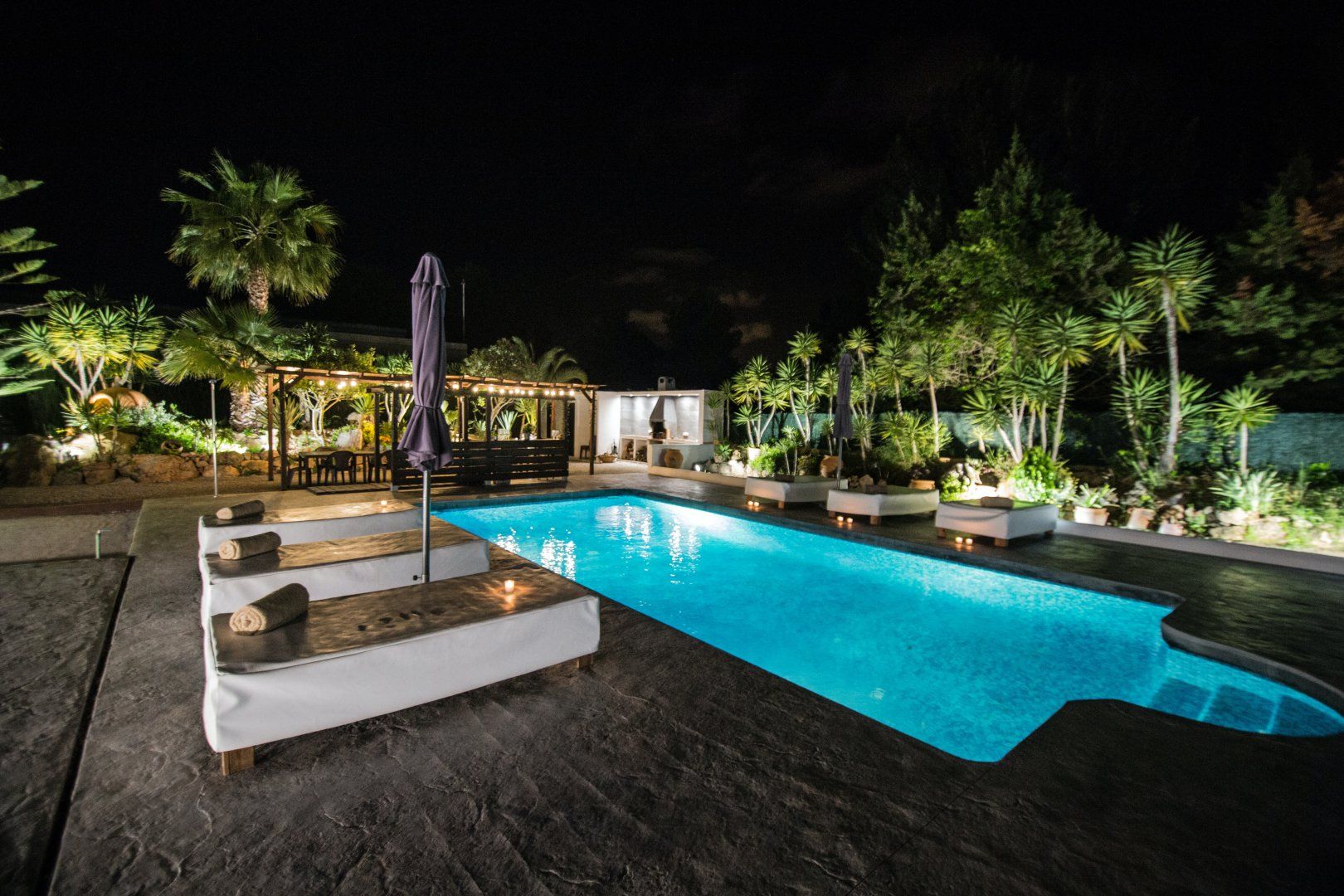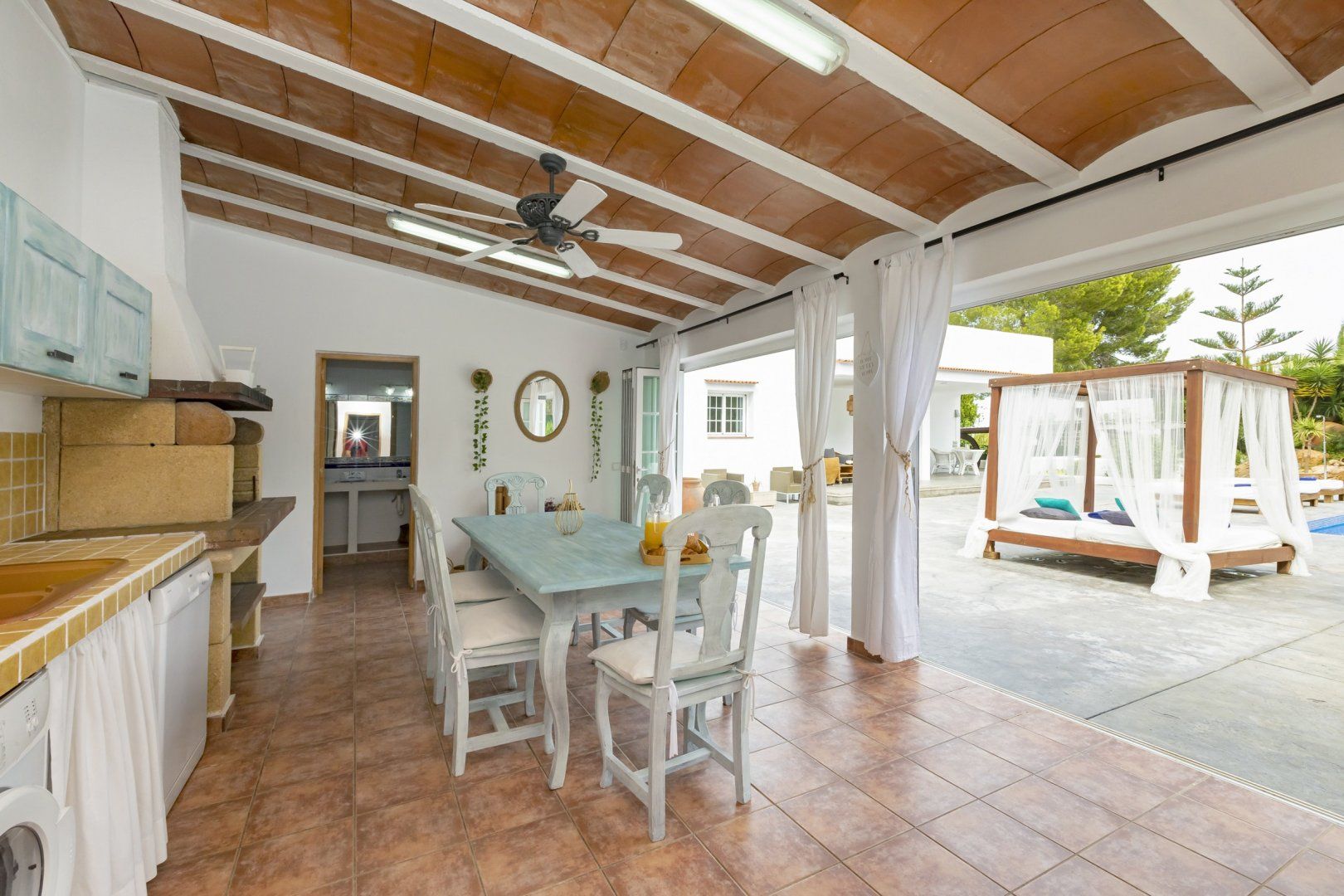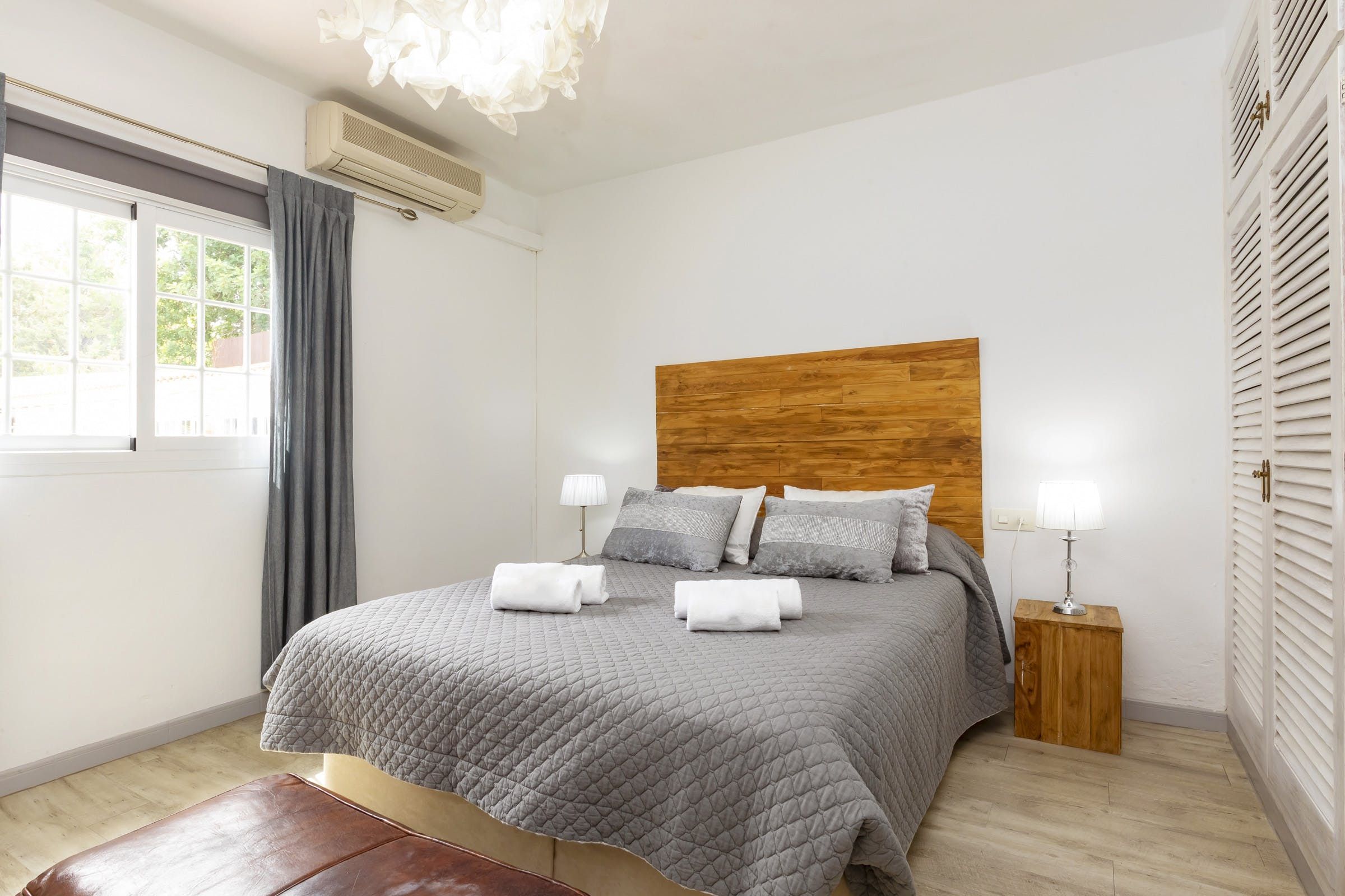 *Four of the bedrooms are in the main house – the fifth is in the annexe, which has an outdoor kitchen and a separate bathroom *Some of the double rooms here are made up of two single beds pushed together *Your host provides a Bluetooth speaker in line with Ibiza's regulations – any additional sound equipment, such as DJ speakers, isn't permitted *There isn't a desk here, but the dining table doubles as a laptop-friendly workspace *As two nightclubs are right down the road, you might hear some noise from time to time *We suggest renting a car here – there's private parking on-site *Parties and other events are strictly forbidden