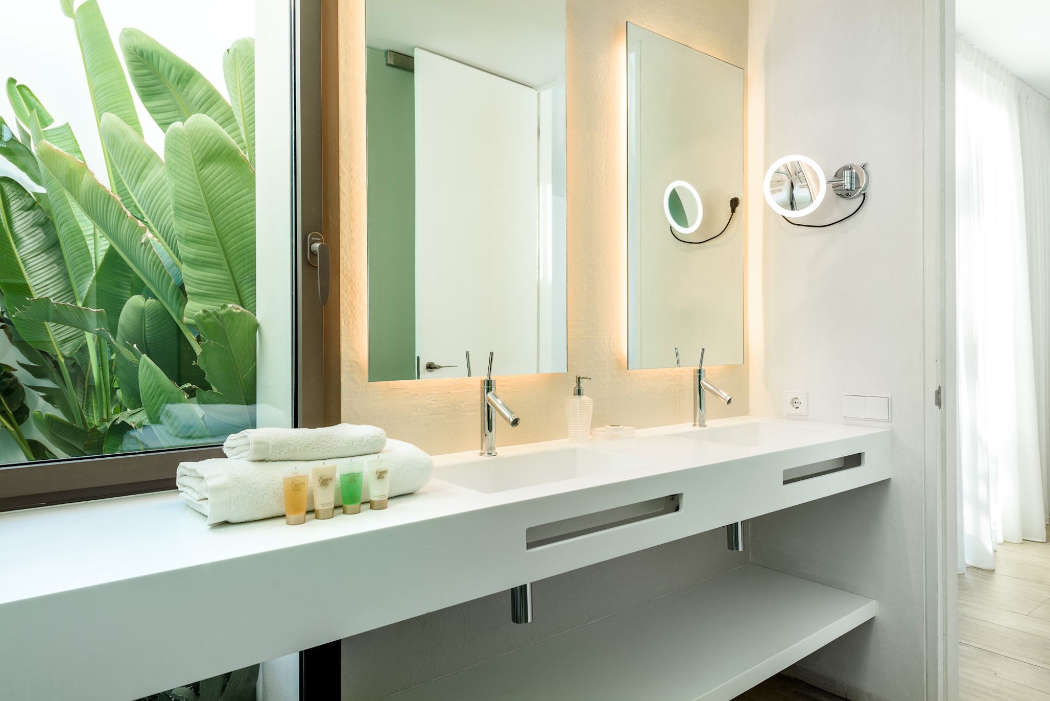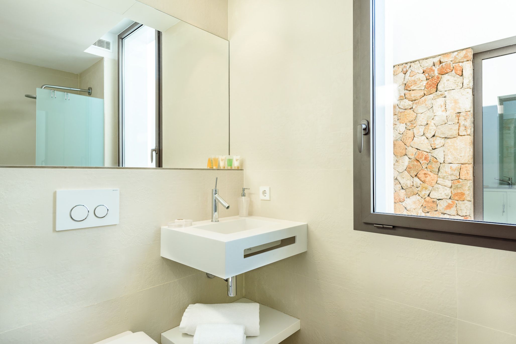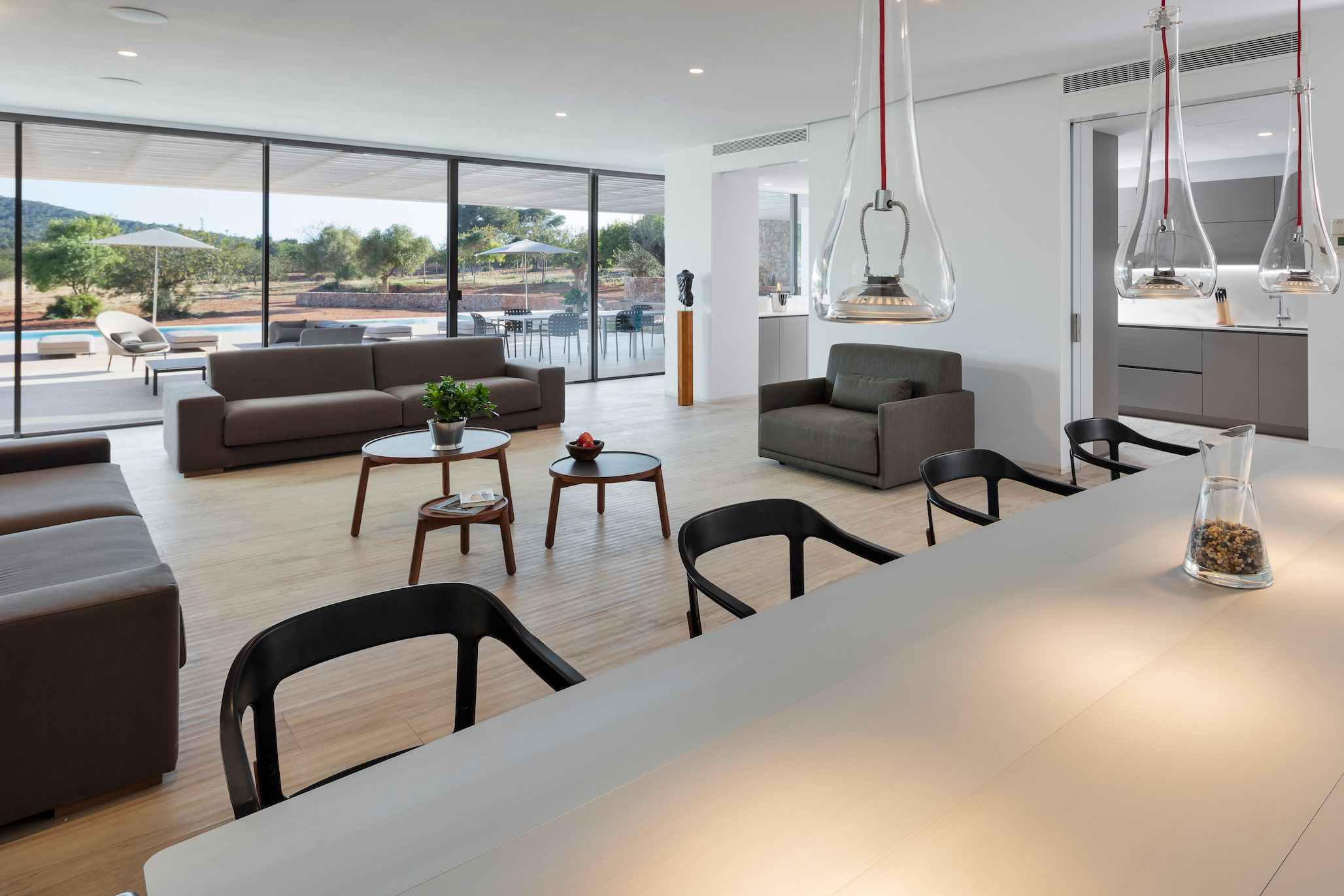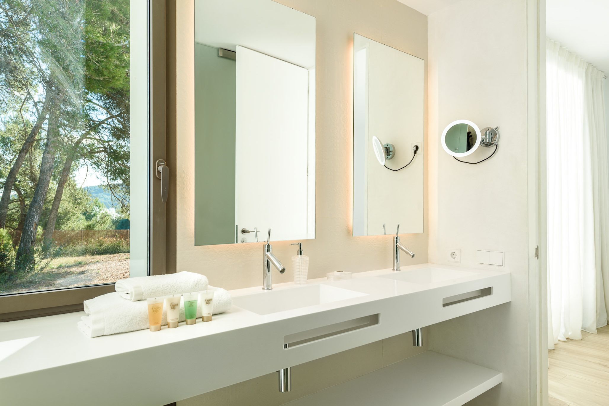 This contemporary villa is bathed in sunlight. While the decor indoors is sleek and spacious (if a bit simple), the outside area really shines. The sprawling terrace is ideal for sunbathing, swimming, and sharing alfresco meals. After a dip in the private pool, stretch out on one of the lounge chairs and admire the tree-studded mountain views. For day trips, it's an easy drive to Cala Llonga and Cala Blanca beach, and about fifteen minutes by car from lively Ibiza Town.
