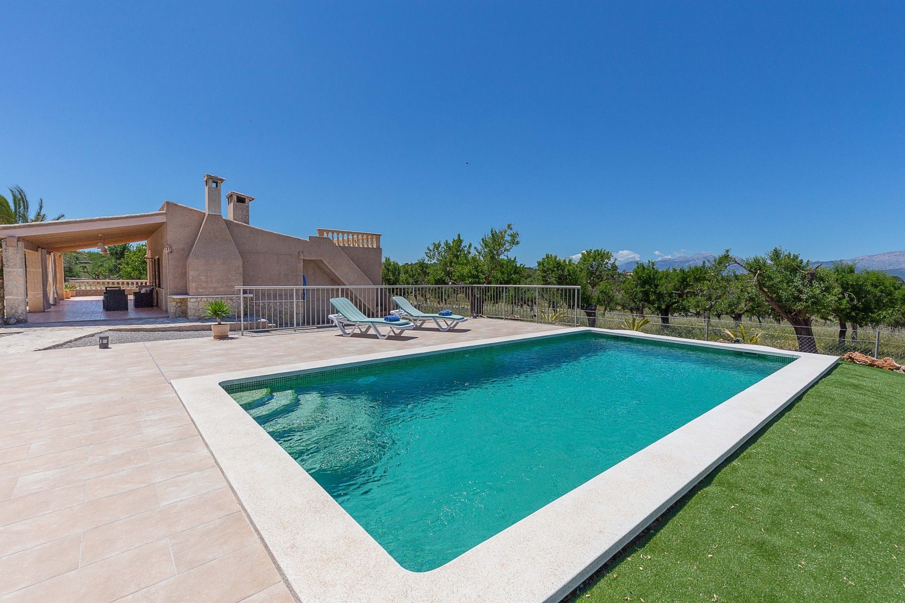 Upstairs, there’s an impressive roof terrace where you can savour the mesmerising views across the mountains, while the garden and swimming pool welcome you to enjoy the tranquillity of this secluded setting.