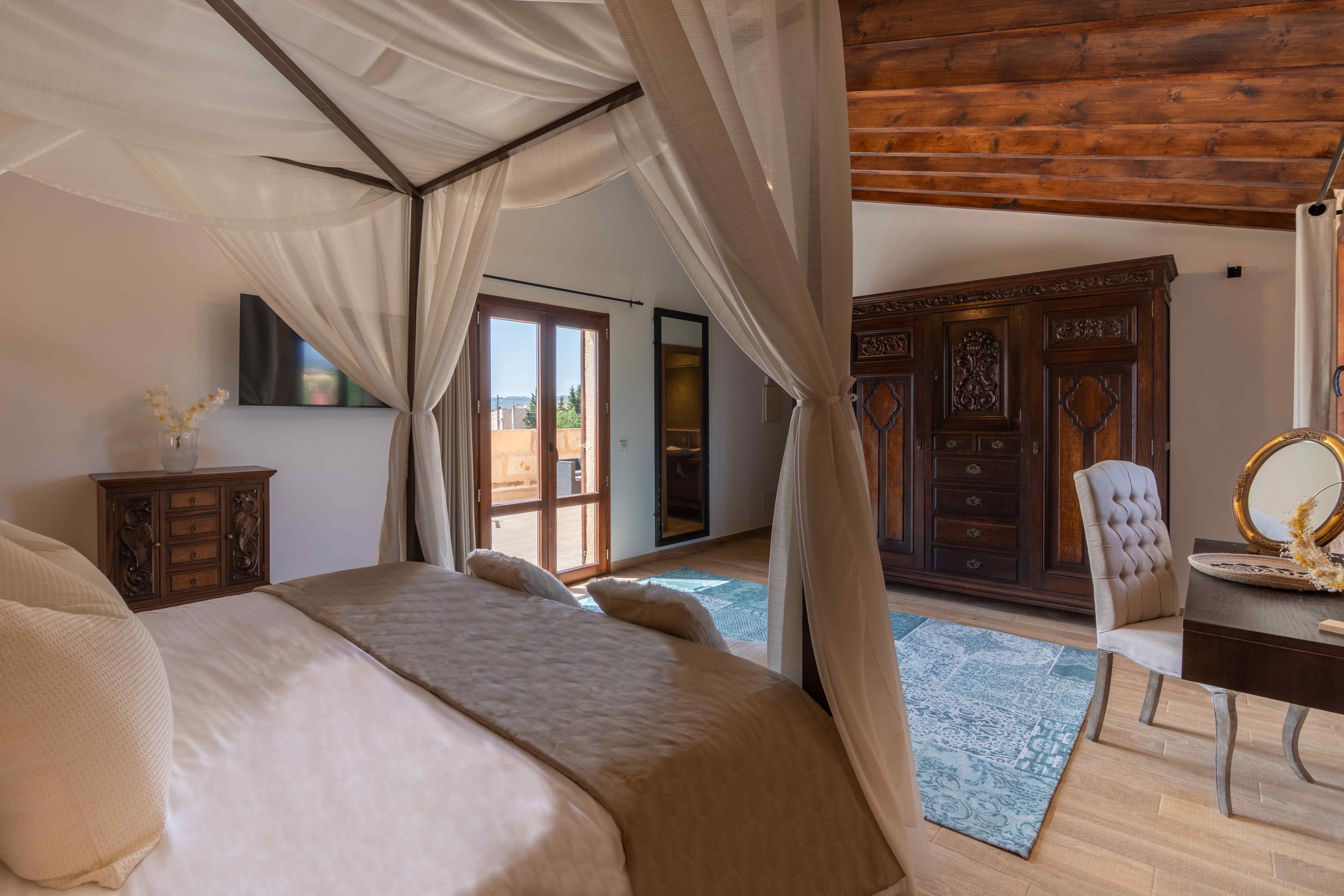 Surrounded by olive trees with beautiful views across the mountains, this 19th-century home makes the perfect setting for an idyllic island escape. Outside, leisurely days can be spent lounging by the private pool. There is also an outdoor kitchen, a vegetable garden and a neighbouring organic farm with fresh seasonal produce. Inside, there are three floors, several living rooms, games and a grand piano. You’ll also find each of the bedrooms comes with a en-suite bathroom – adding a wonderful sense of privacy. From here, you can stroll into the centre of Santa Maria in just ten-minutes, while Palma is just a twenty-minute drive away.