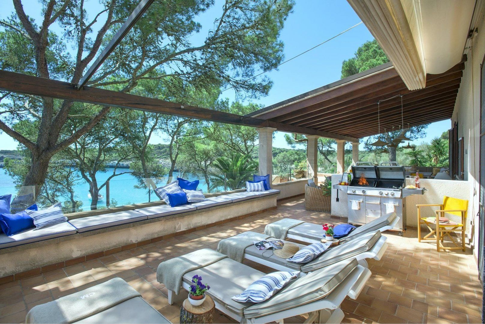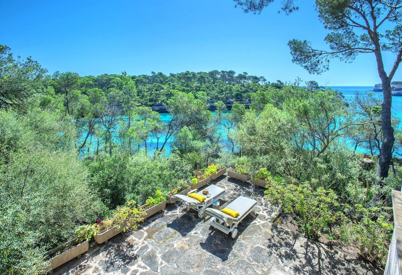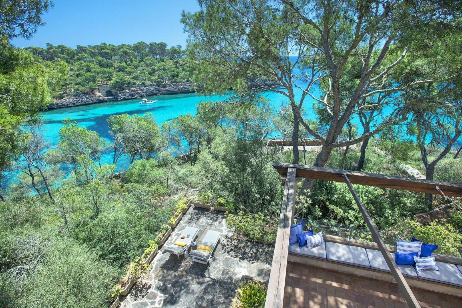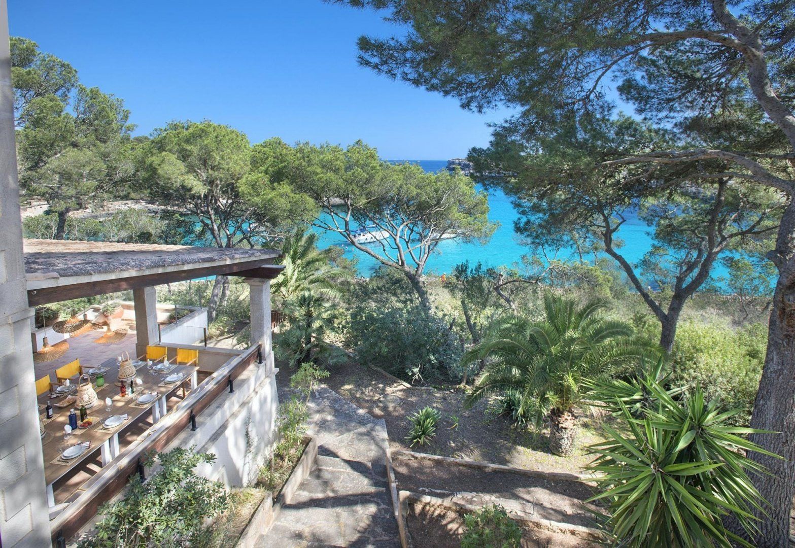 Sitting up in an elevated spot and providing direct access to the breathtaking beach of Cala Mondragó, this home makes a happy little haven for holidays spent soaking up the Spanish sunshine. You can gaze out at the vibrant turquoise ocean from many spots on the sun terrace, with loungers and deck chairs for you to relax in, all surrounded by leafy trees and swaying palms that make it feel secluded. Inside, the home is modern and trendy, with Scandi-style furniture that gives it a calming feel. The home has some great spaces for socialising, with lots of room for each guest to stretch out and enjoy.