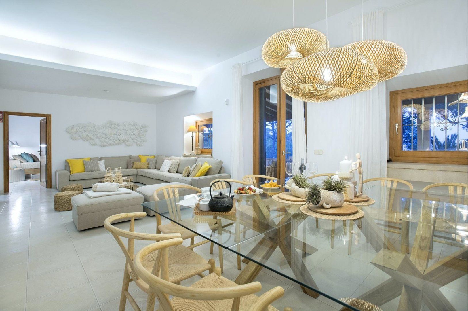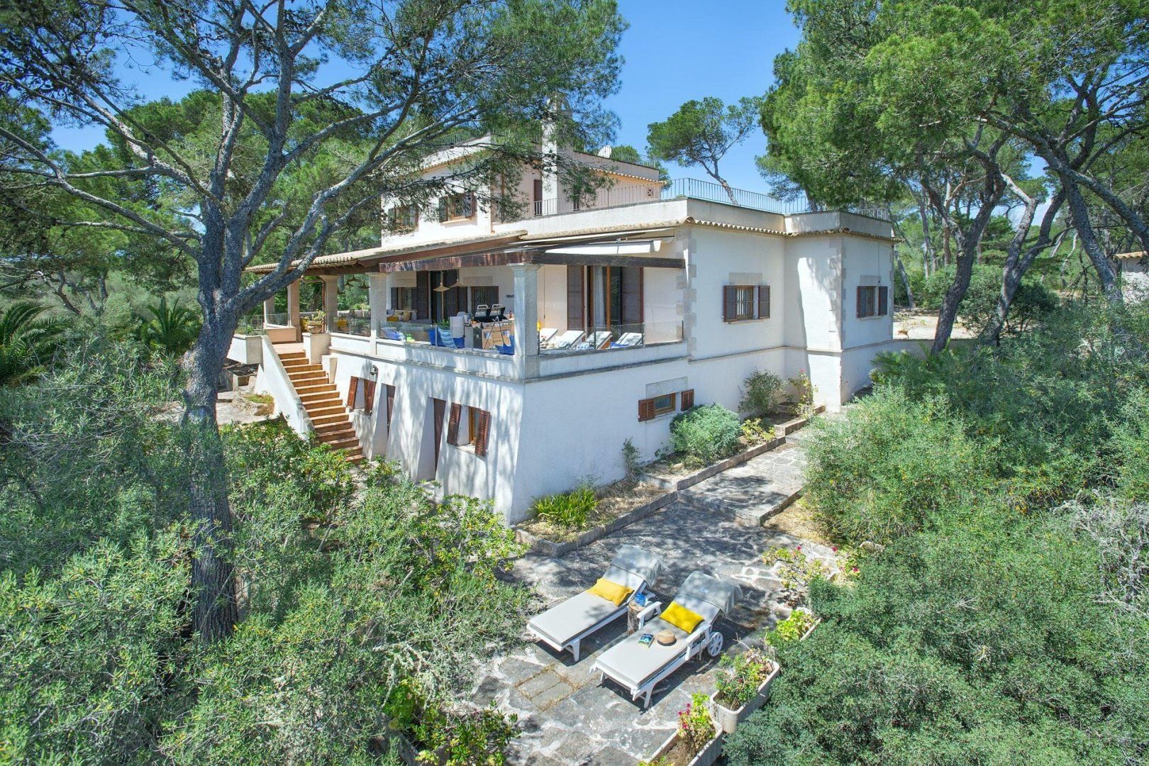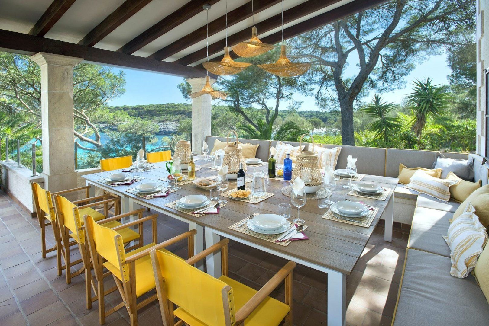 Sitting up in an elevated spot and providing direct access to the breathtaking beach of Cala Mondragó, this home makes a happy little haven for holidays spent soaking up the Spanish sunshine. You can gaze out at the vibrant turquoise ocean from many spots on the sun terrace, with loungers and deck chairs for you to relax in, all surrounded by leafy trees and swaying palms that make it feel secluded. Inside, the home is modern and trendy, with Scandi-style furniture that gives it a calming feel. The home has some great spaces for socialising, with lots of room for each guest to stretch out and enjoy.
