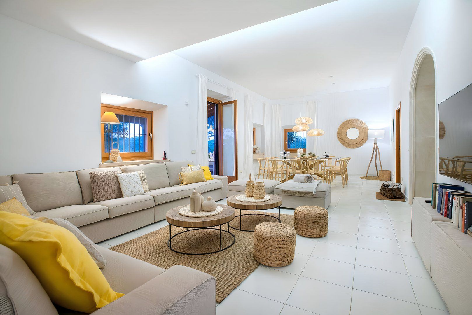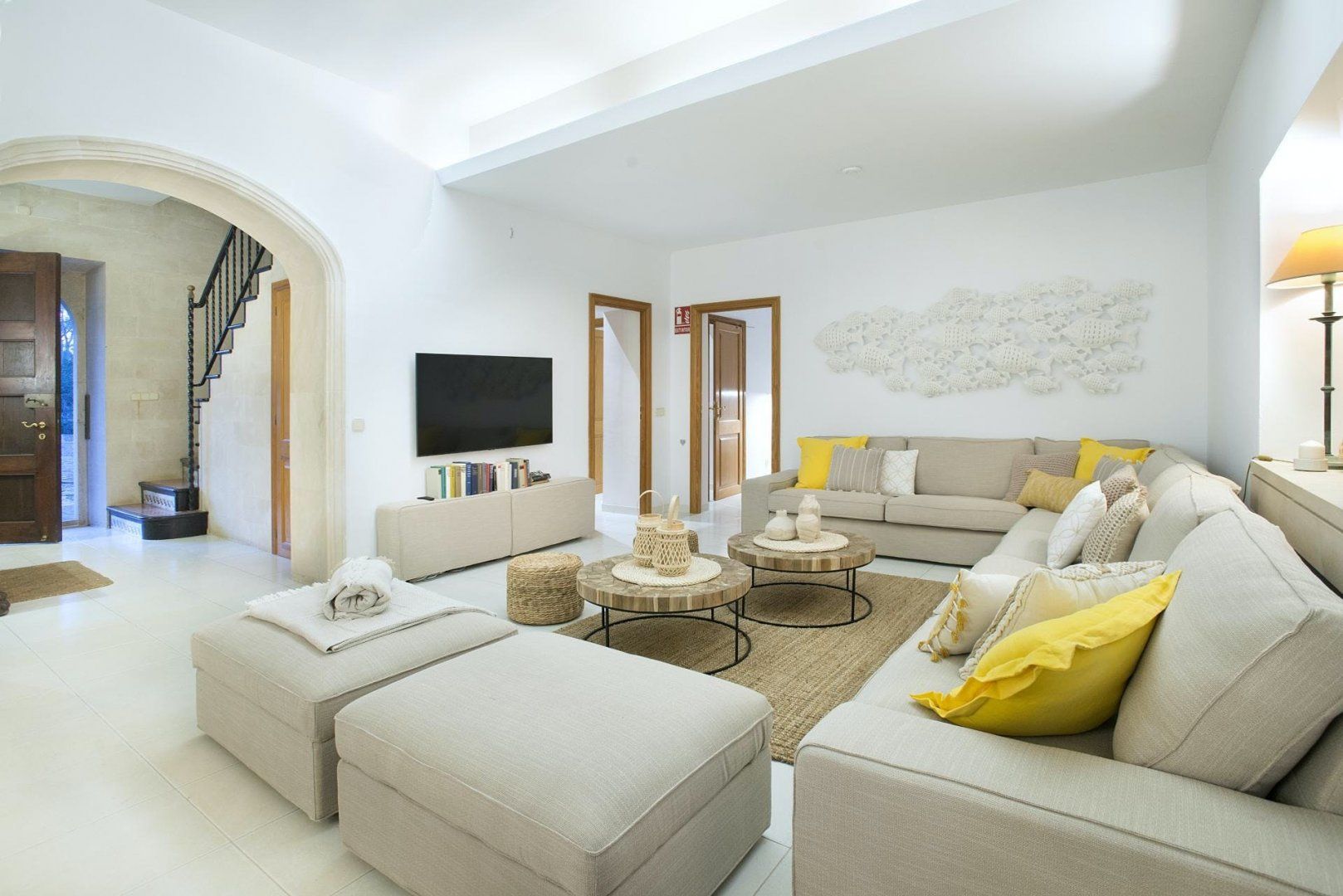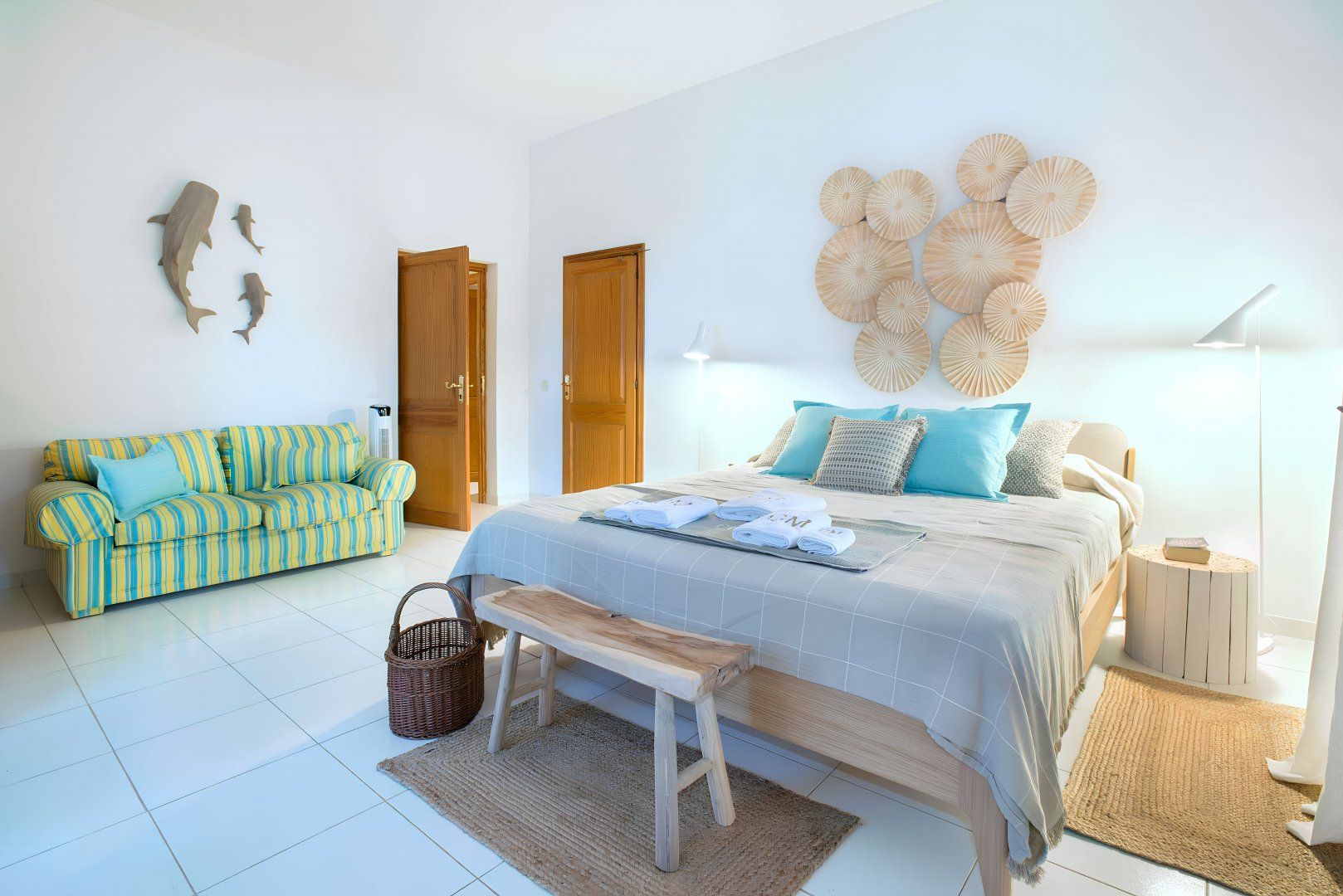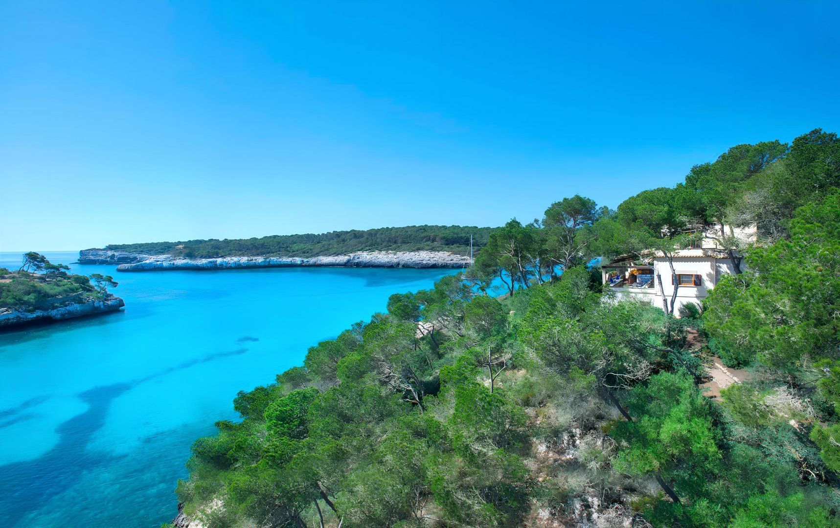 Sitting up in an elevated spot and providing direct access to the breathtaking beach of Cala Mondragó, this home makes a happy little haven for holidays spent soaking up the Spanish sunshine. You can gaze out at the vibrant turquoise ocean from many spots on the sun terrace, with loungers and deck chairs for you to relax in, all surrounded by leafy trees and swaying palms that make it feel secluded. Inside, the home is modern and trendy, with Scandi-style furniture that gives it a calming feel. The home has some great spaces for socialising, with lots of room for each guest to stretch out and enjoy.
