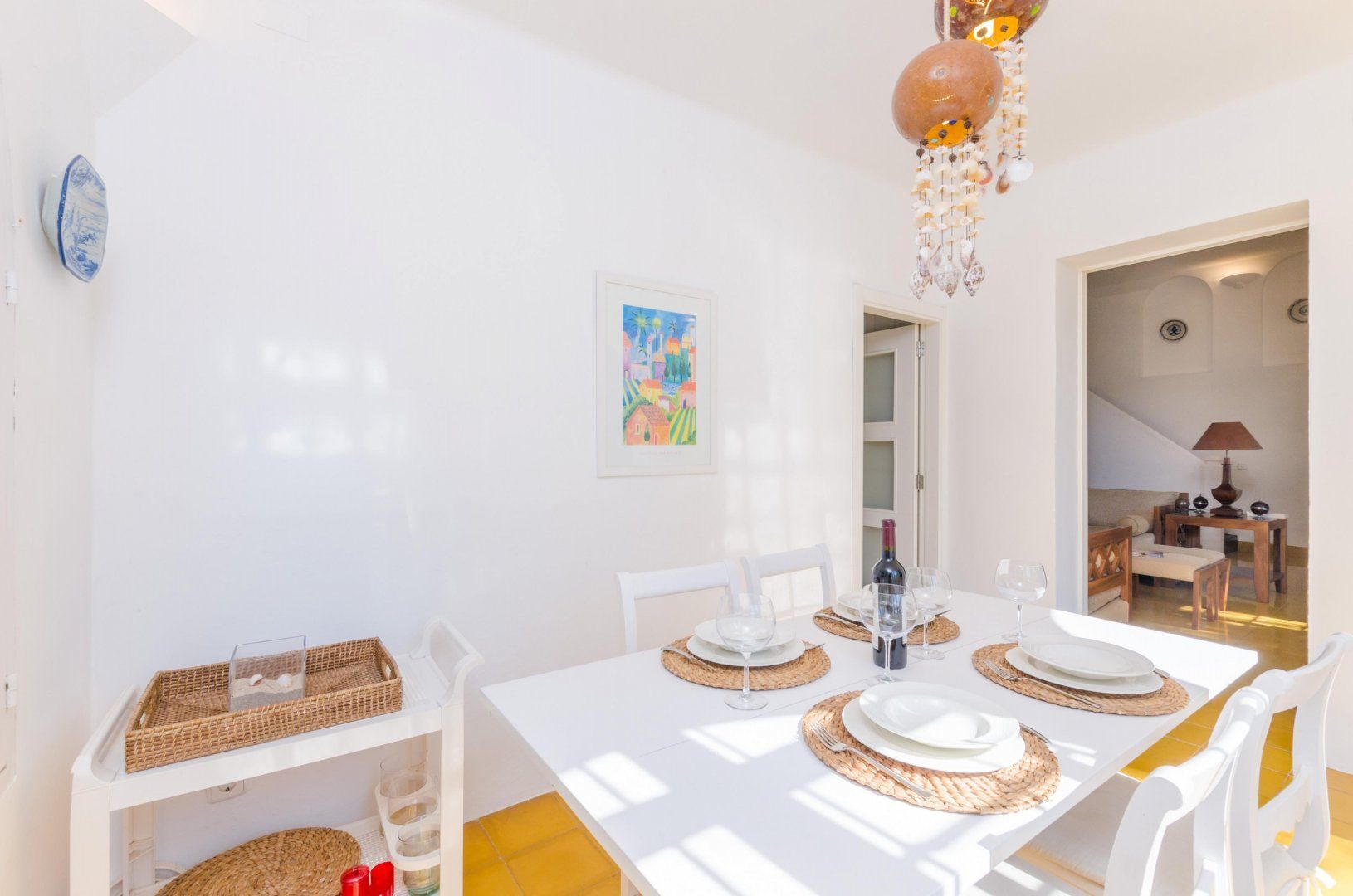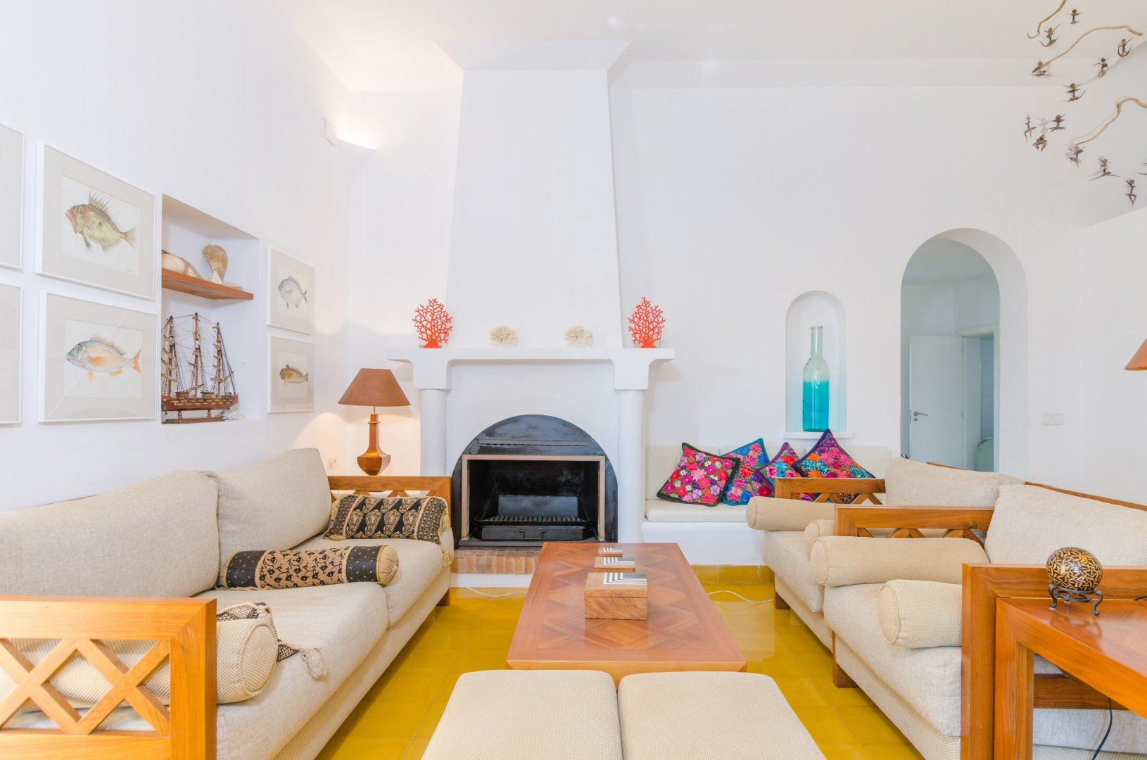 Screened from its neighbours by lush hedges and fragrant pine trees, you'll feel tucked away here, with a fabulous view from the private terrace. The home itself is as pretty as a picture, with green shutters and a traditional covered porch. Inside, high ceilings, all-white walls and plenty of curves and arches provide the backdrop, while comfy, stylish furnishings and nautical artwork make for a homey feel. The living room is dominated by a gorgeous fireplace and there's a covered dining space with huge doors opening to the sunny terrace. Cooking at home will be a pleasure in the well kitted-out kitchen, but it's just a few minutes' walk to the nearby shops and restaurants.