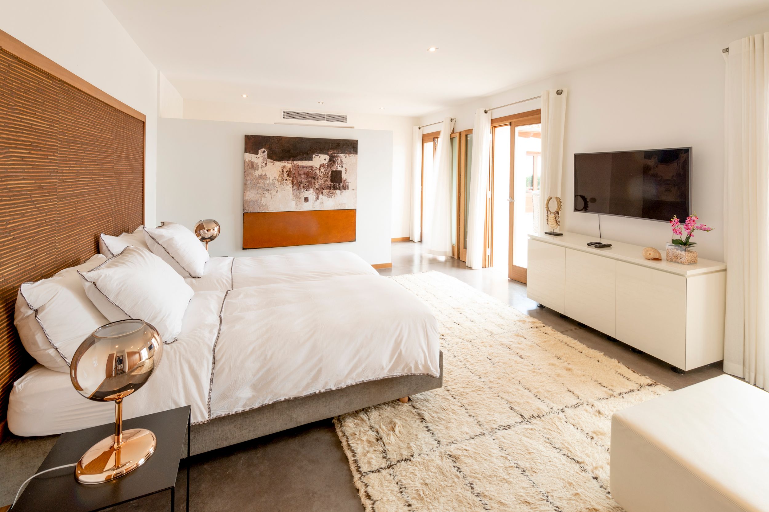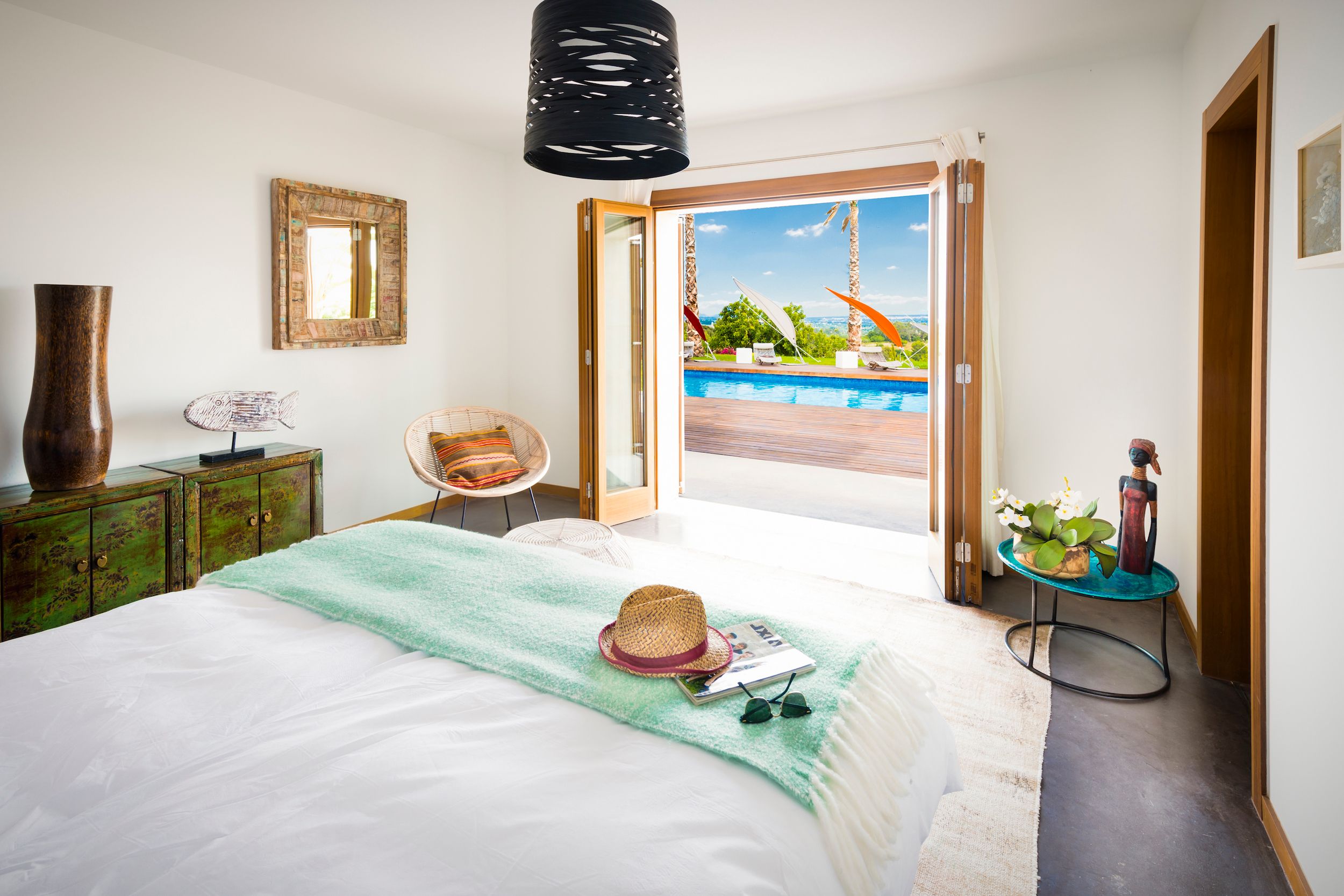 Set on a 30-hectare ecological estate a thirty-minute drive from Palma, this country retreat allows you to truly unwind. You can meander through the shared olive and almond groves and take in the views of the mountains and sea. Alternatively, have a game on the shared full-sized tennis court or enjoy a table tennis match. The villa itself has a private saltwater pool and various terraces and balconies to relax on. Inside, there are more entertainment options for family and friends here too with a pool table and a home cinema. Your host can also arrange a private chef to create wonderful meals, and they can organise tennis lessons, guided cycling tours and more – it’s impossible to get bored here.