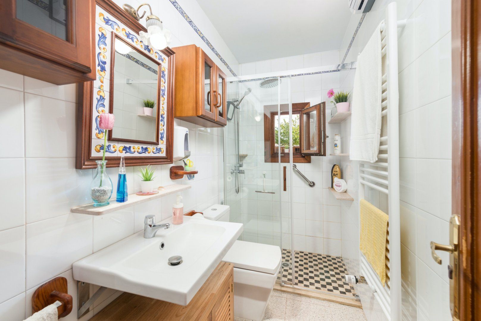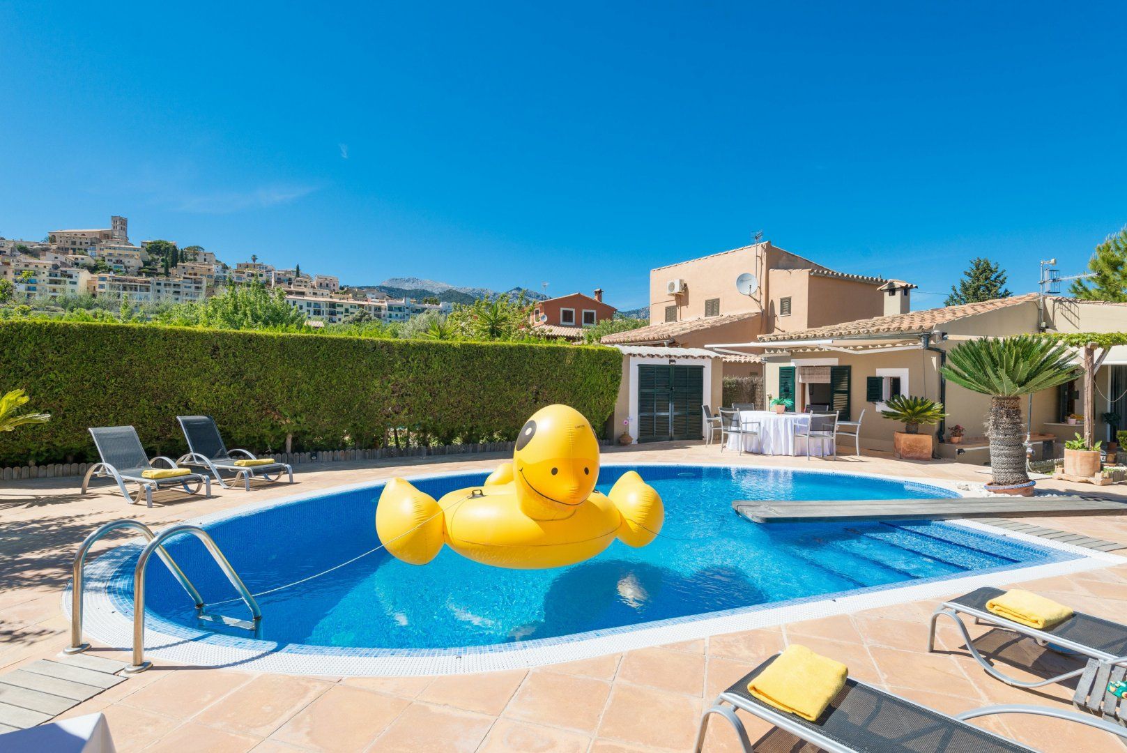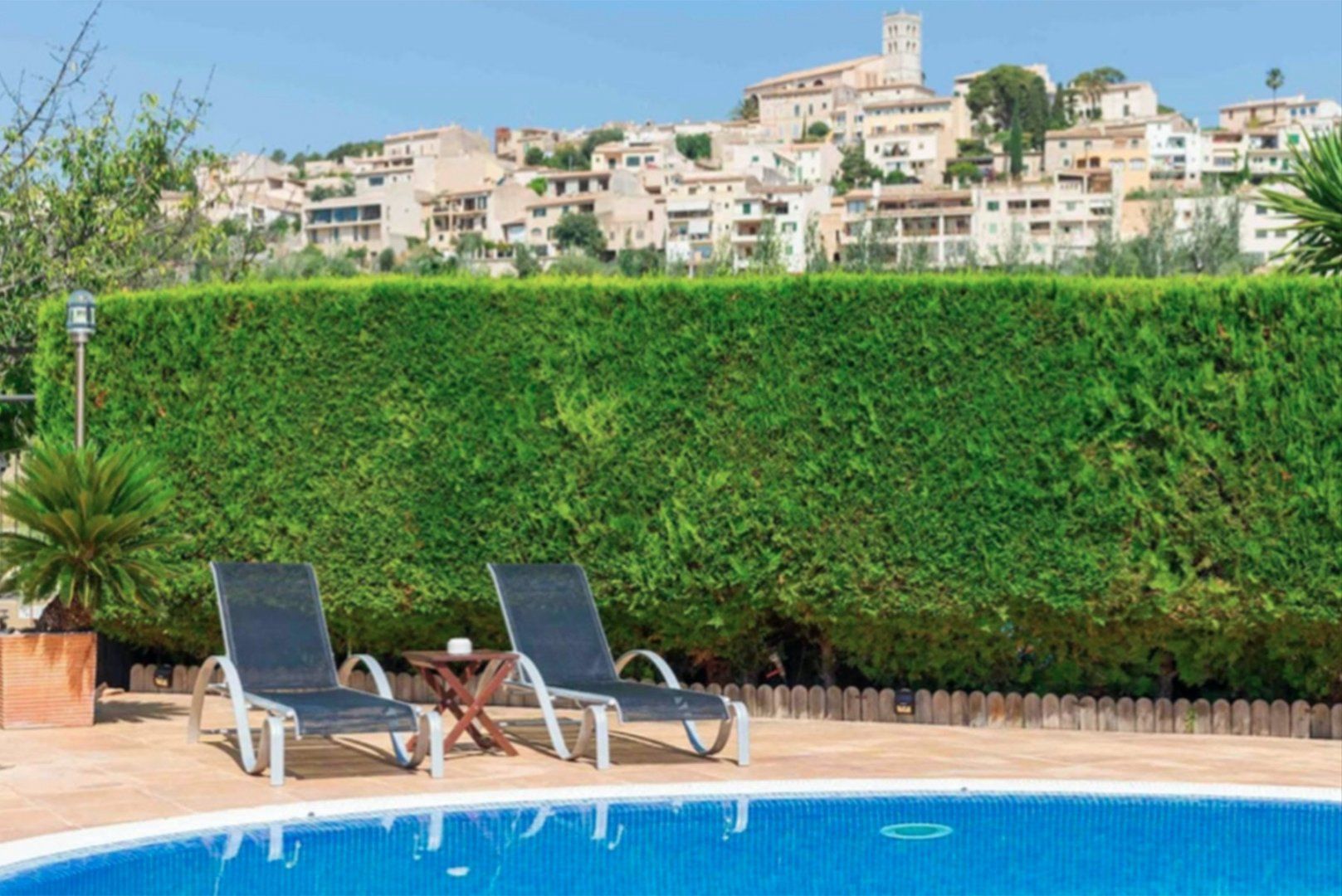 This villa is situated in the picturesque Serra de Tramuntana, with lovely views of the nearby town. The highlight for us is the large private pool, surrounded by hammocks, several dining areas, high hedges and a mini orchard. We also like the pool house's outdoor bathroom, while inside the villa itself, there’s a rustic charm to every room. If you tire of swimming in the pool and want to dip your toes in the warm Mediterranean Sea, you'll find several pretty beaches around a twenty-minute drive away.
