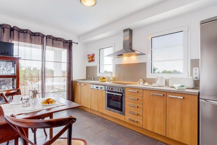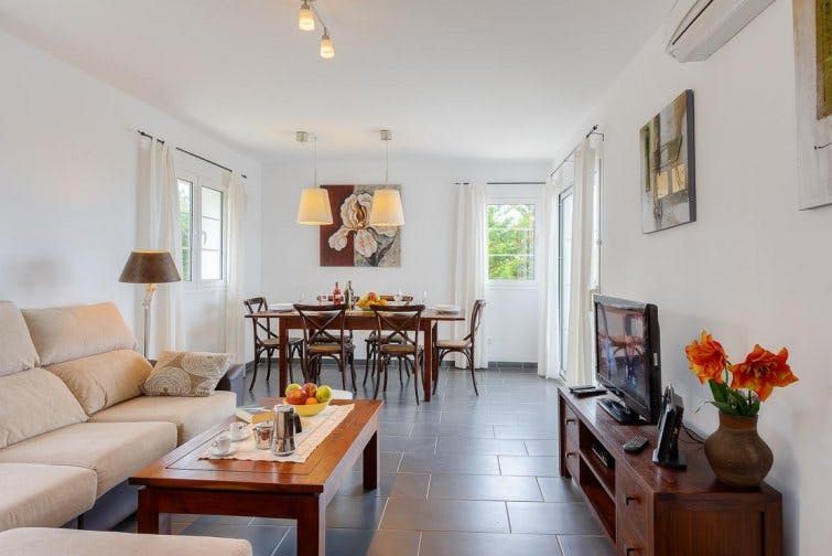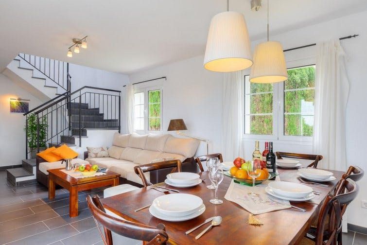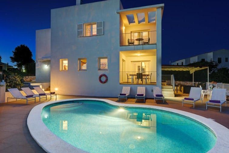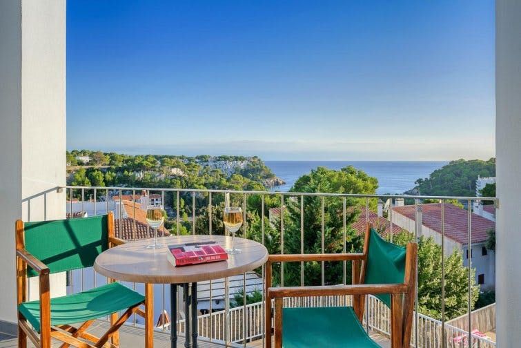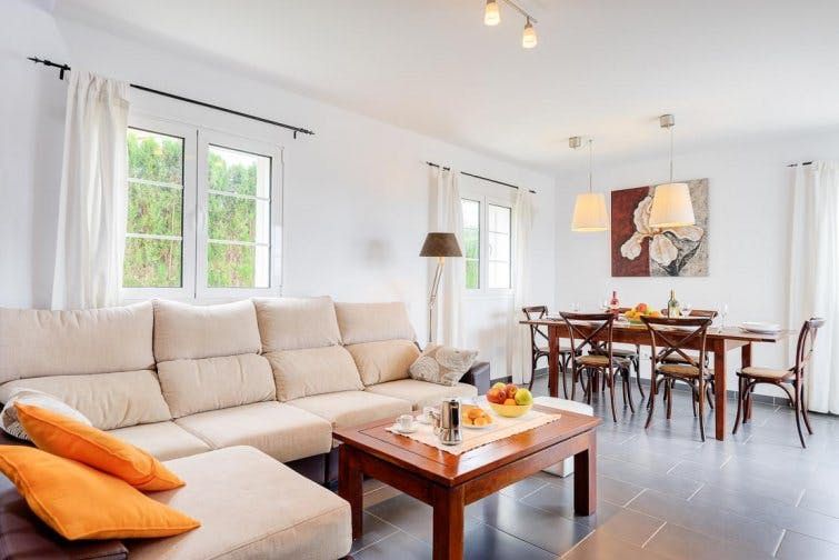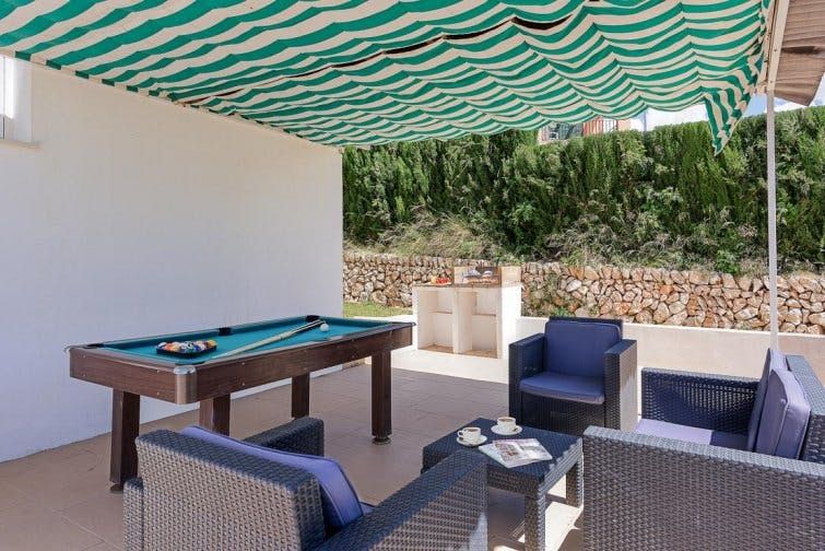 This stunning villa is situated in a peaceful residential area, just a short distance from the famous horseshoe-shaped sandy beach of Cala Galdana. The property boasts modern furnishings and spectacular sea views. Inside, the open plan living and dining area is light and airy with a smaller table in the kitchen for informal dining. There are four bedrooms, including an impressive master double with a private ensuite bathroom and furnished balcony. Outside, guests can enjoy lazy days in the glorious outdoor space which features a pool with sunloungers and a shaded dining area, perfect for alfresco barbeques with family and friends. The villa is located in an elevated position in Cala Galdana, just a ten-minute walk to the heart of the resort where guests will find a good selection of restaurants, shops and bars. The beach is also just 600 metres away, offering shallow waters, golden sand and a wide range of activities.