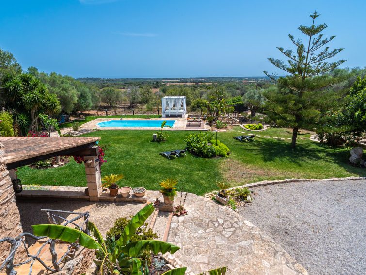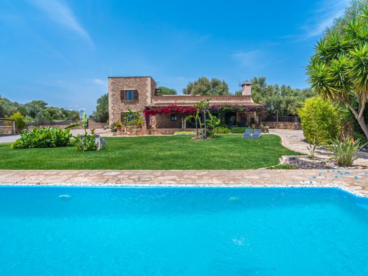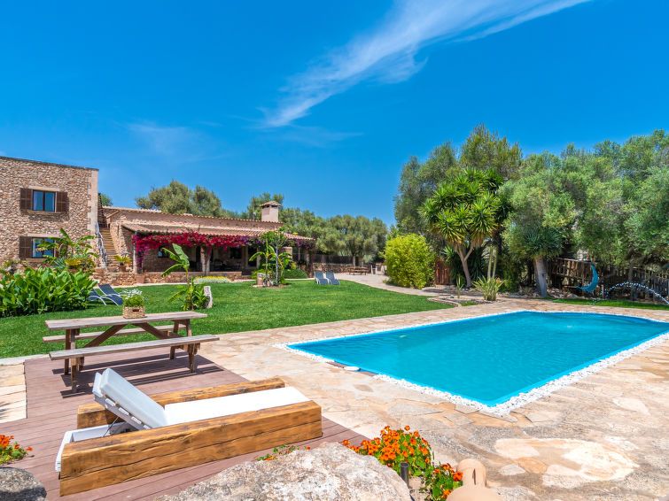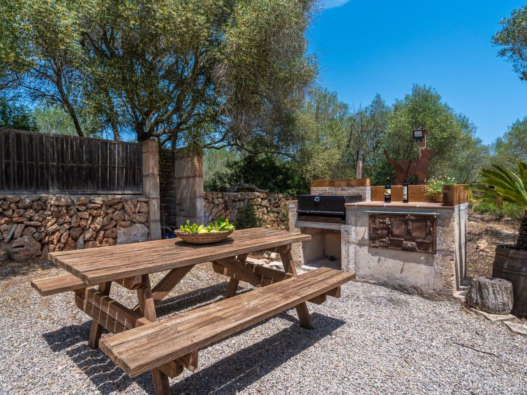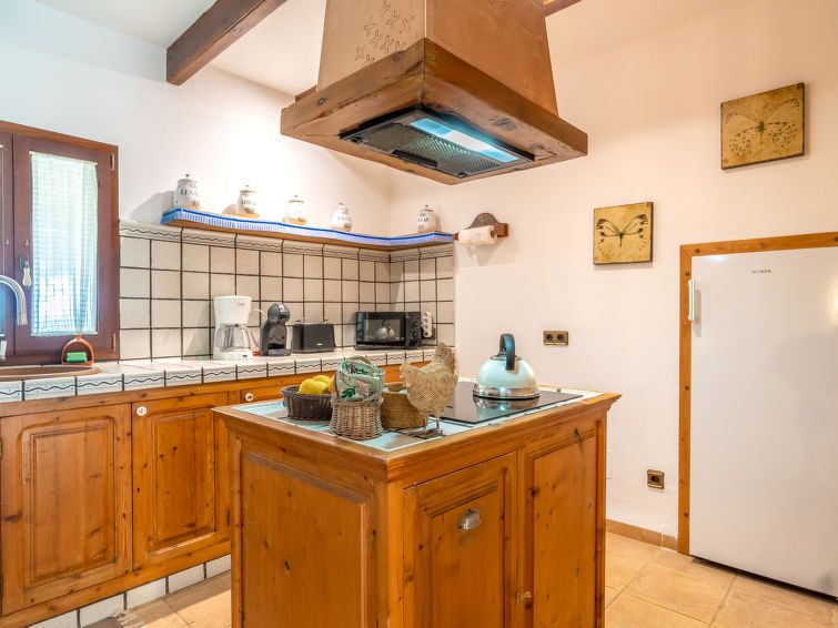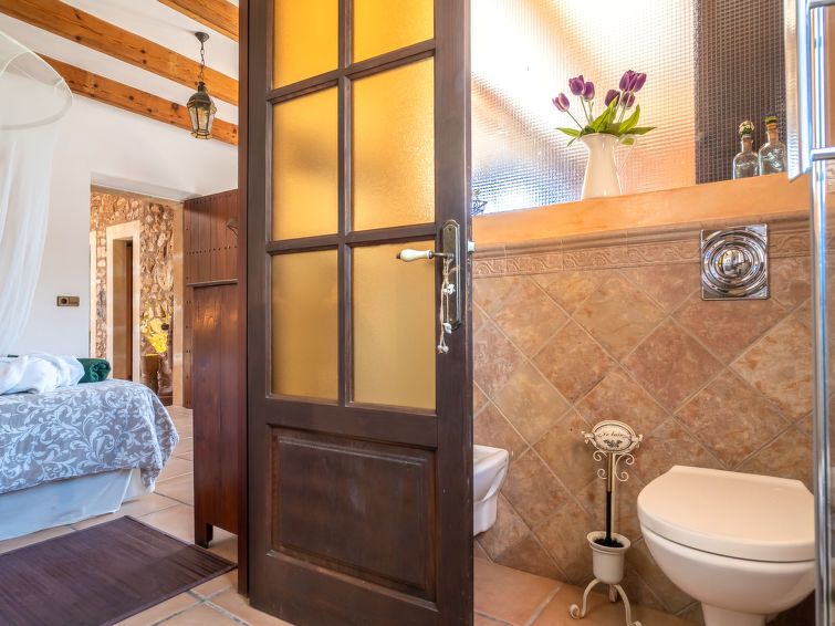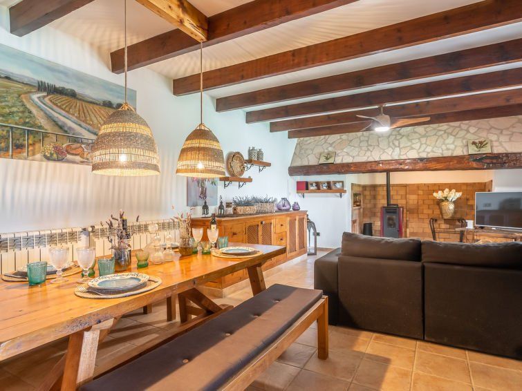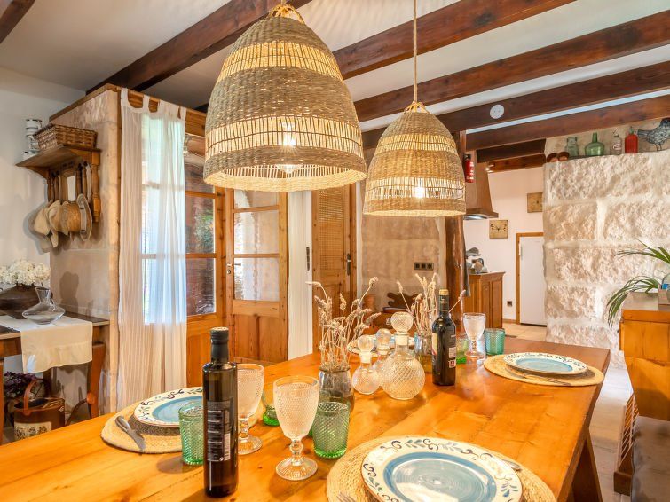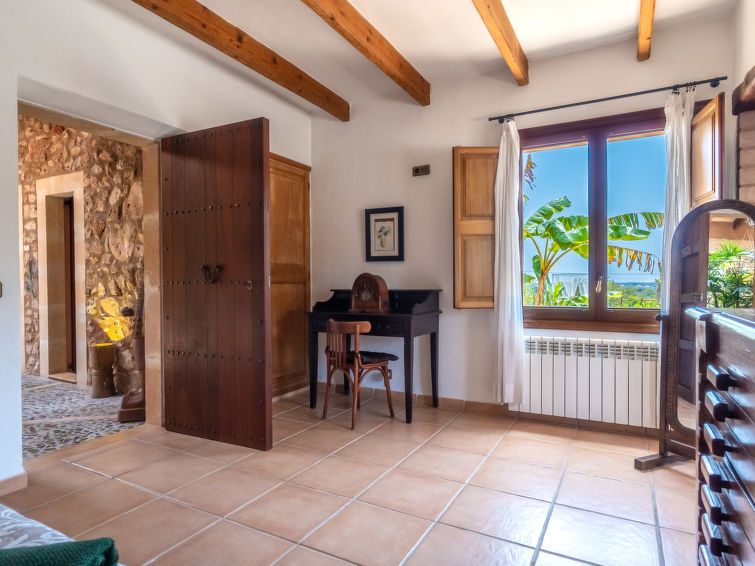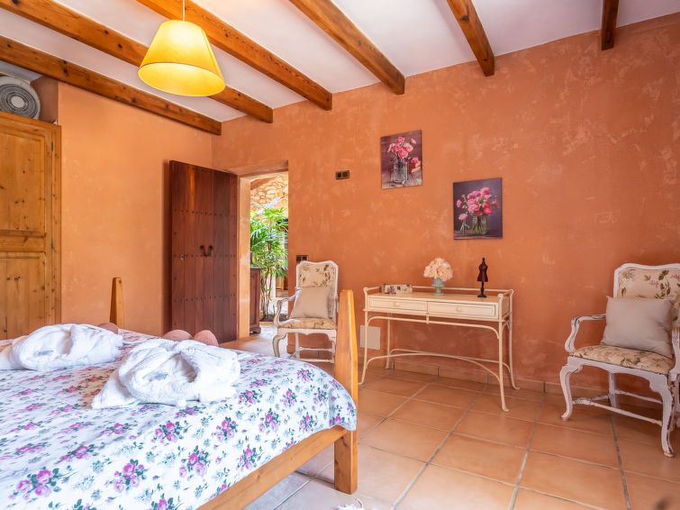 "Sa Caseta", 4-room villa 200 m2 on 2 levels. Object suitable for 6 adults. Fully renovated, rustic and wooden furniture furnishings: large living/dining room with open-hearth fireplace, dining table, digital TV and flat screen. 1 double bedroom with panoramic window with 1 french bed (150 cm, length 200 cm), shower/WC, digital TV, flat screen and fan.