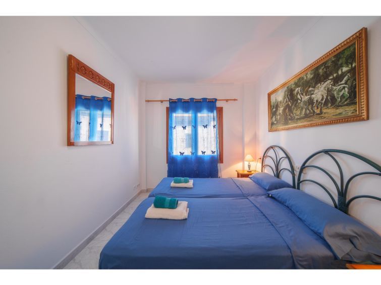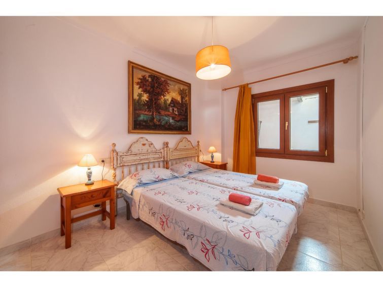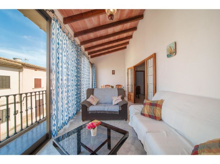"Can Rafel", 4-room apartment 80 m2 on 1st floor. Object suitable for 6 adults. Spacious and bright, simple and comfortable furnishings: living/dining room with dining table, air conditioning and forced-air heating. Living room with panoramic window with satellite TV. 2 rooms, window onto the courtyard, each room with 2 beds (90 cm, length 200 cm).