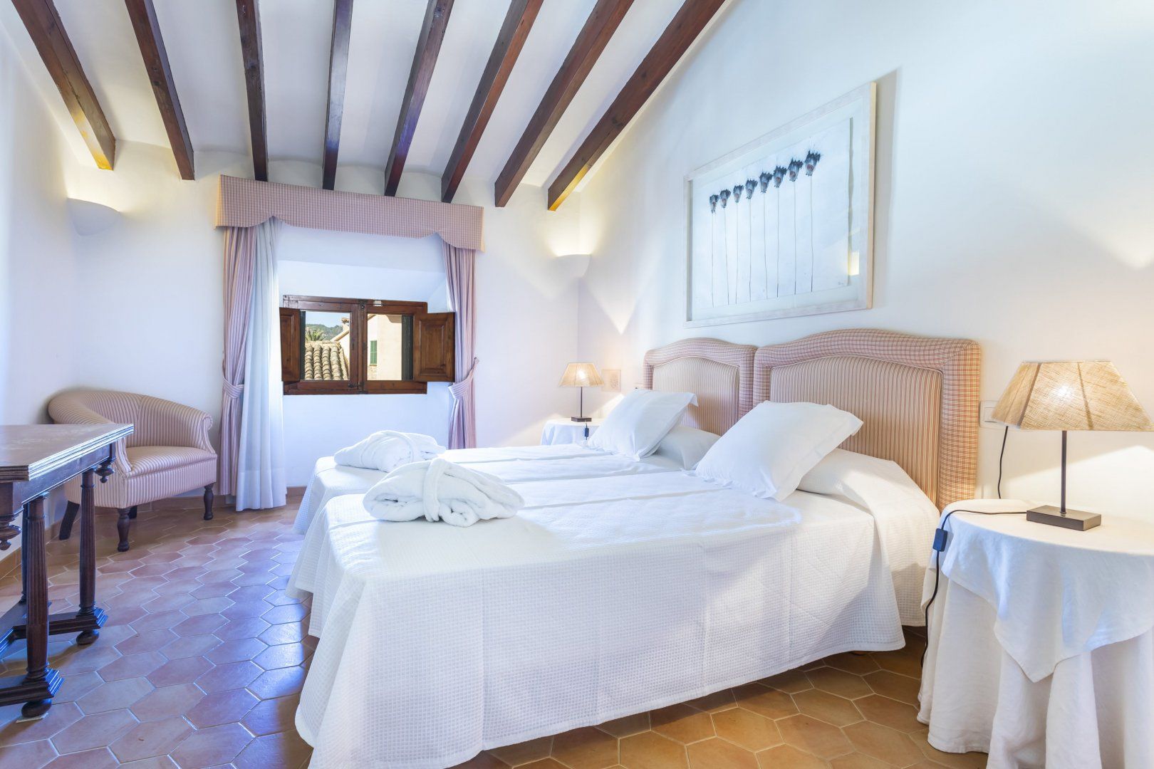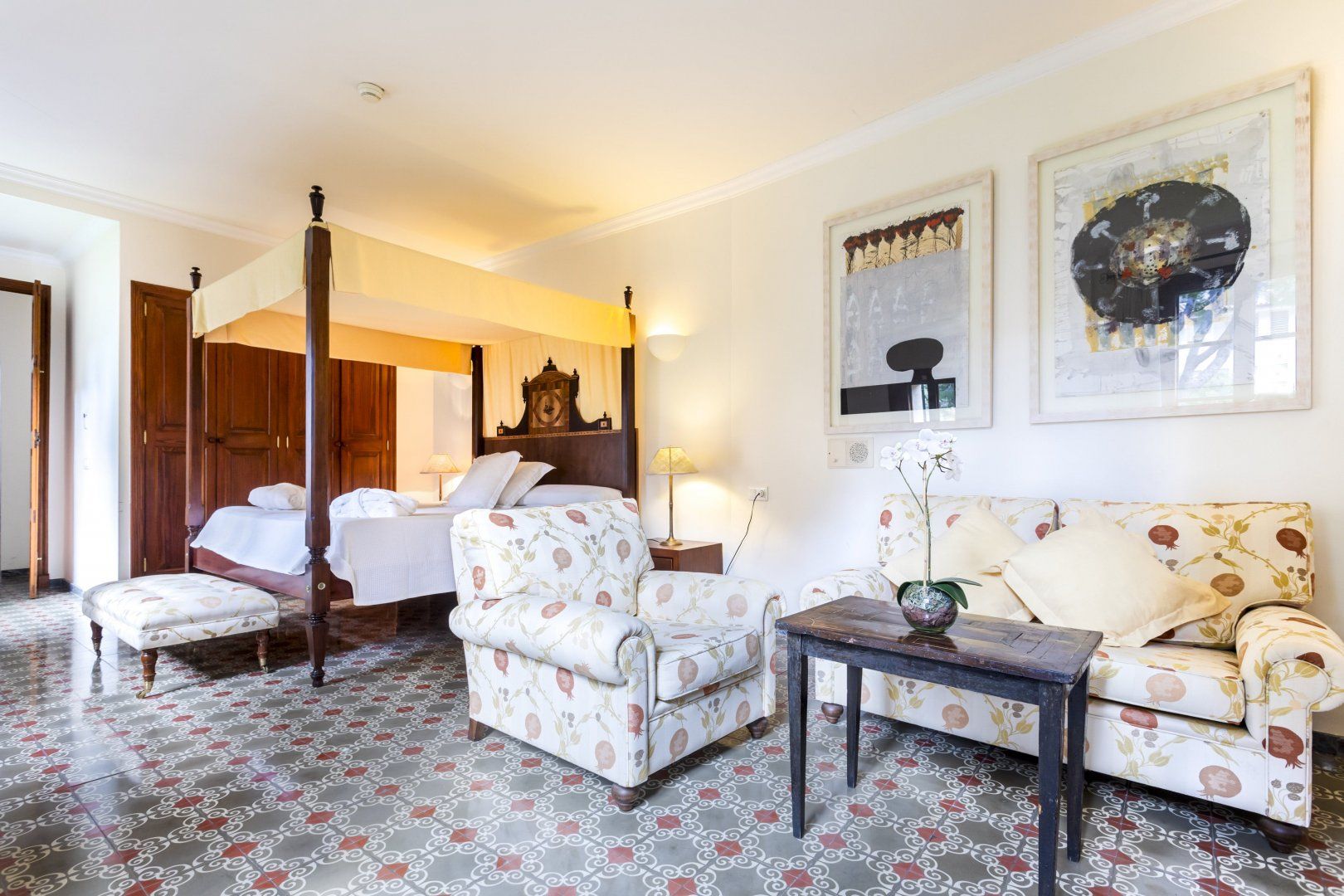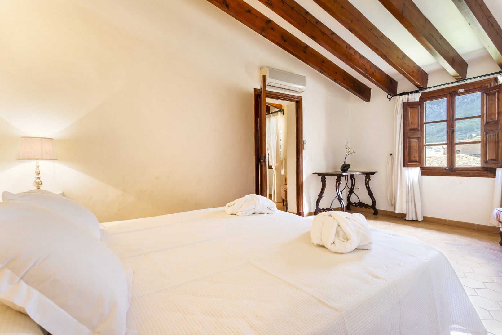 Set in the village of Sóller, this home feels like a lavish piece of Mallorca's history. From its beamed dining room with long oak tables to the sweeping staircase, it’s all old-world charm in here. An industrial kitchen is the newest part of the building, and will help even the most amateur of chefs whip up an impressive feast. Divided into two buildings (though the annexe requires a fee to use), the home is centred around the main house where most of the bedrooms are found, and each is as stately as the next, with four-poster beds, comfy sofas, and en suites with tiled baths ensuring that everyone feels like royalty. But not even the stunning architecture can compete with the Mother Nature – from the windows to the terraces and balconies, the mountain views are what crowns this place for us.