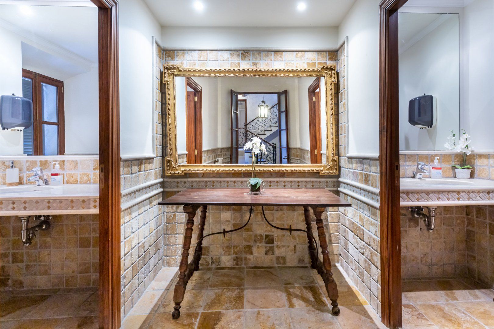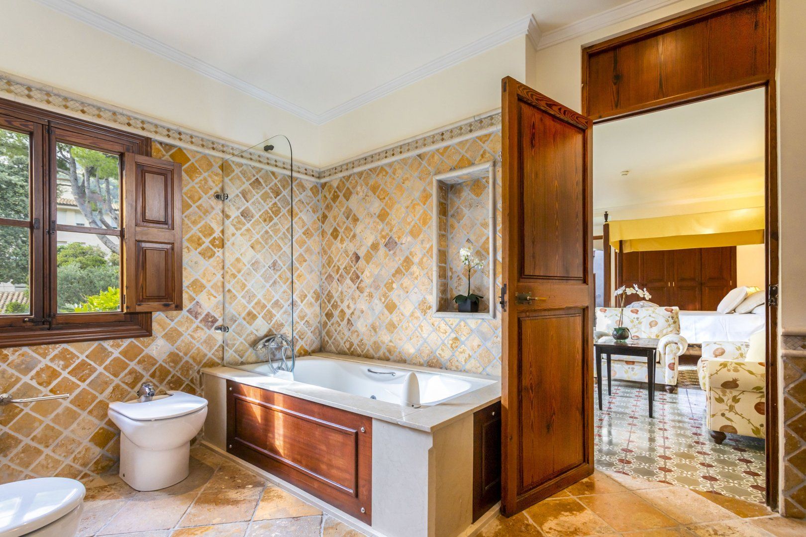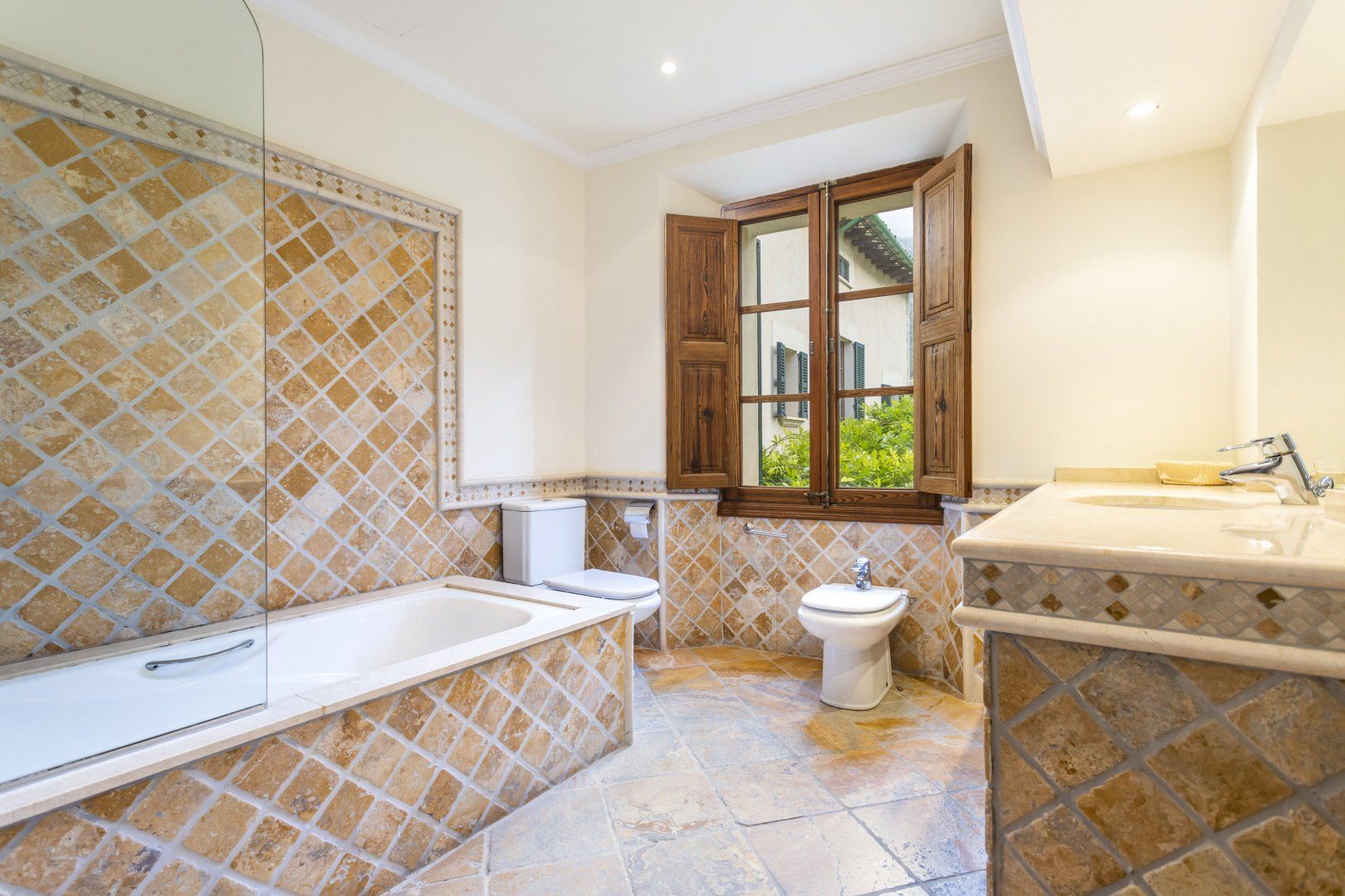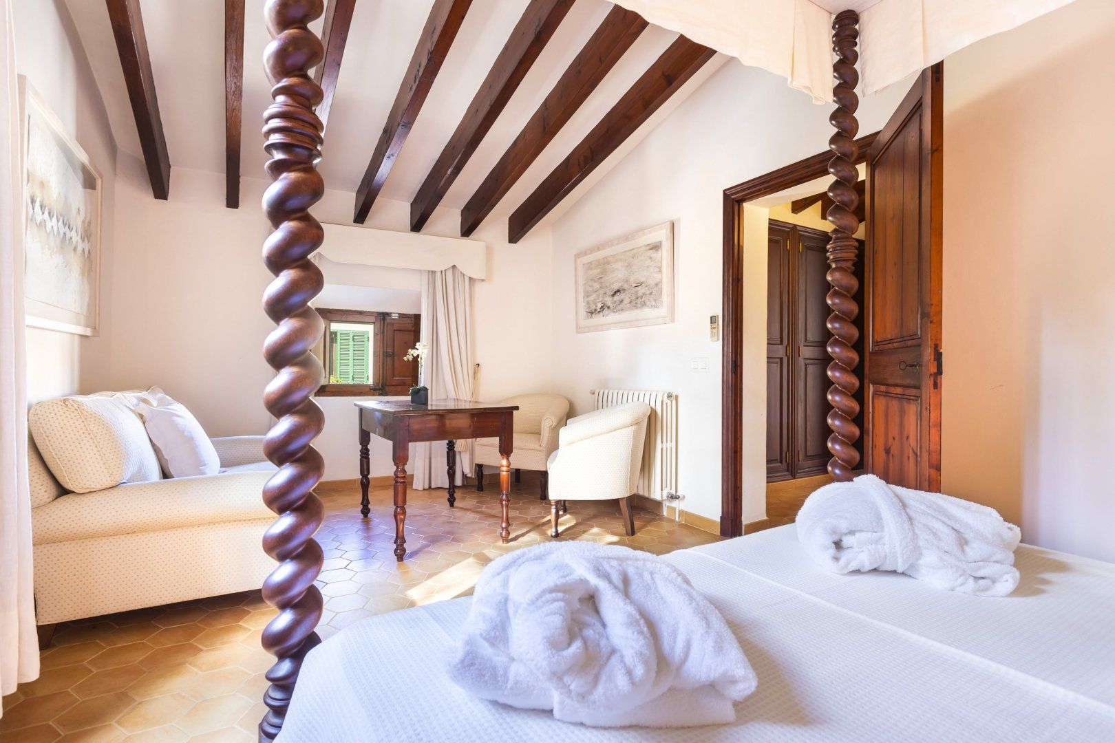Set in the village of Sóller, this home feels like a lavish piece of Mallorca's history. From its beamed dining room with long oak tables to the sweeping staircase, it’s all old-world charm in here. An industrial kitchen is the newest part of the building, and will help even the most amateur of chefs whip up an impressive feast. Divided into two buildings (though the annexe requires a fee to use), the home is centred around the main house where most of the bedrooms are found, and each is as stately as the next, with four-poster beds, comfy sofas, and en suites with tiled baths ensuring that everyone feels like royalty. But not even the stunning architecture can compete with the Mother Nature – from the windows to the terraces and balconies, the mountain views are what crowns this place for us.