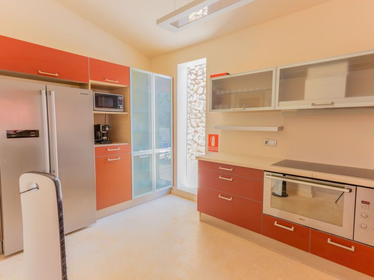 "Villa Maitreya", 7-room villa 470 m2 on 2 levels. Object suitable for 12 adults. Comfortable and cosy furnishings: open large living/dining room with open-hearth fireplace (only for decoration), dining table, satellite TV, digital TV, international TV channels and flat screen. Exit to the patio, to the swimming pool.