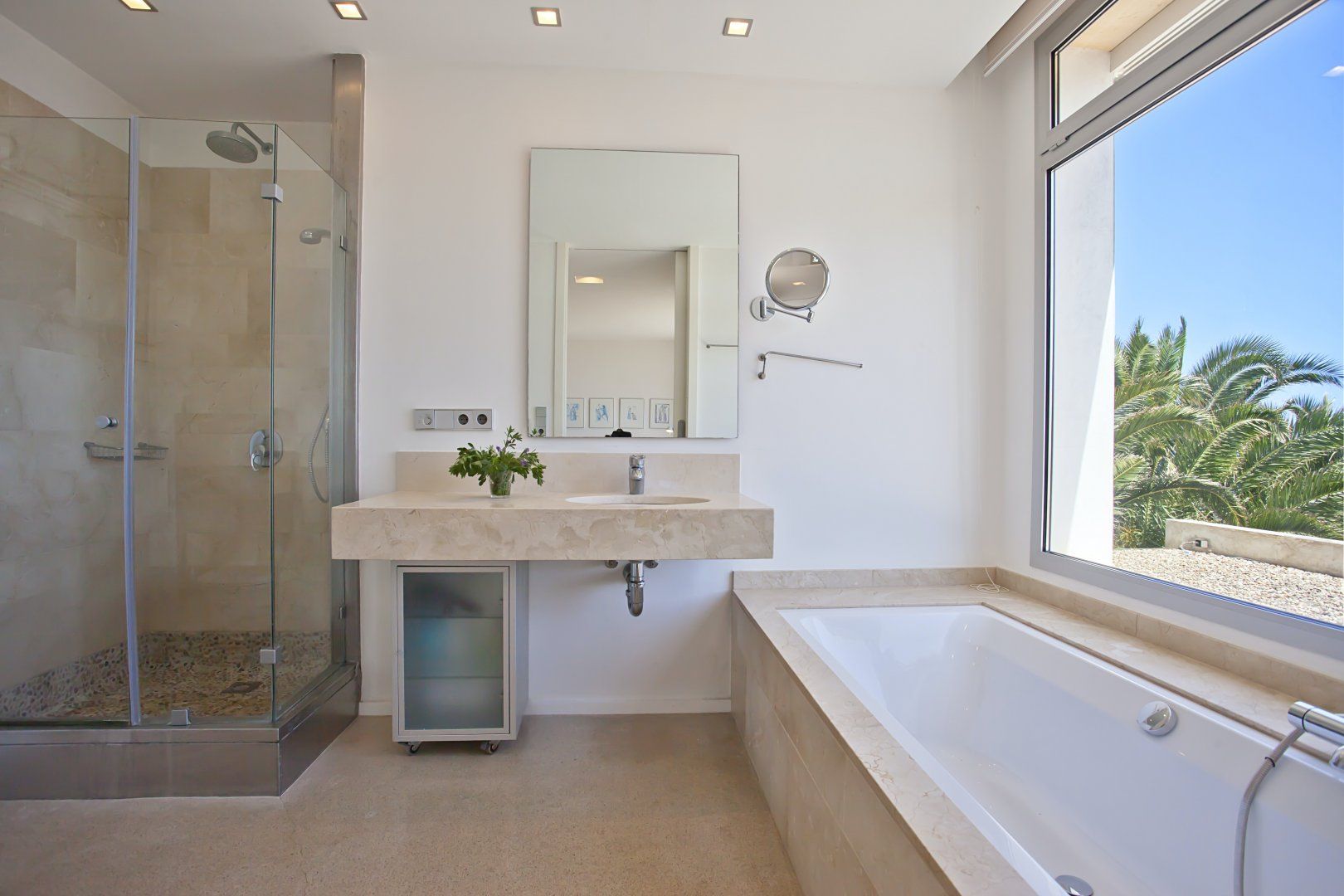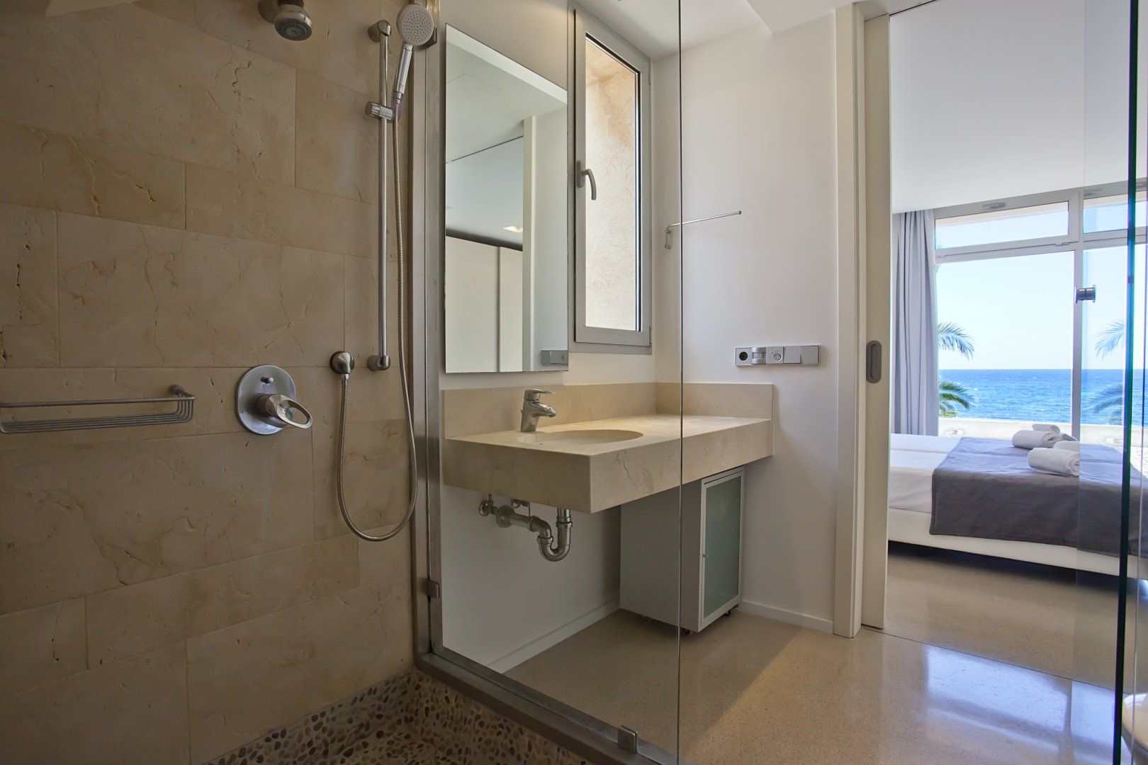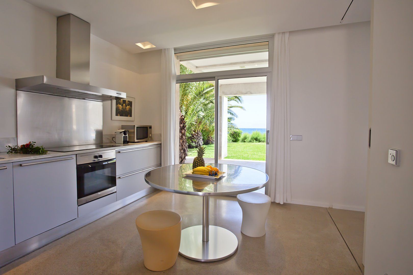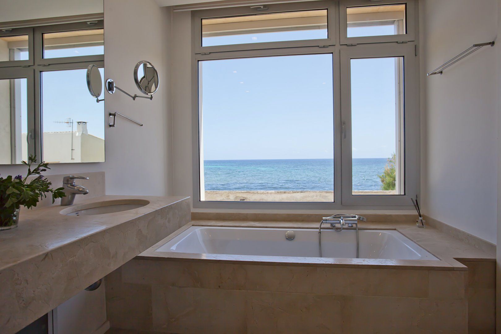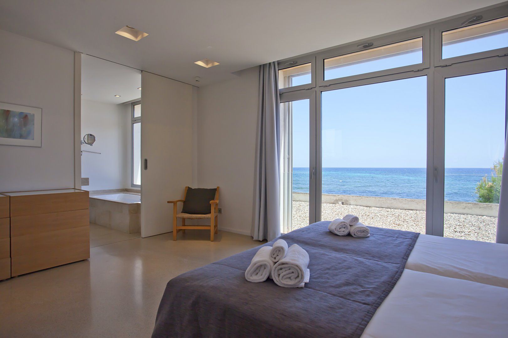 With an admirable openness, the villa radiates brightness in every room. At the same time, the main living area and bedrooms are centred around taking in the stunning turquoise views of the Mediterranean Sea at every opportunity. So whether you're in the bathtub, out on the balcony or cooking up a storm in the kitchen, you'll be just a blink of an eye away from the soothing sea vistas.