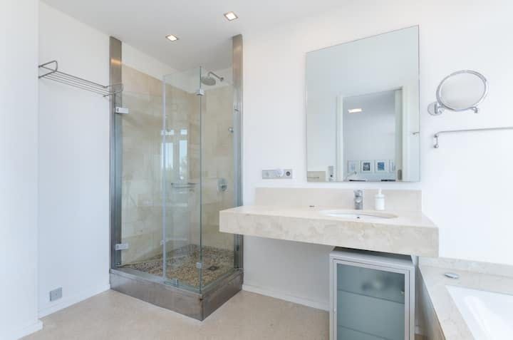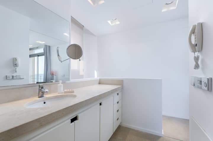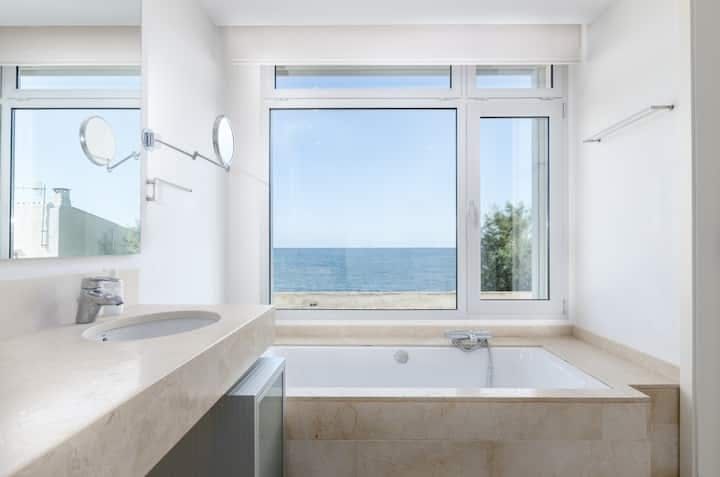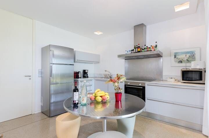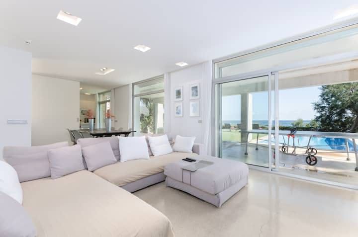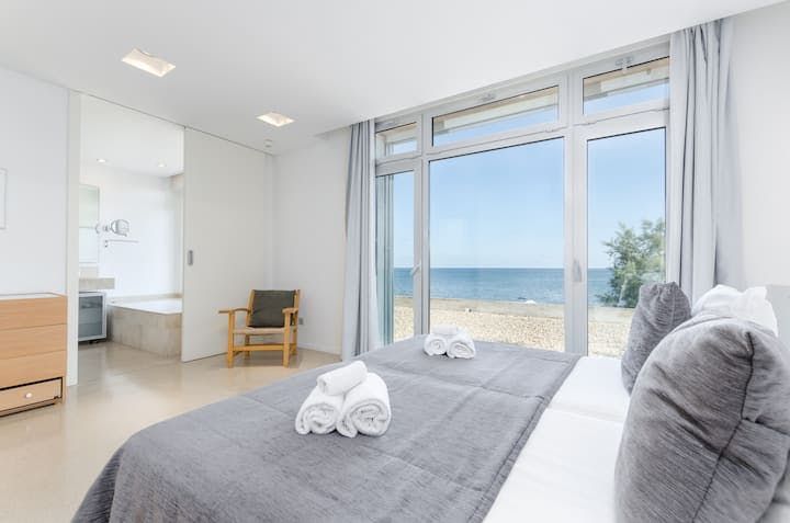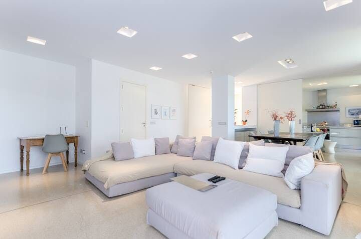 We love the minimalist, modern interiors to match the outside. White is the colour of choice, and open-plan spaces make the ground floor feel huge. Every bedroom features a fantastic sea view, with the aforementioned terrace being perfect for an iced coffee in the morning, or a nightcap after dark.