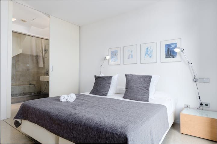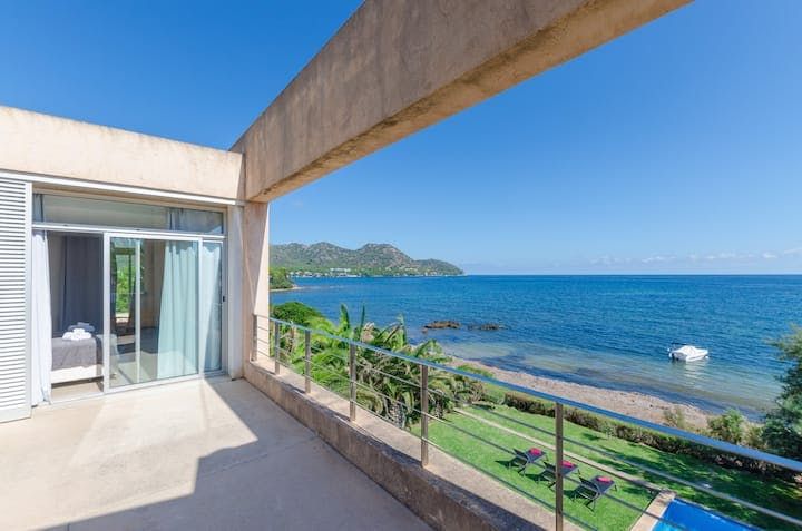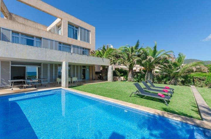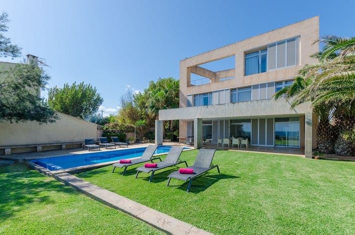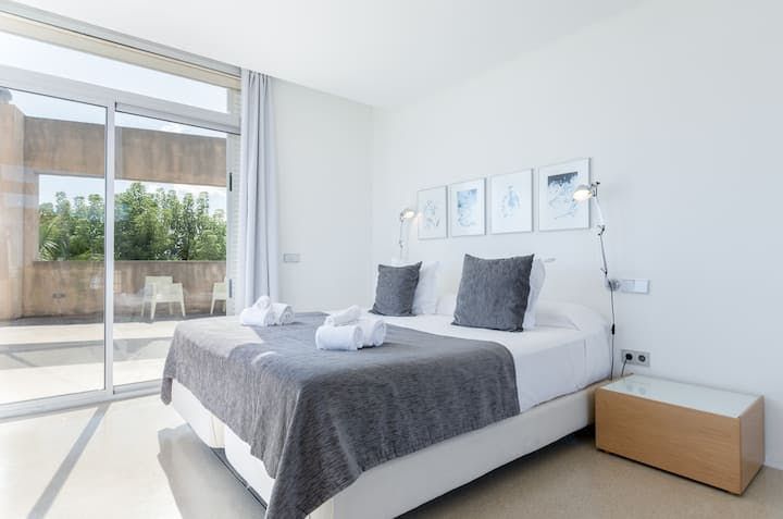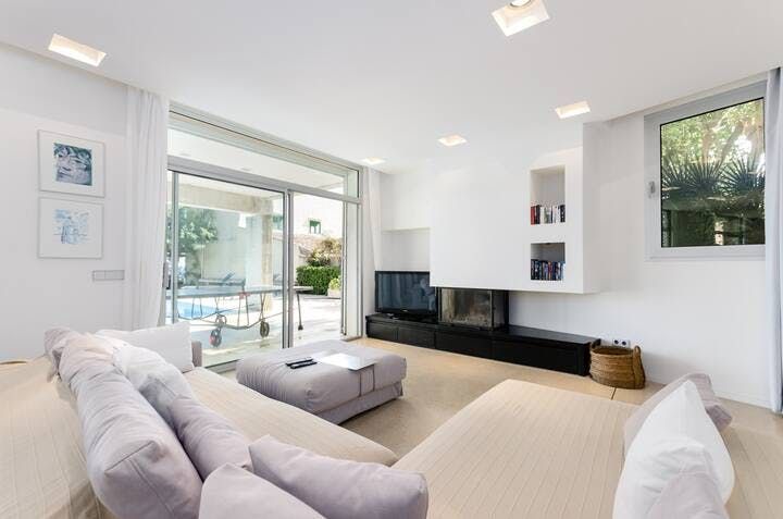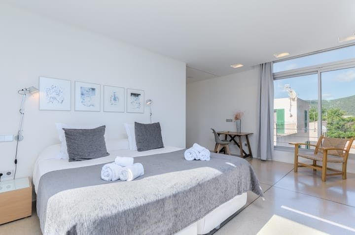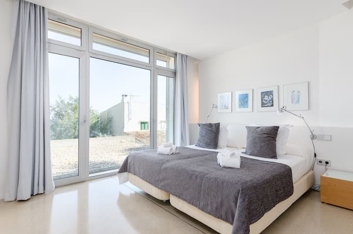 With Palma an hour away by car, Mallorca's east coast is less about the bustling metropolis and more about relaxed living. In easy reach of golf courses, beaches, and walking routes, Cala Bona is a coastal town that makes the most of its natural surroundings. But while swaying trees and rolling waves offer organic landscapes, this home (just a five-minute walk from Port Vella Beach) creates a sharp contrast.