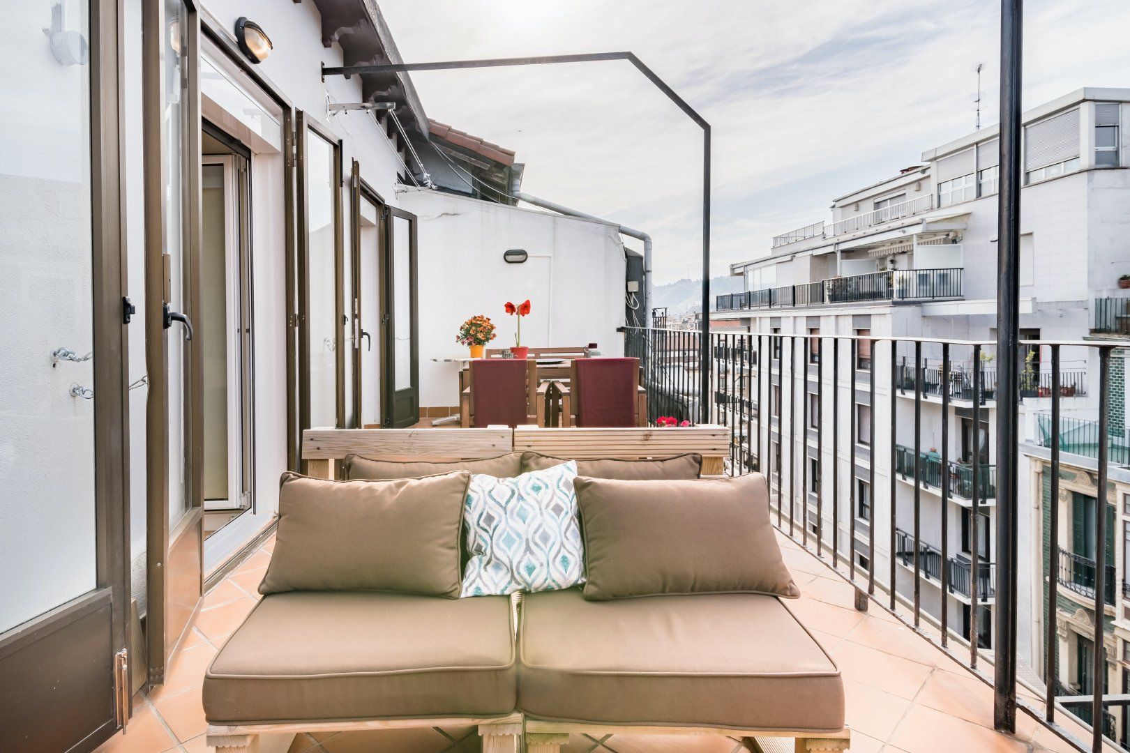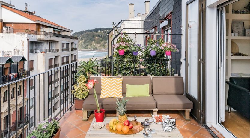 Enjoy the sea air on the balcony of this lovely apartment in San Sebastian and admire the sea views – it's the perfect spot for a glass of wine. Inside this charming home, you'll find modern furnishings, light hardwood floors, and exposed wood columns. We love the master bedroom, which opens out onto the balcony. This place is ideal for a couple with a child, friends or a single traveller.