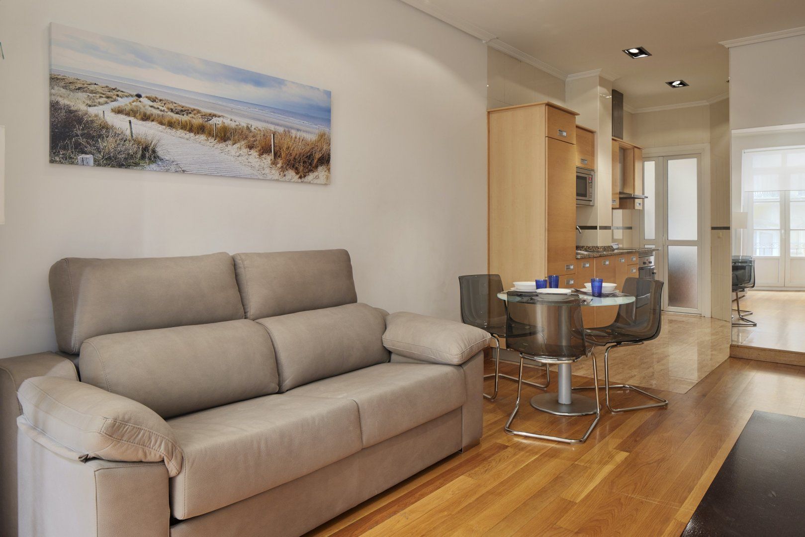 Home truths: *The. building's entrance is shared with the other residents *There's a sofa bed in the living area for more flexible sleeping arrangements – while the home can sleep up to four people, the maximum occupancy is two guests *A cot and a high chair are available on request *The decor is very simple and generic and the aesthetics are not quite up to Plum Guide's usual standards – we've made an exception to let this one into the collection on account of its great location in San Sebastian *The balcony here is Juliet style *This home is in a central spot, so noise may be heard *Though there isn't a dedicated desk here, the dining table doubles up as a laptop-friendly workspace