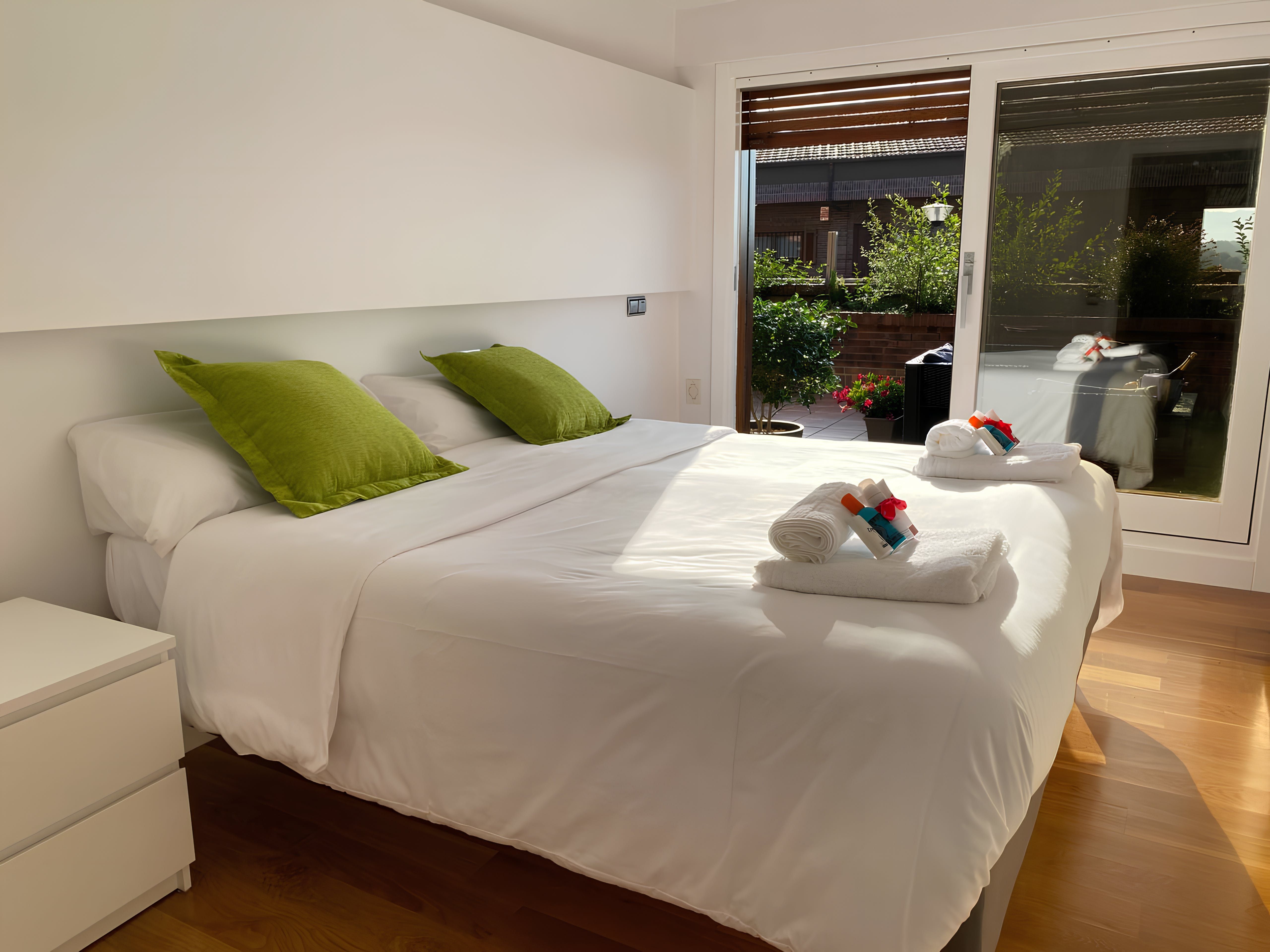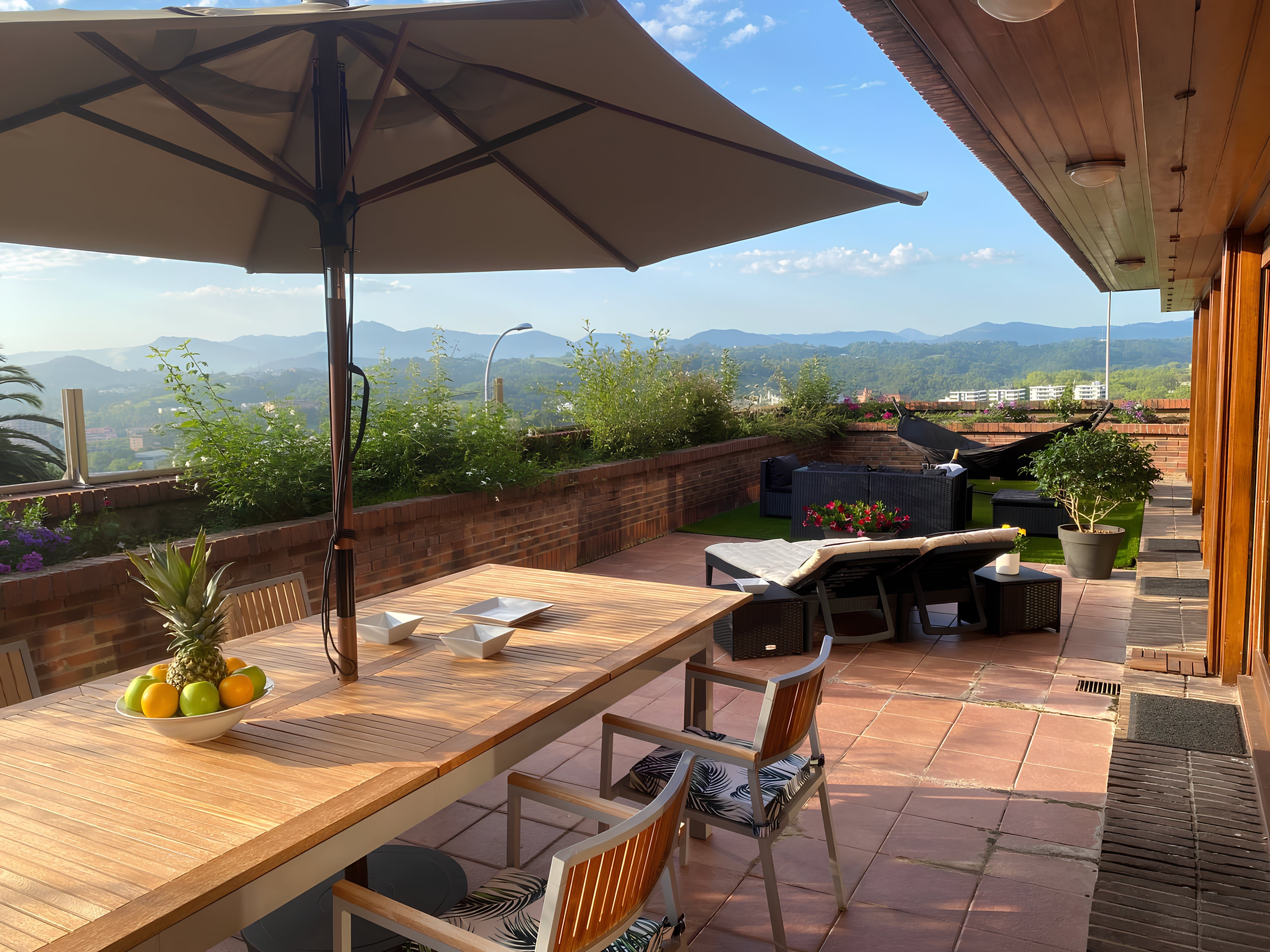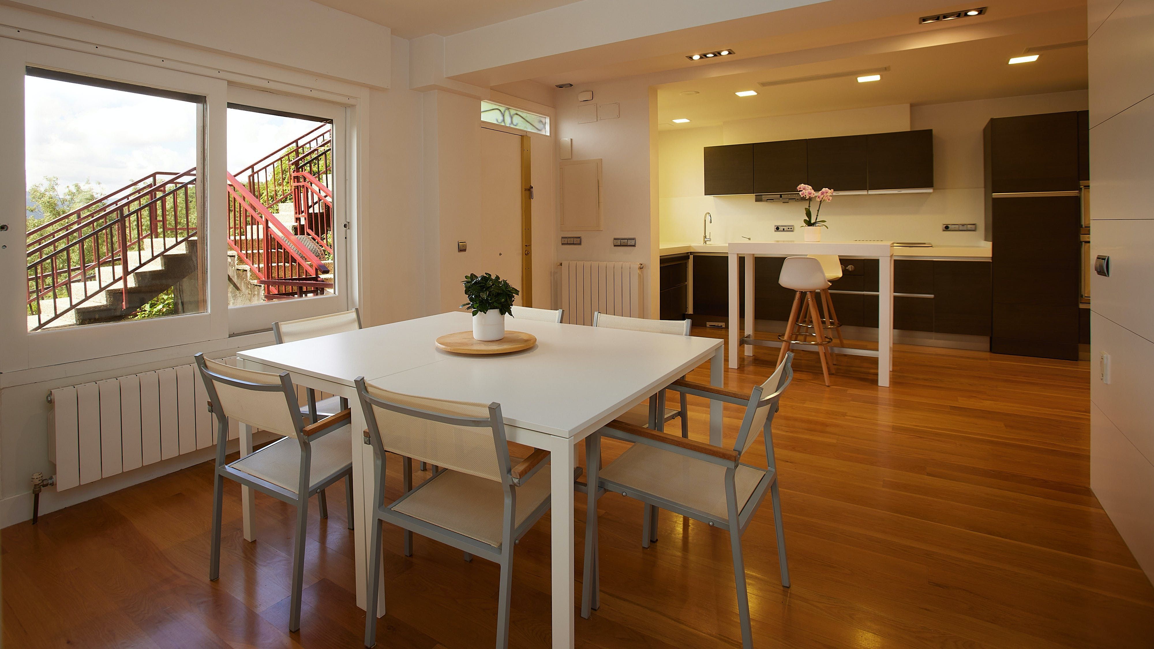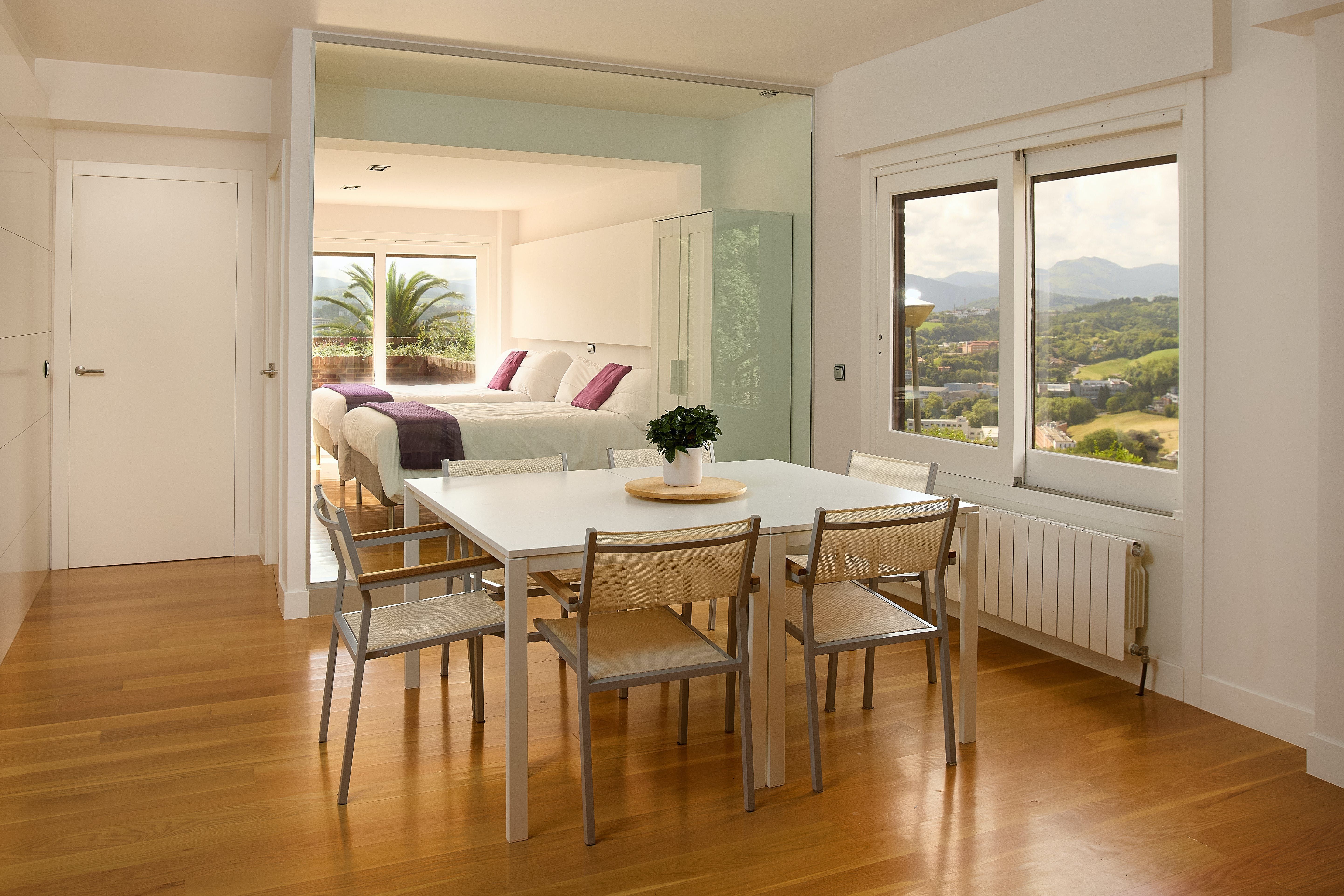 Perched in the hills of the Ondarreta neighbourhood, this apartment opens its doors to a refreshing city stay. Outside, you can admire the mountain views while relaxing on the private terrace. There is also plenty of space across the rooms to stretch out and remote workers will appreciate the dedicated office. It’s worth noting there is no private parking here, but free street parking is available nearby and there are great public transport links. You can take the bus or walk to La Concha Beach (less than 2 kilometres away), and the Monte Igueldo funicular is also within easy reach.